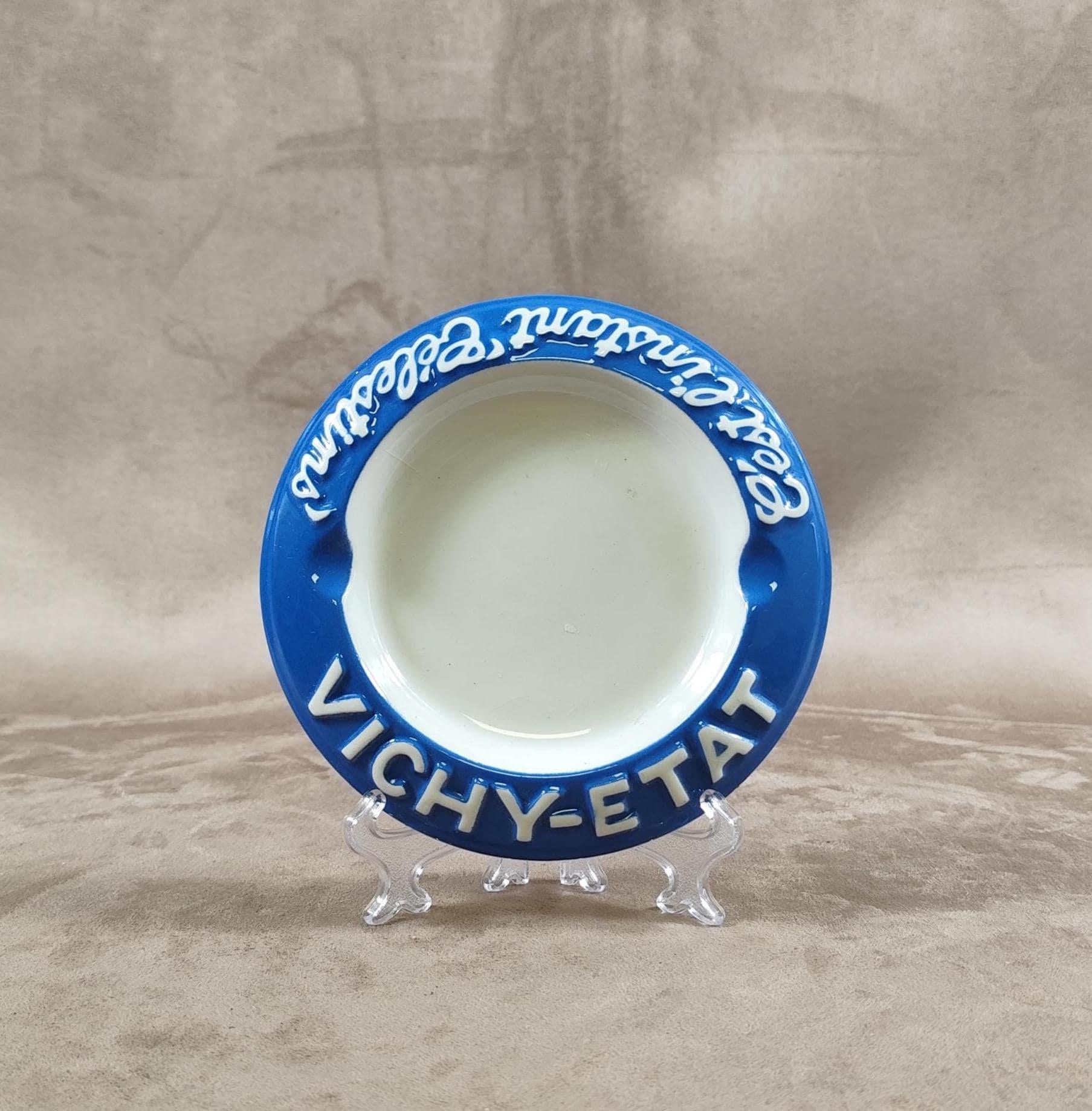Cendrier publicitaire en faience Vichy Etat C'est l'instant "Célestins" Made in France Vintage 1980