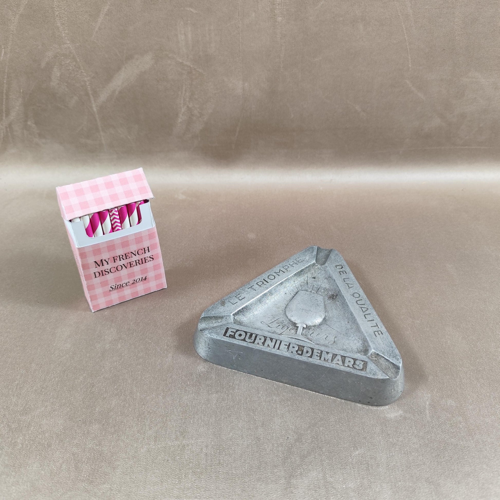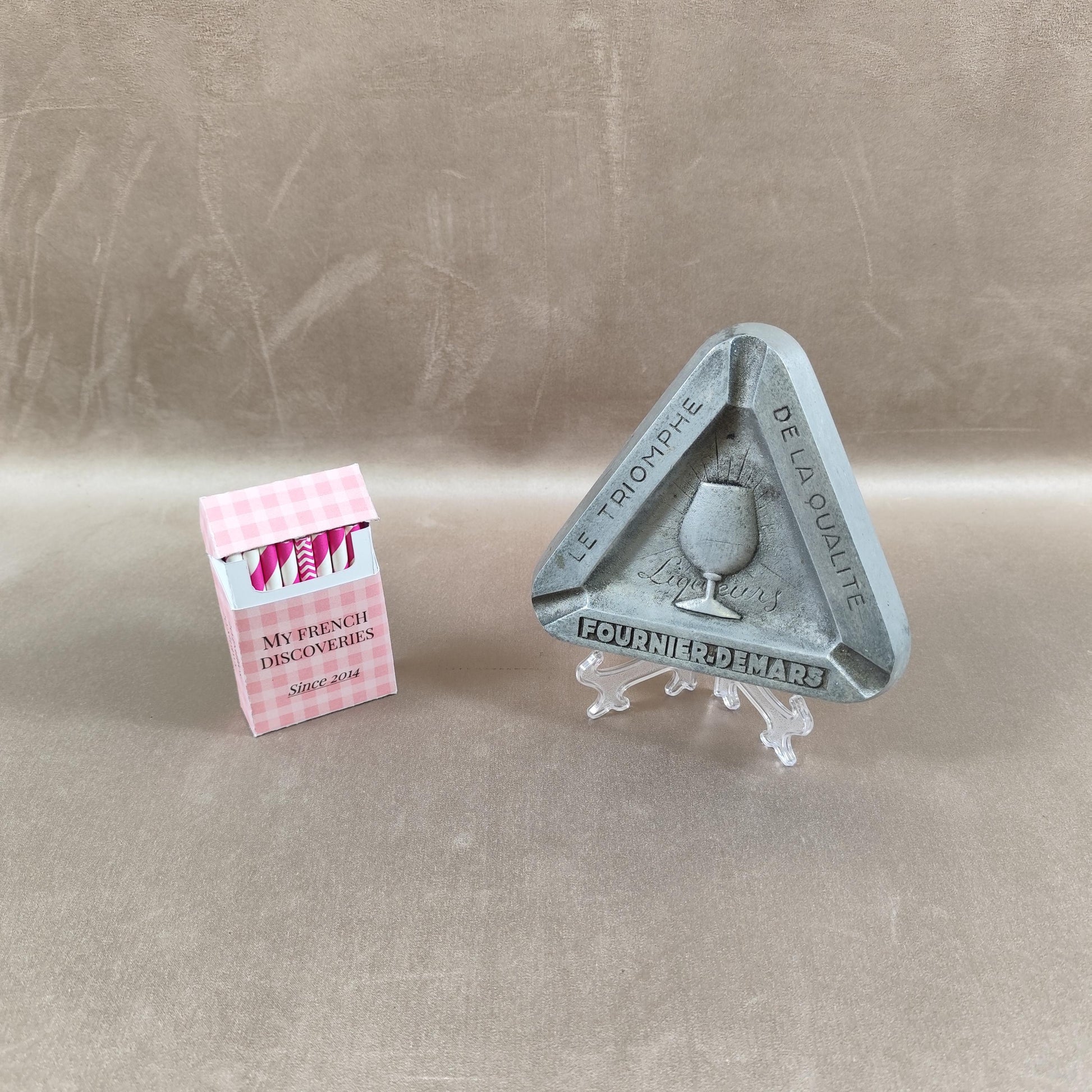 Cendrier publicitaire Fournier-Demars en métal Le Triomphe de la Qualité Liqueurs