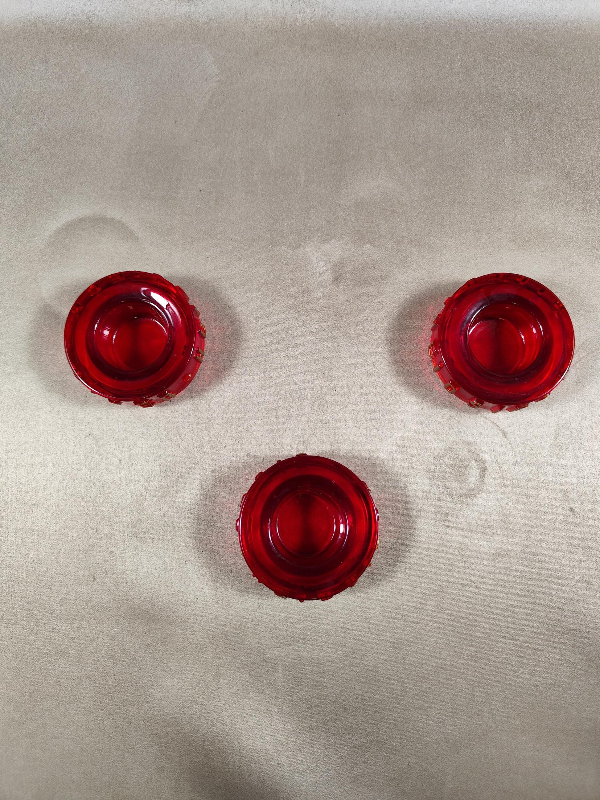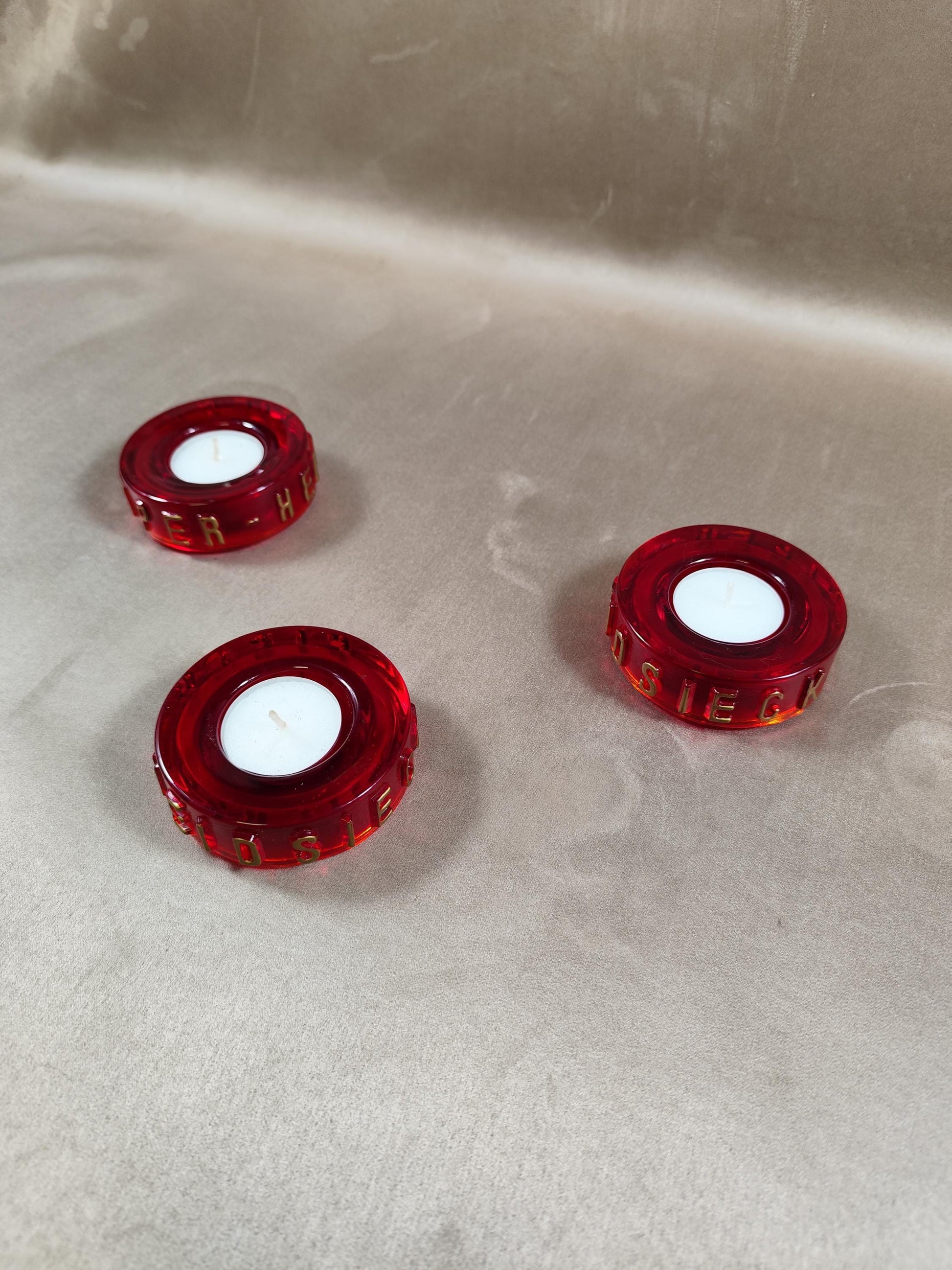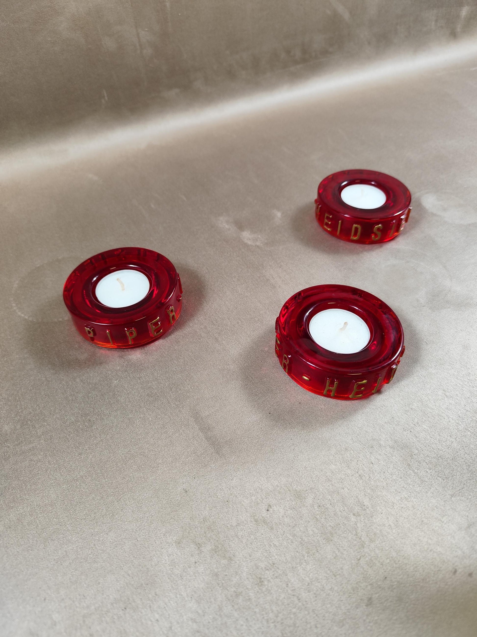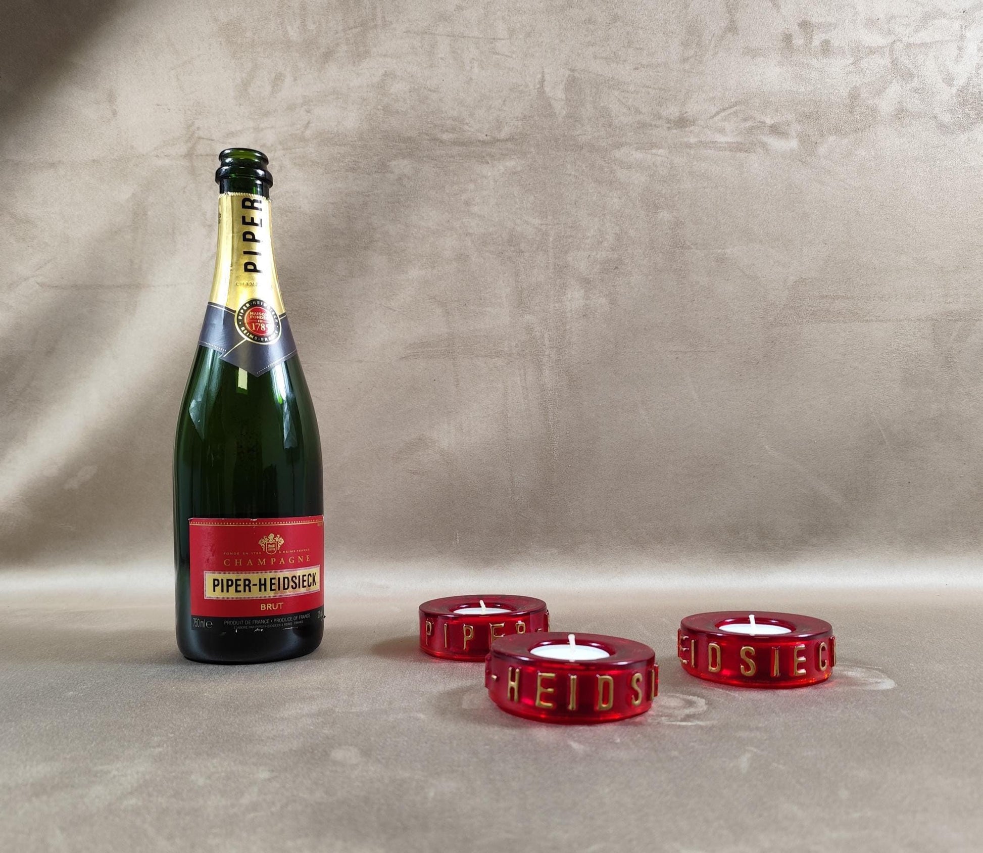 Lot de 3 photophores Champagne Piper-Heidsieck en verre rouge Made in France Vintage 1980