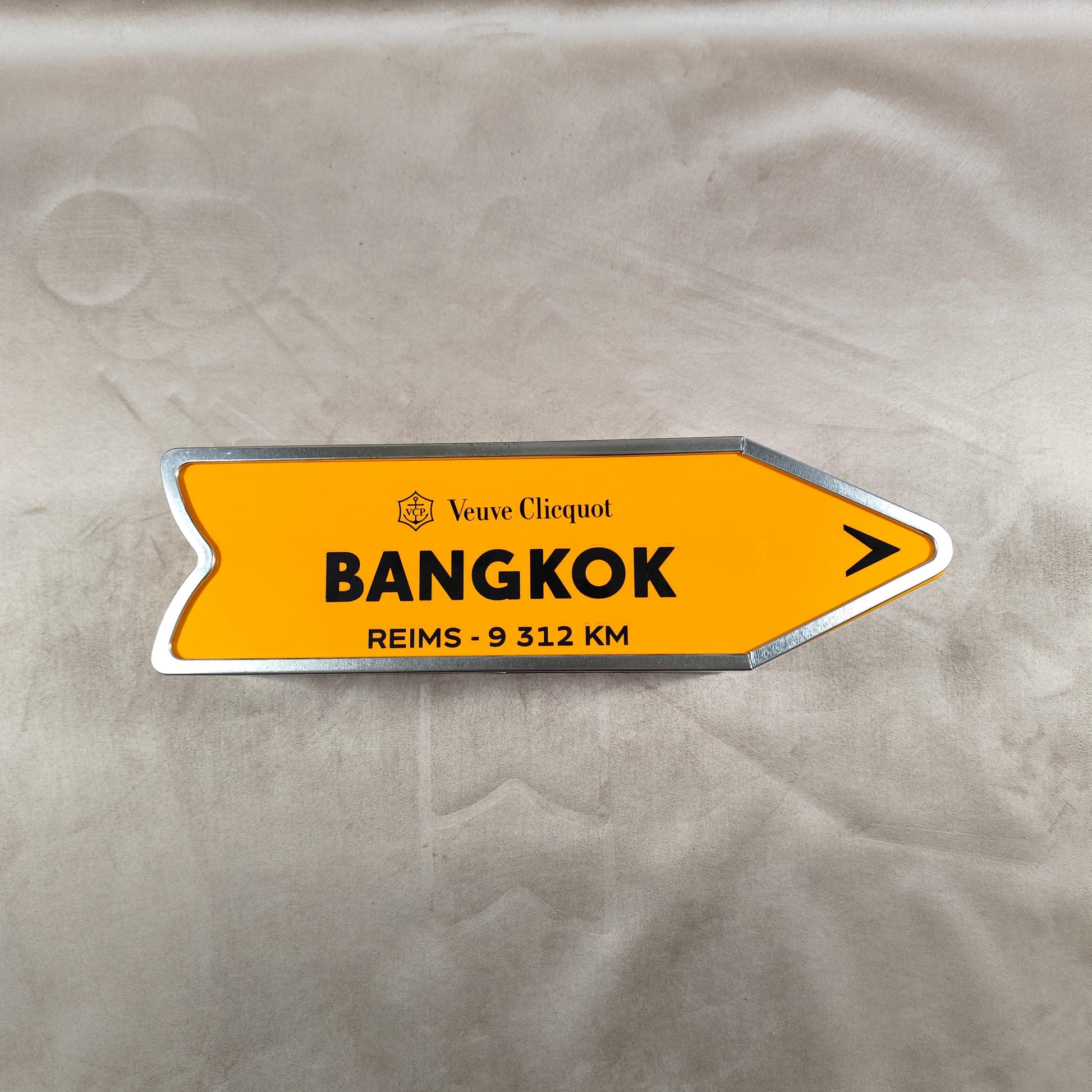 RARE Veuve Clicquot boite en métal orange panneau flèche BANGKOK Made in France Vintage 1990