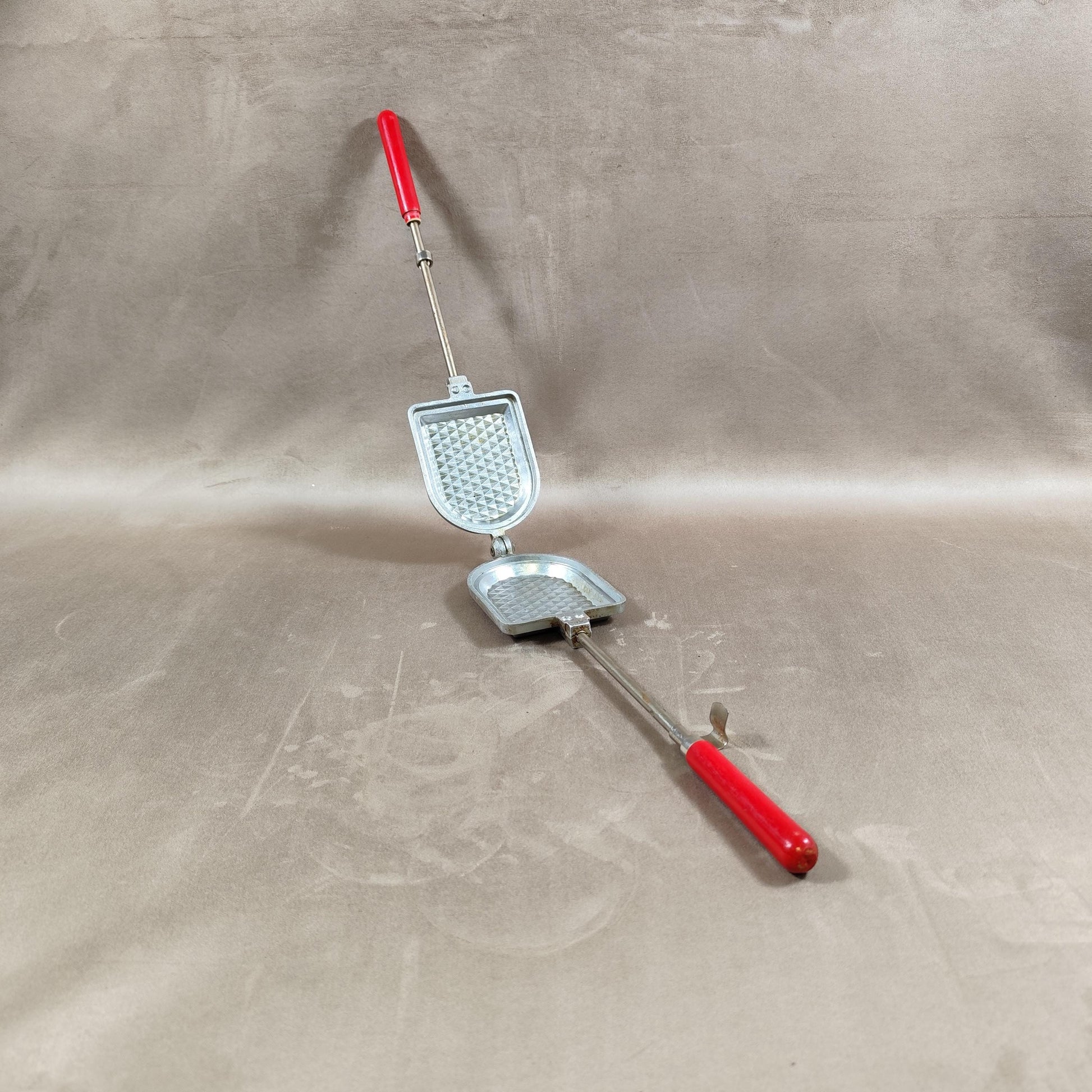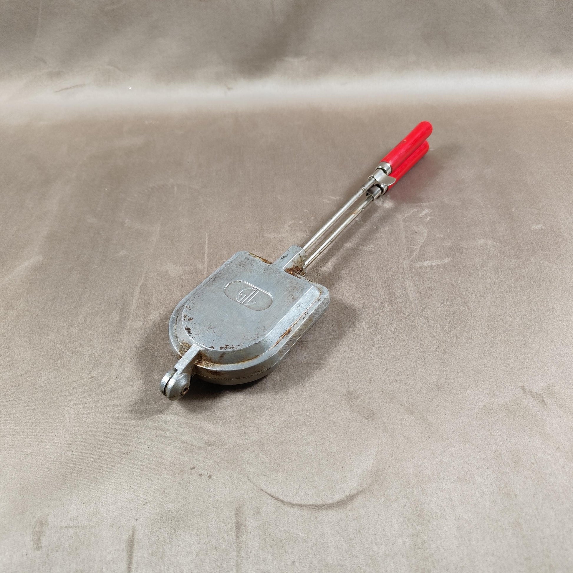 Appareil à croque-monsieur 1 plaques en fonte d‘aluminium G.L avec poignées en bois toasteur ancien Made in France Vintage 1970