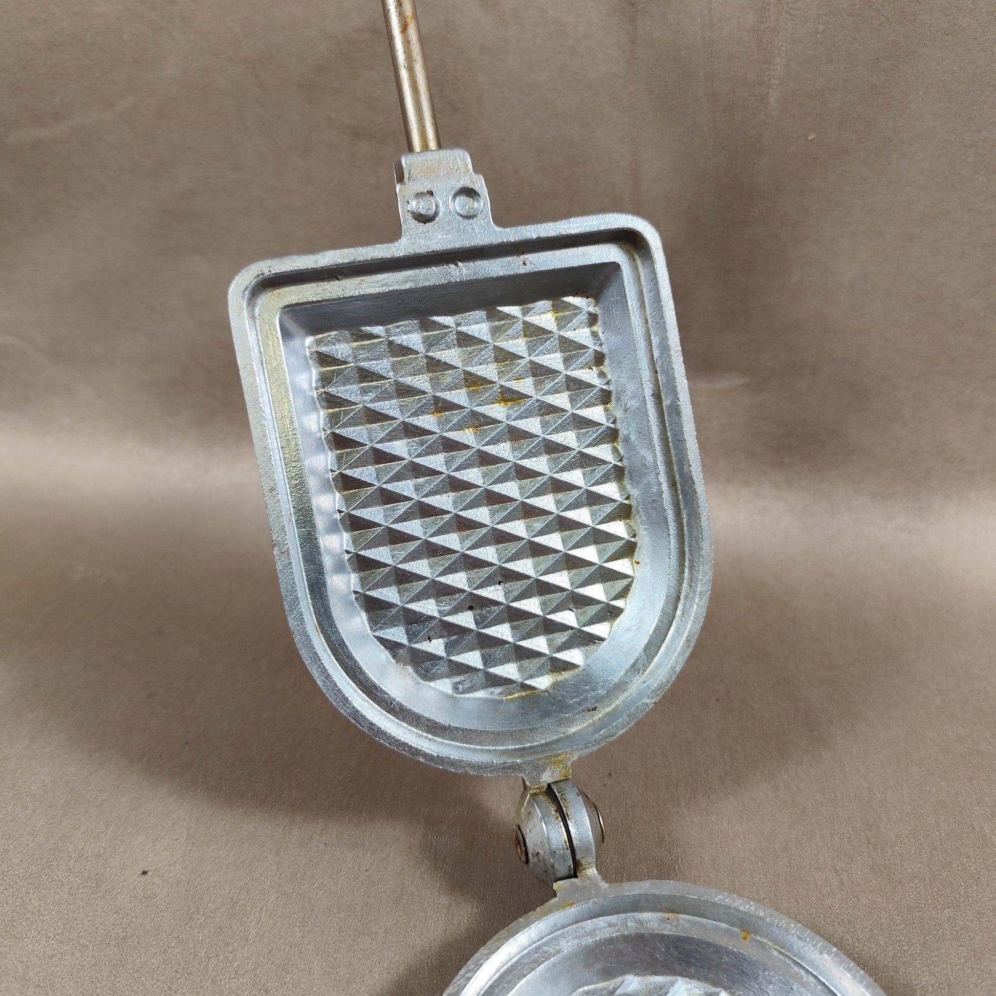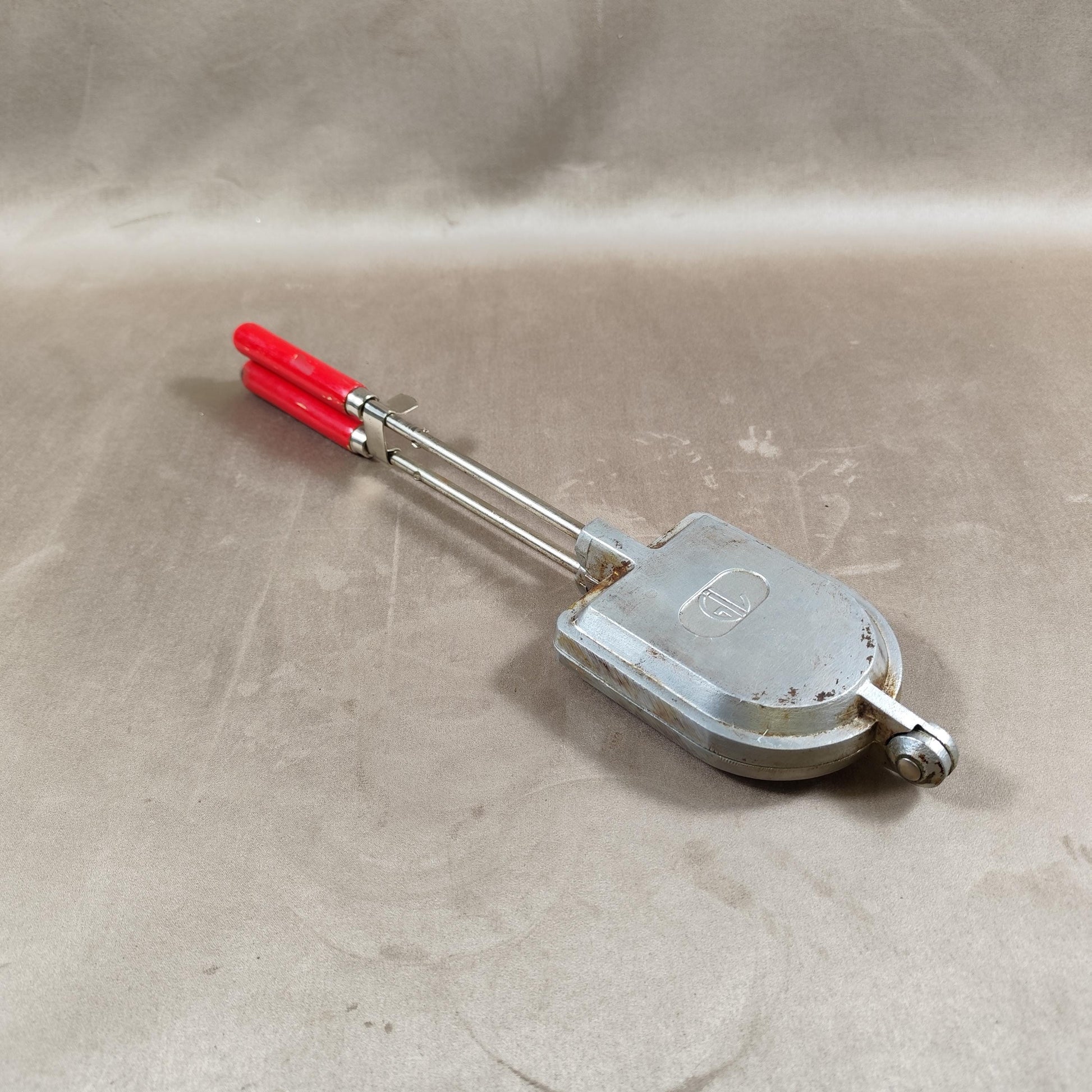 Appareil à croque-monsieur 1 plaques en fonte d'aluminium G.L avec poignées en bois toasteur ancien Made in France Vintage 1970