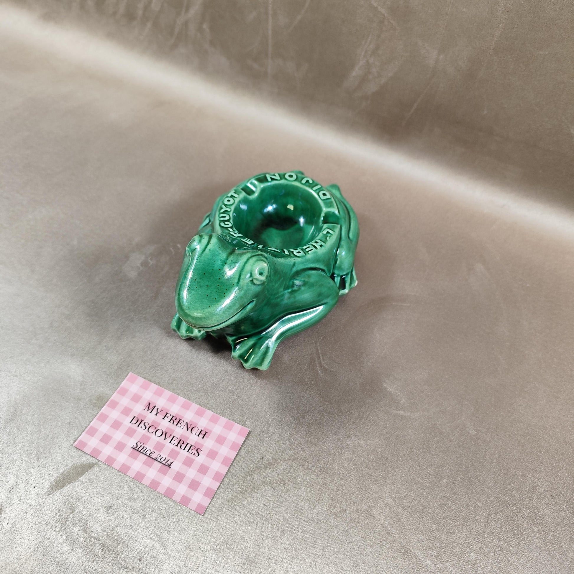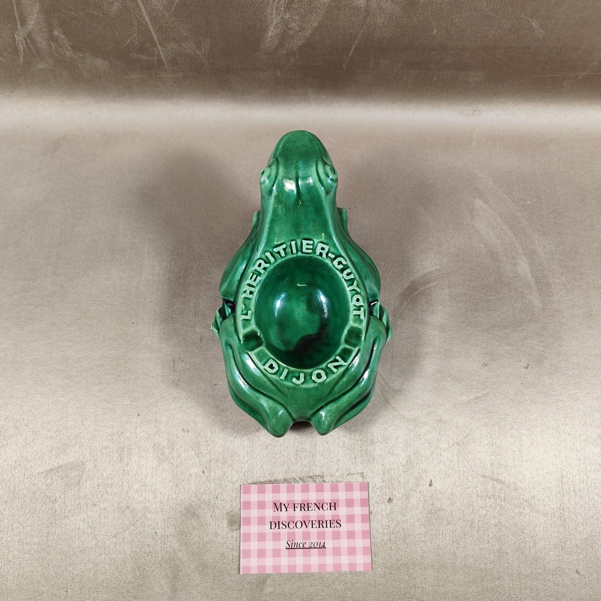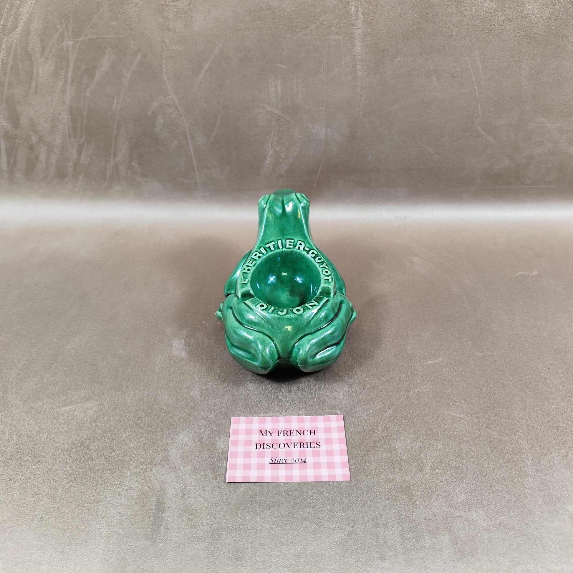 Cendrier publicitaire grenouille LHéritier-Guyot en céramique verte Dijon