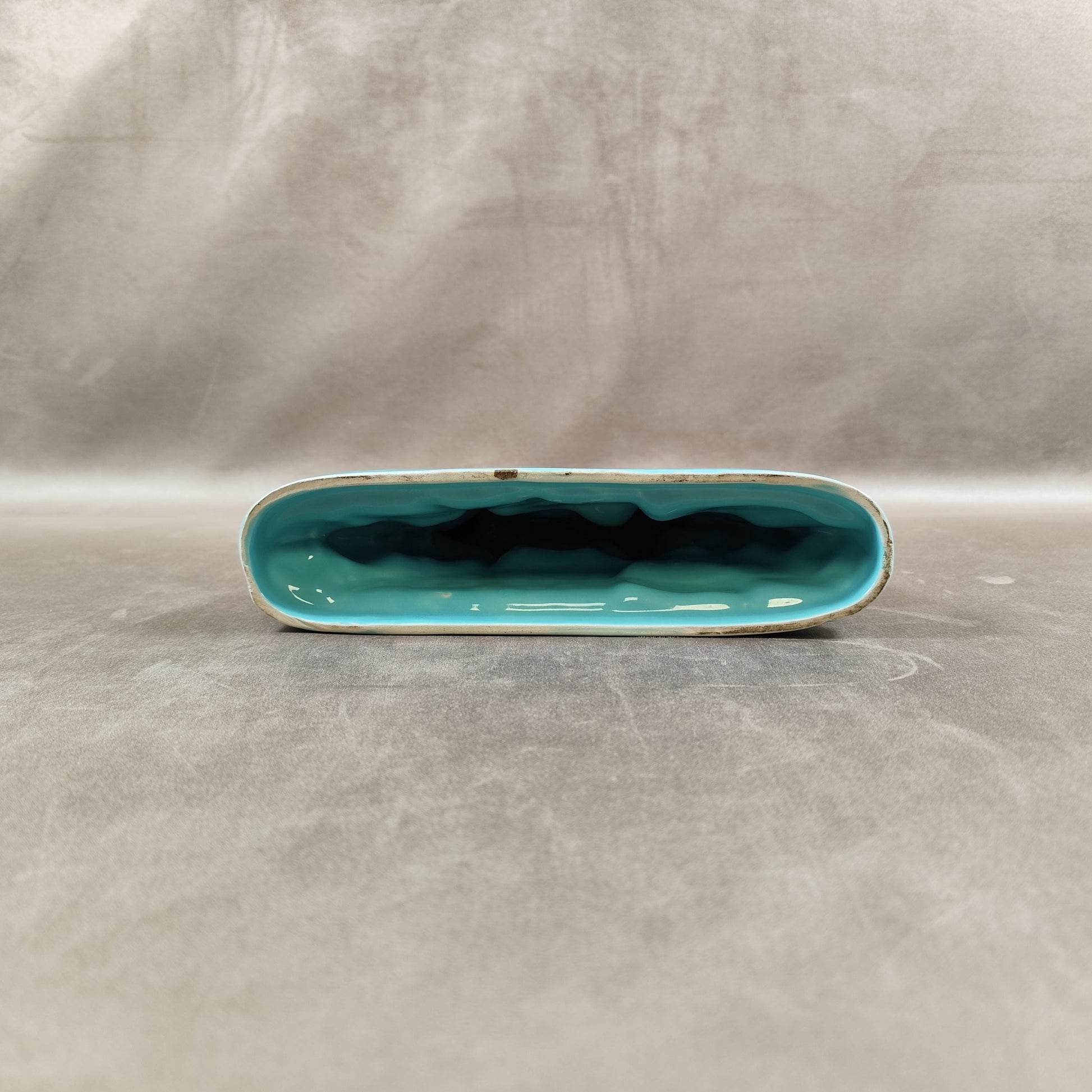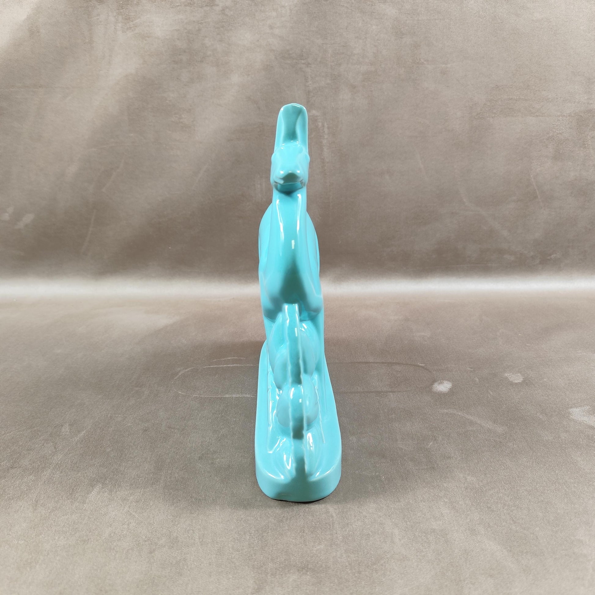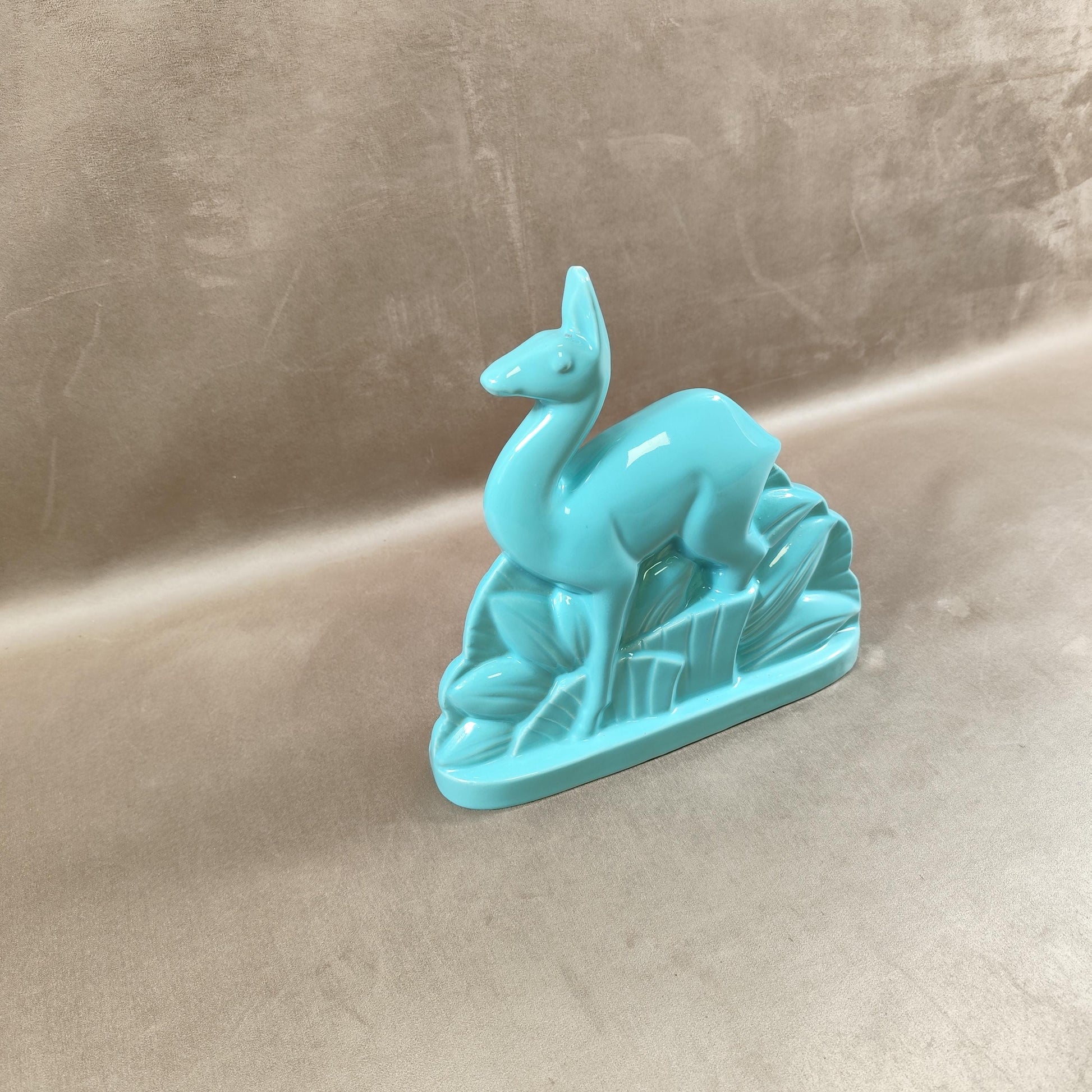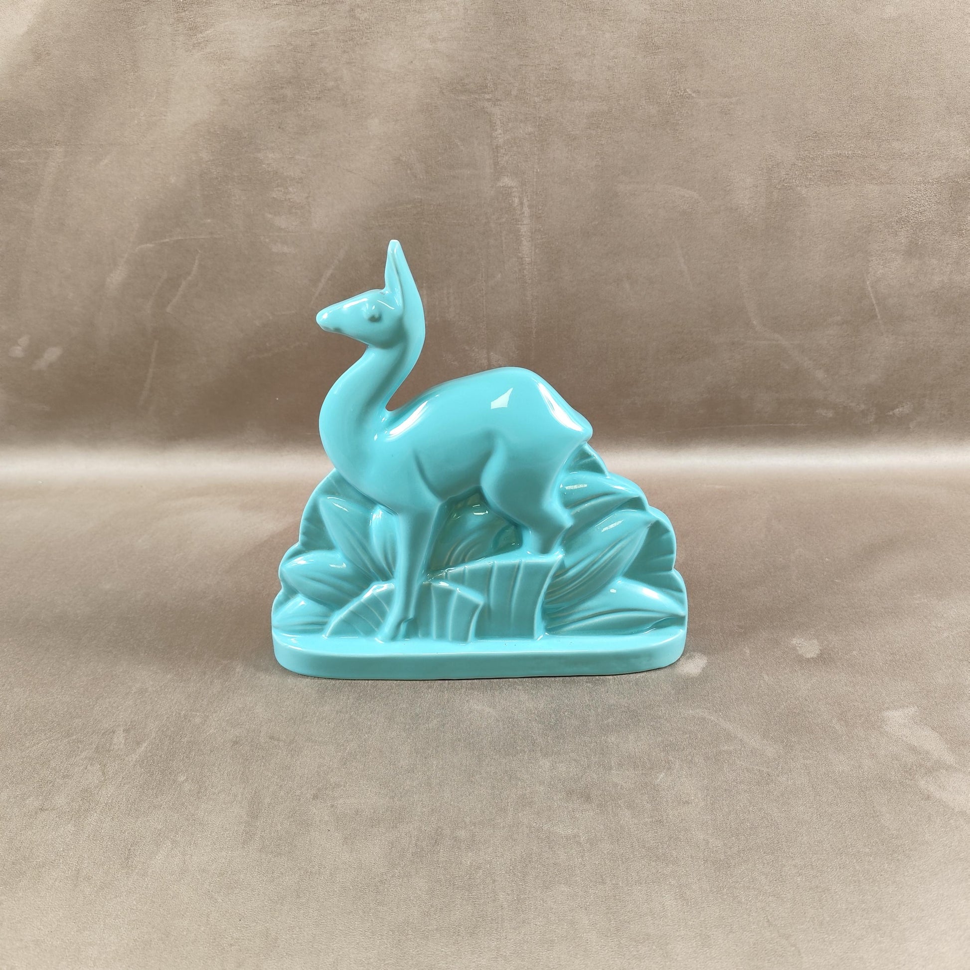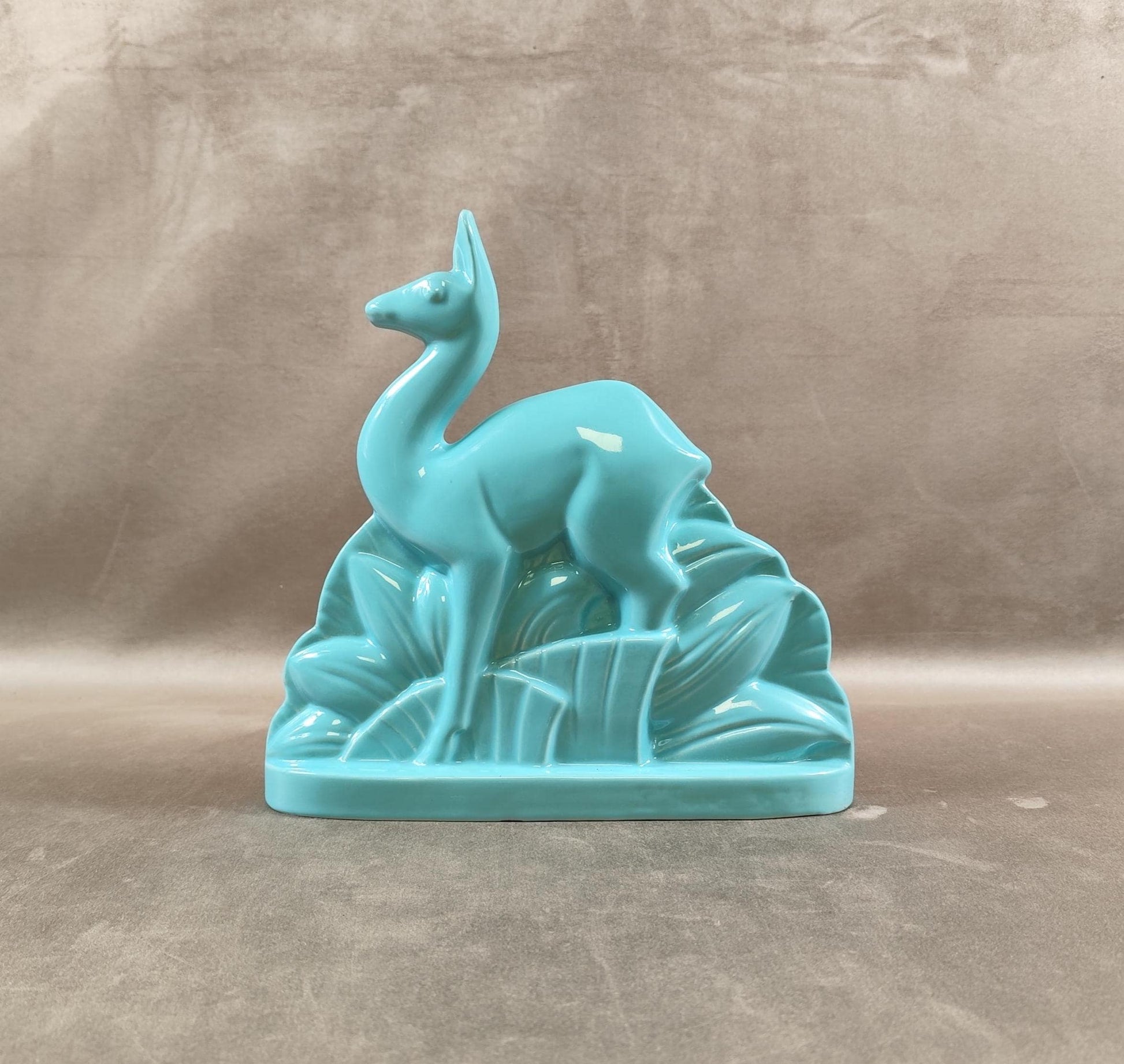 Cerf Art Déco signé St Clément en faïence émaillée bleu numéroté 587-2 Made in France Vintage 1930