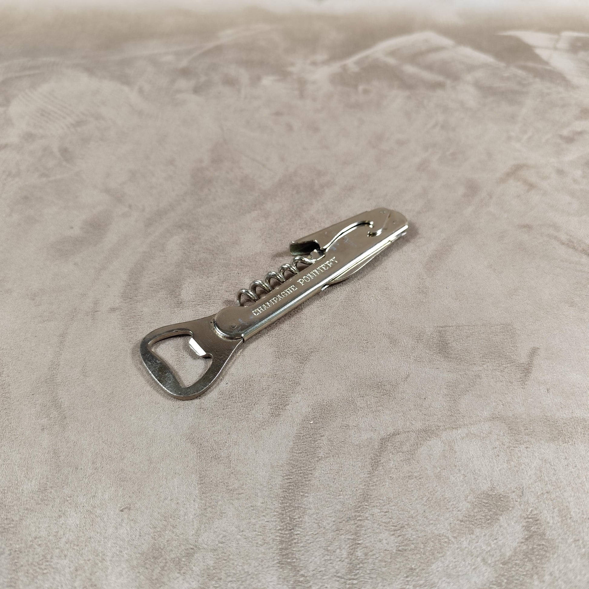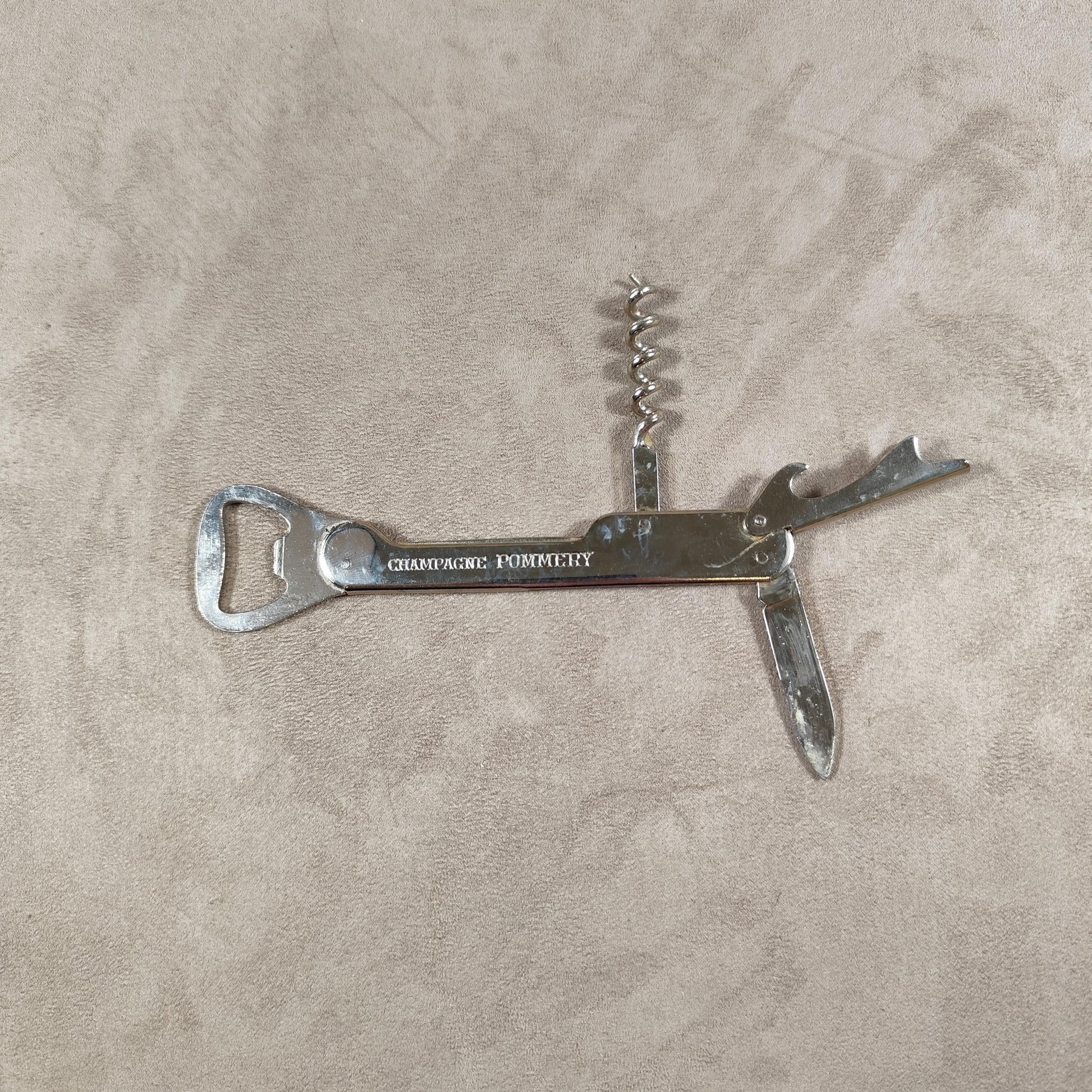 Décapsuleur, Tire-bouchon Champagne Pommery en métal Made in France Vintage 1970