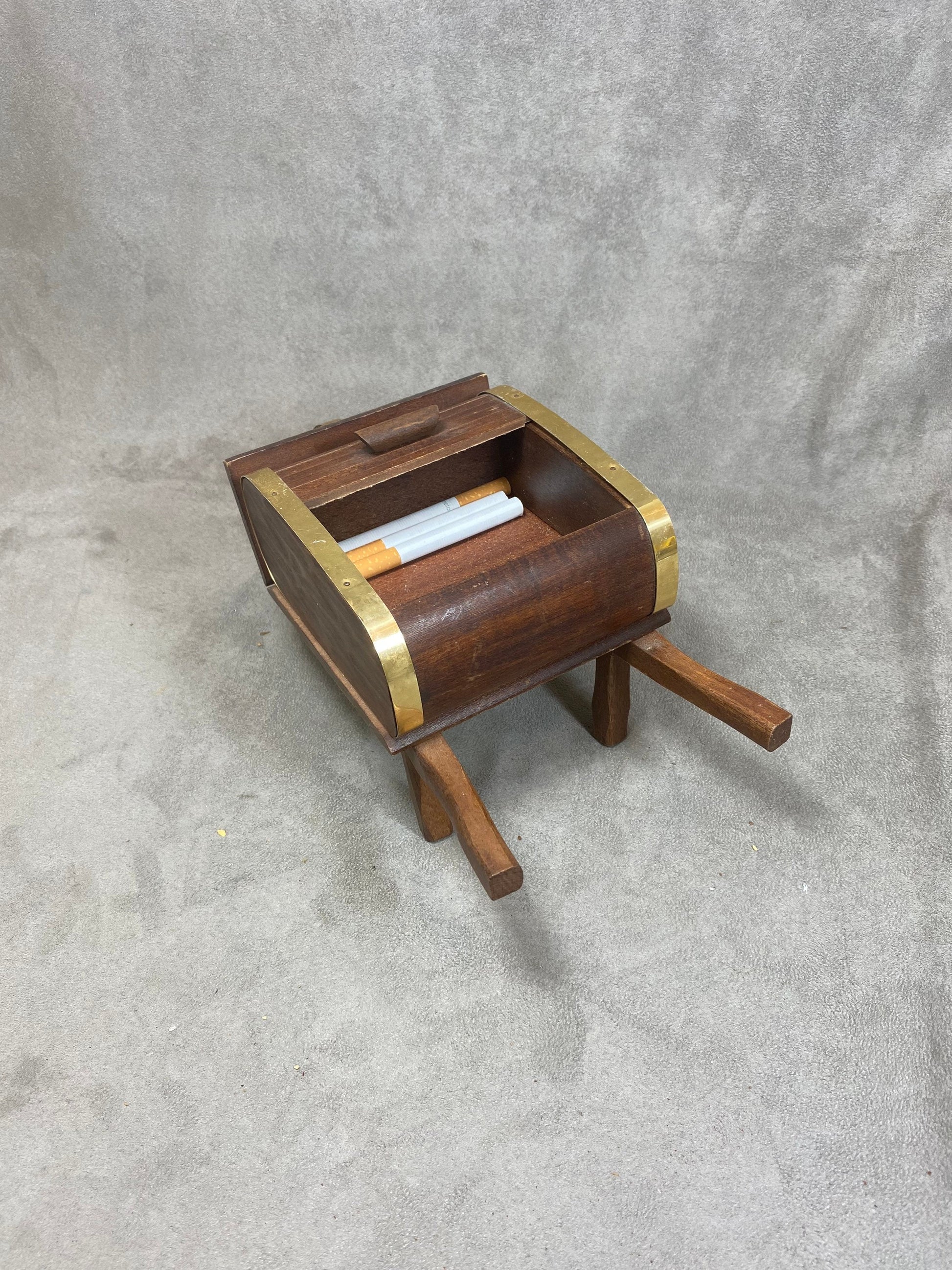 Wooden Cigarette Box Dispenser, Wheelbarrow, Made in France, Vintage 1970