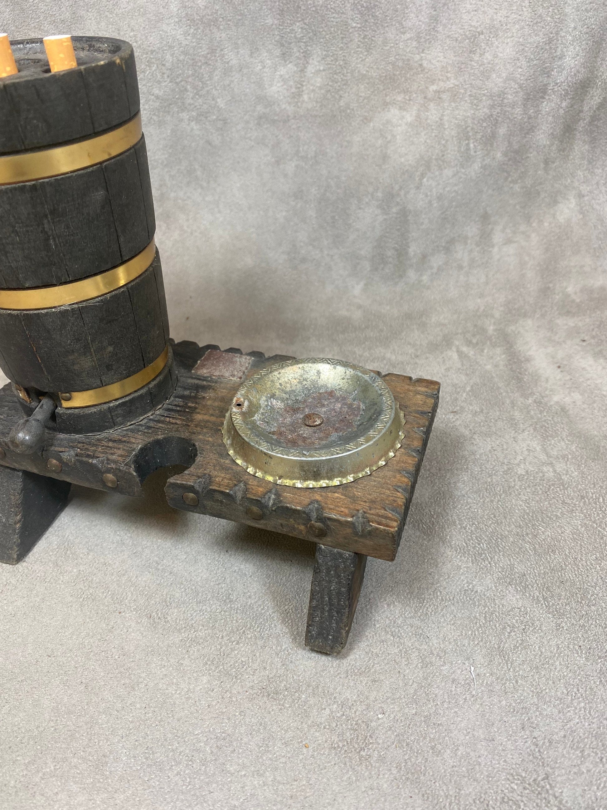 Vintage barrel-shaped wooden cigarette box dispenser Made in France
