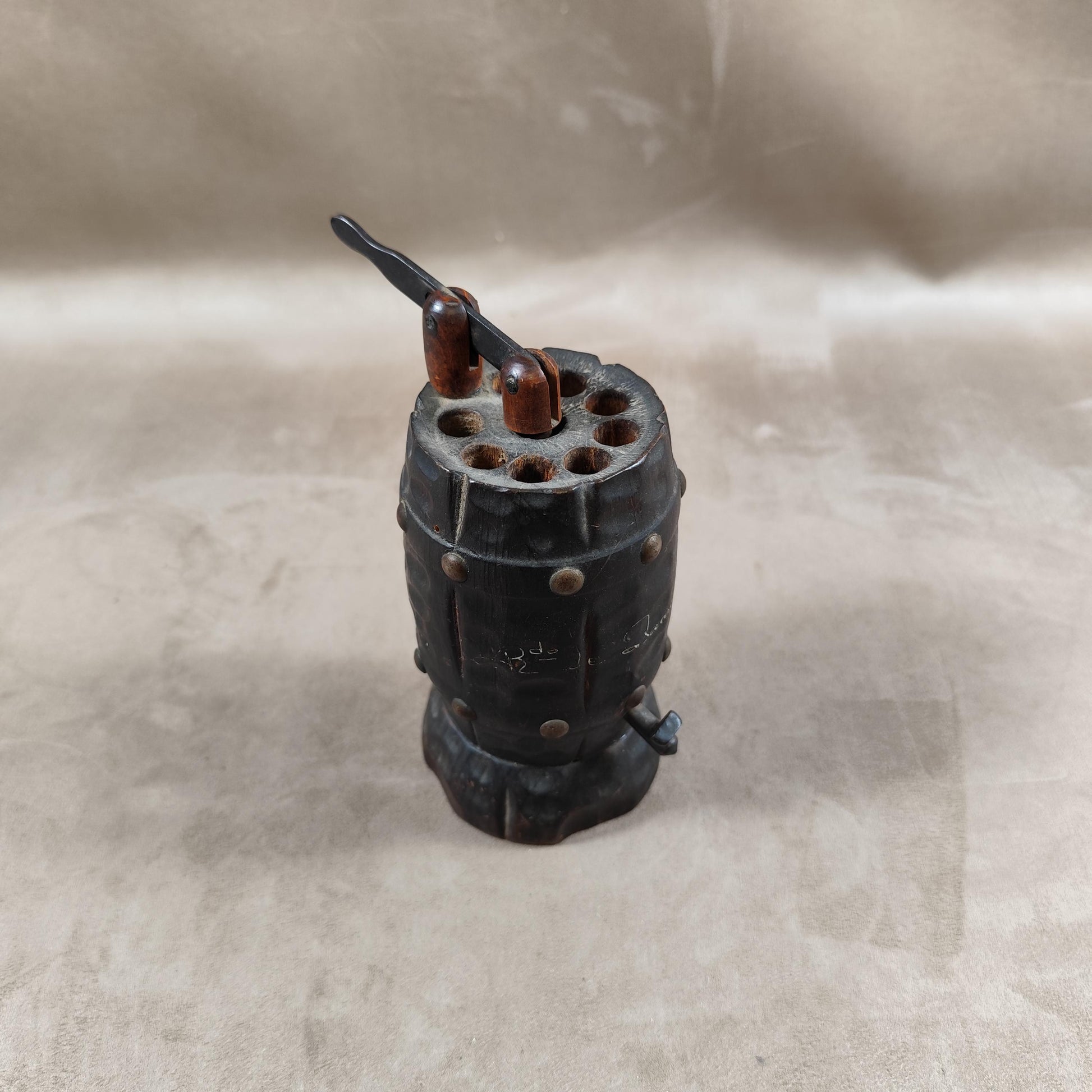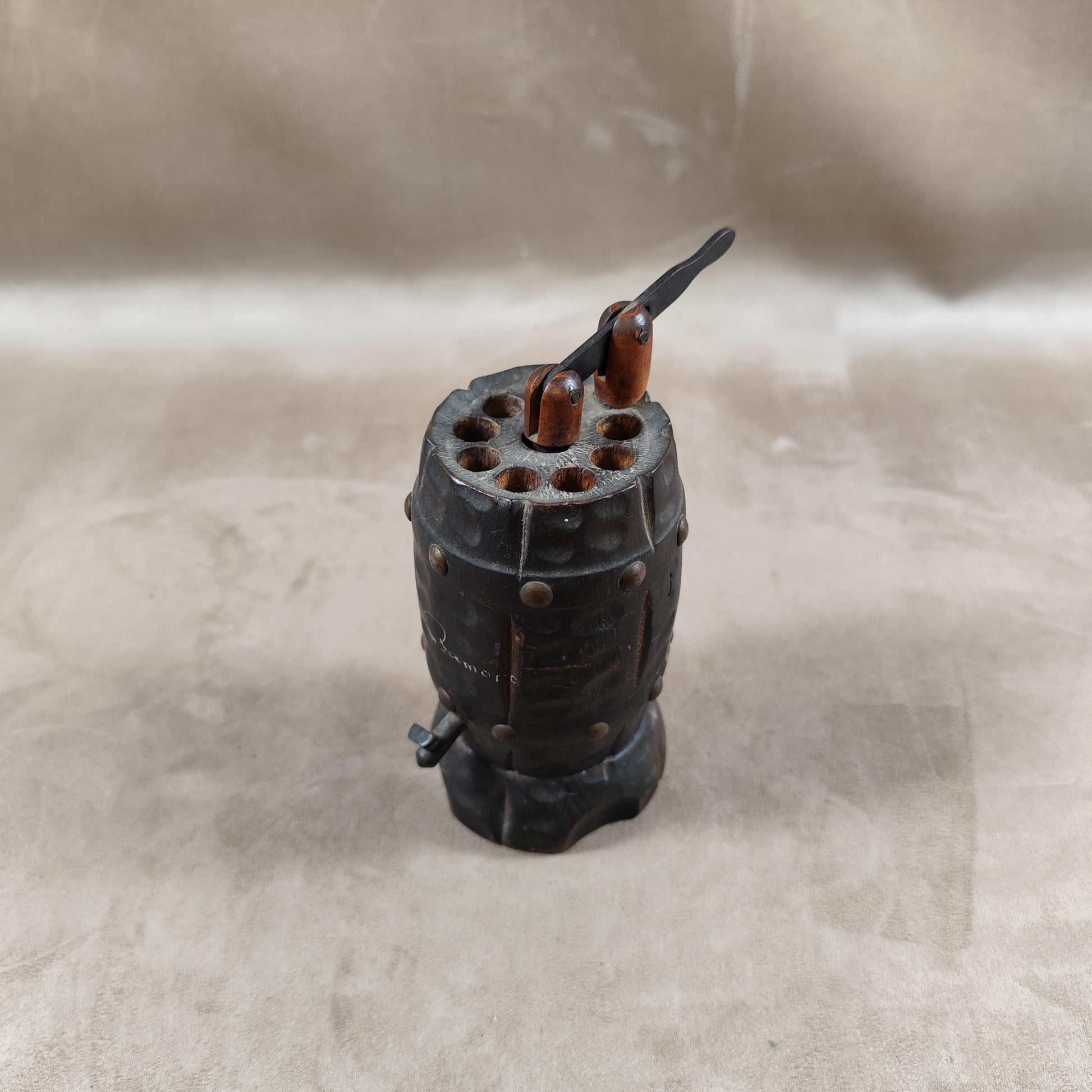 Distributeur boite à cigarette en bois en forme de tonneau vintage Made in France