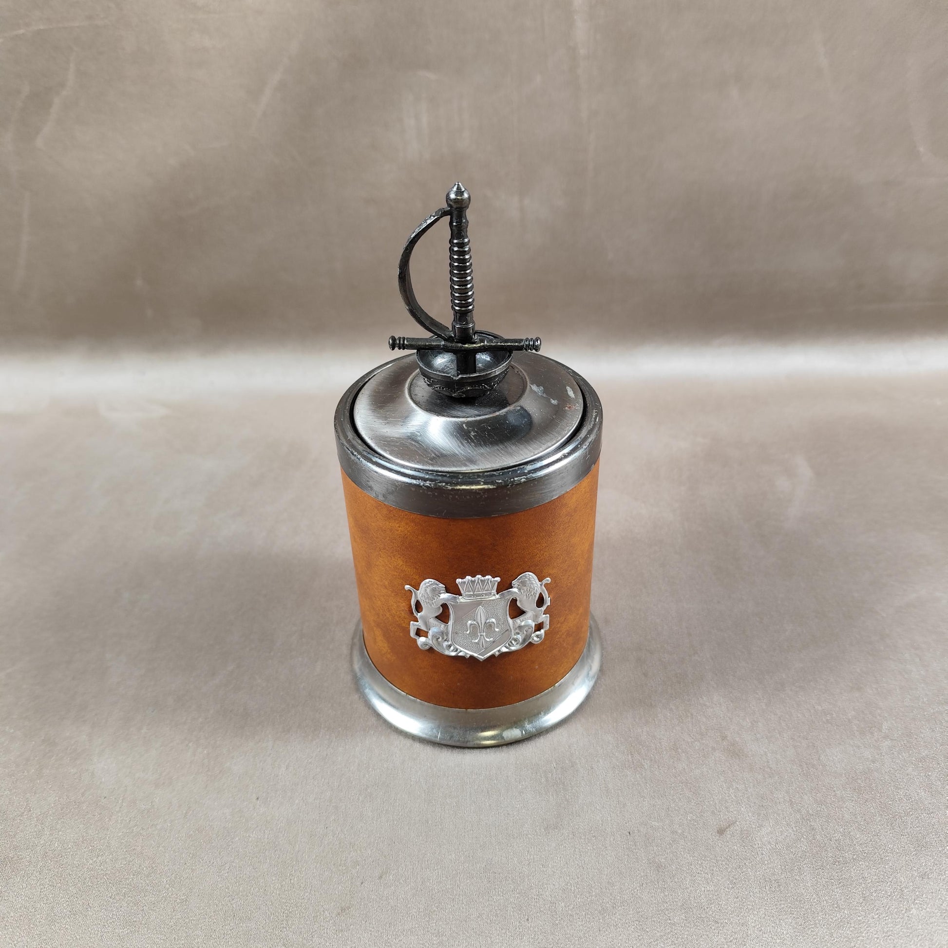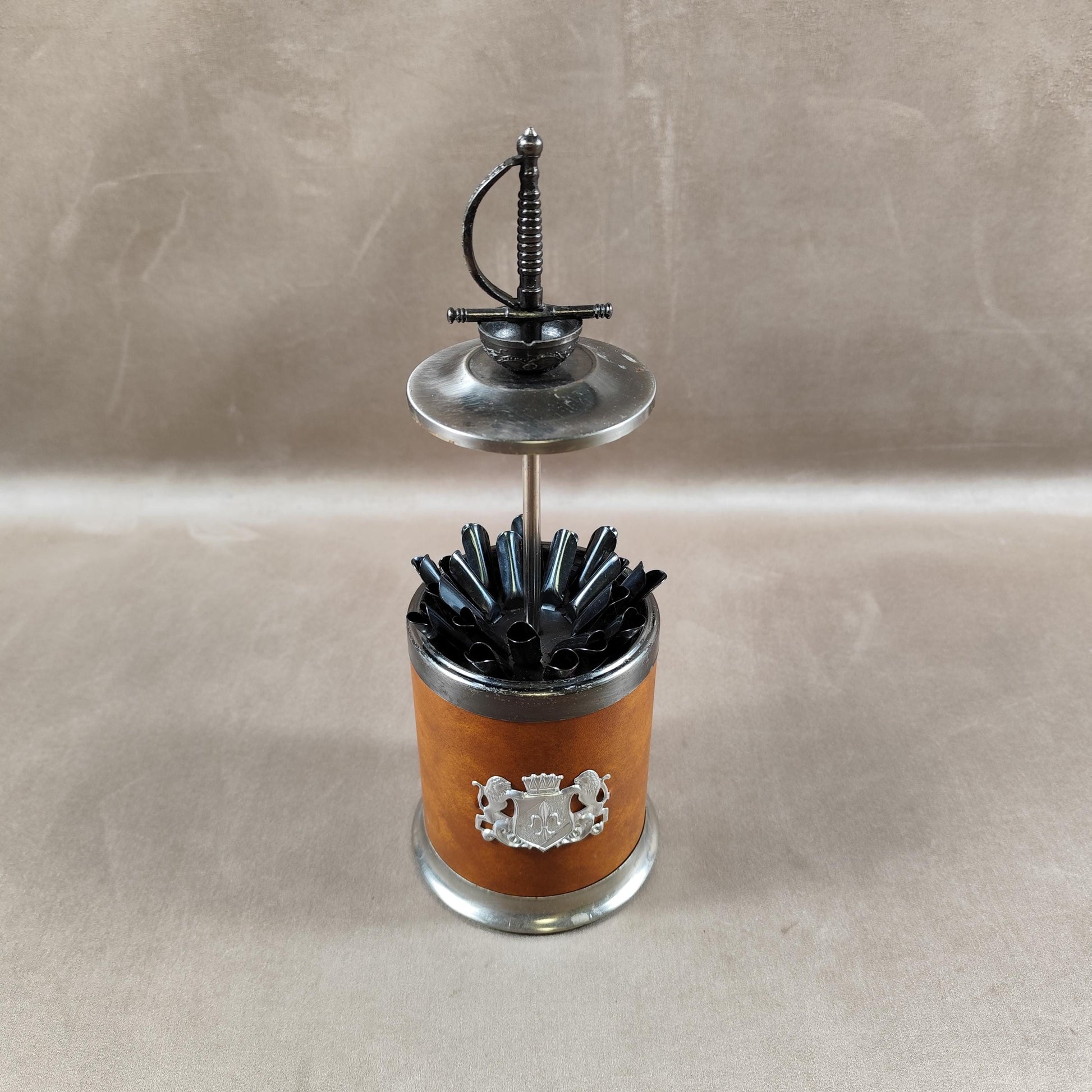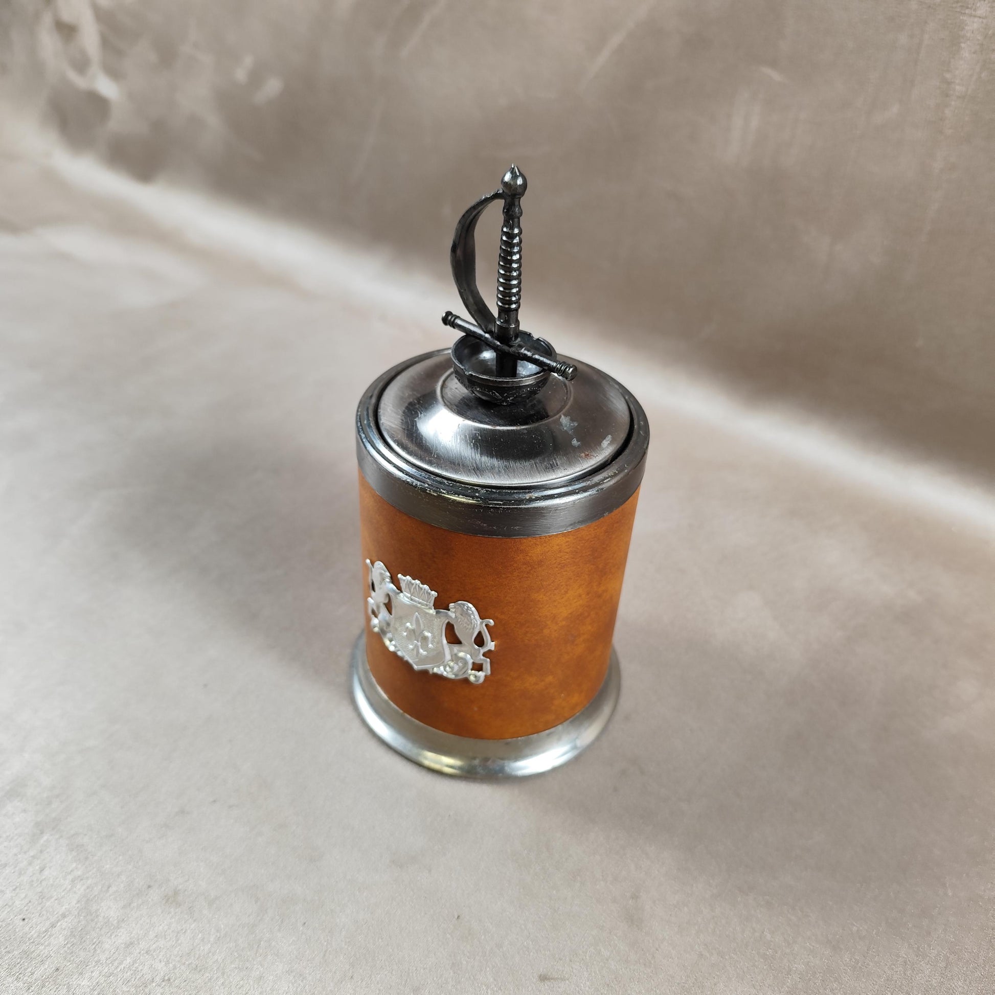 Distributeur de cigarette en laiton et cuir Made in France Vintage 1970