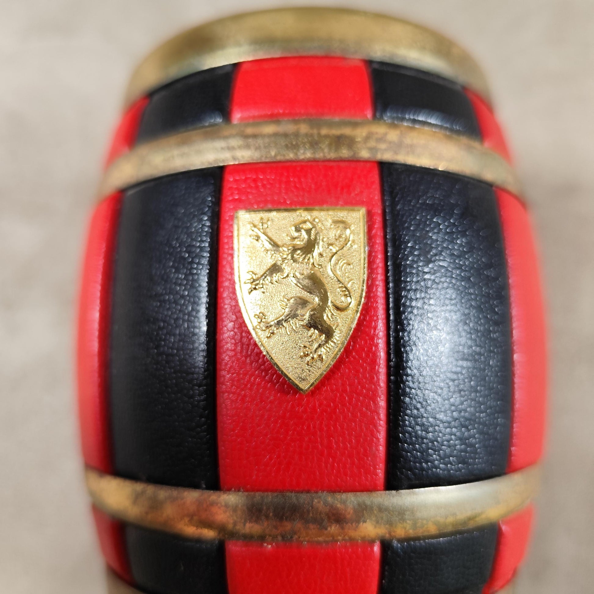 Distributeur de cigarette vintage en laiton et cuir noir et rouge Circa 1960