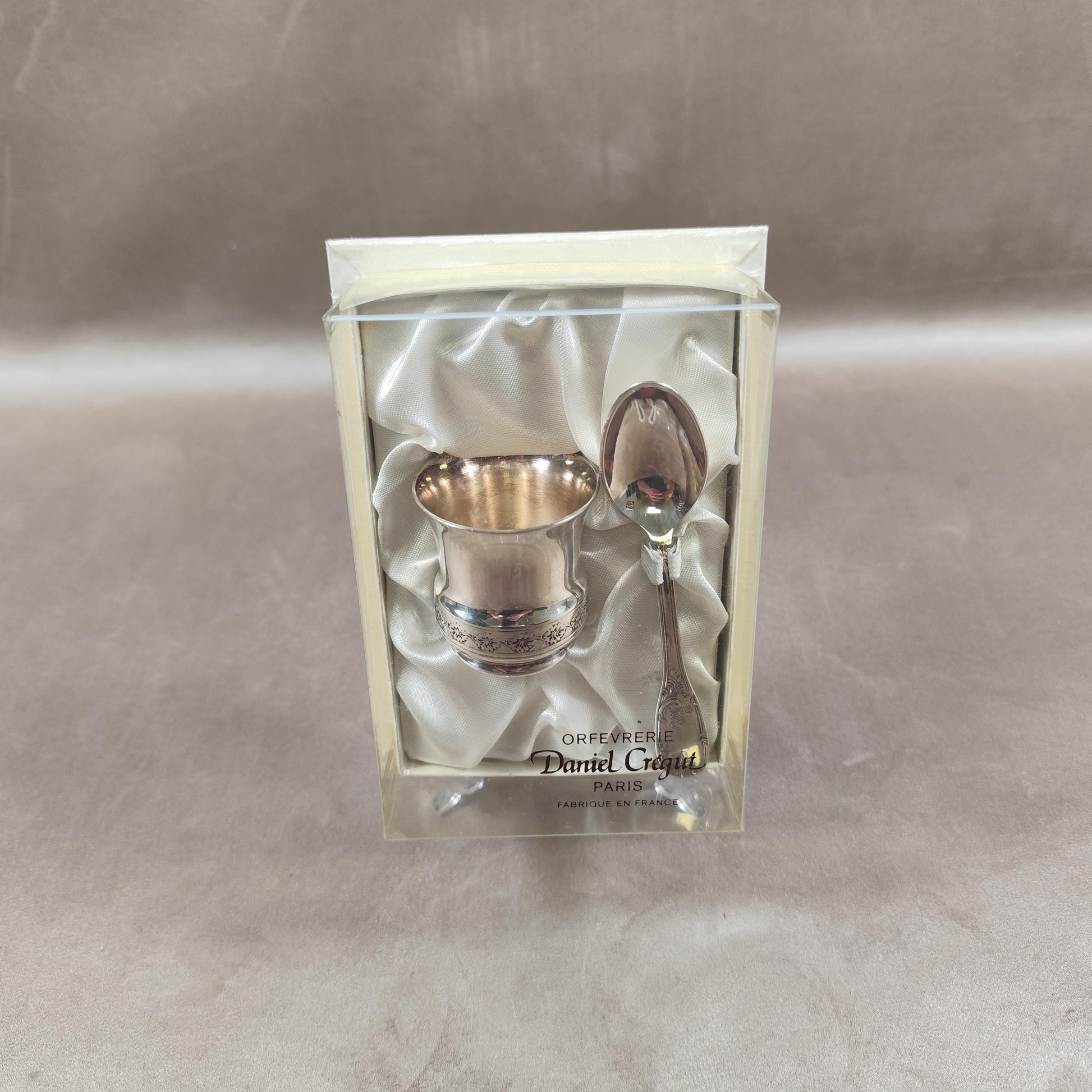 Ecrin coquetier et cuillère Daniel Crégut en métal argenté Poinçon d‘orfèvre Made in France Vintage 1900