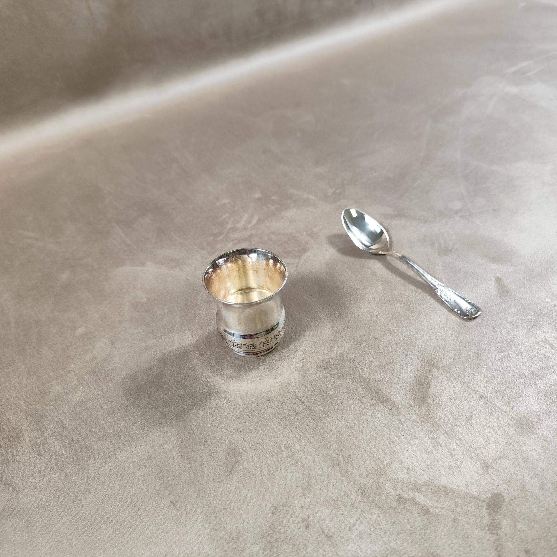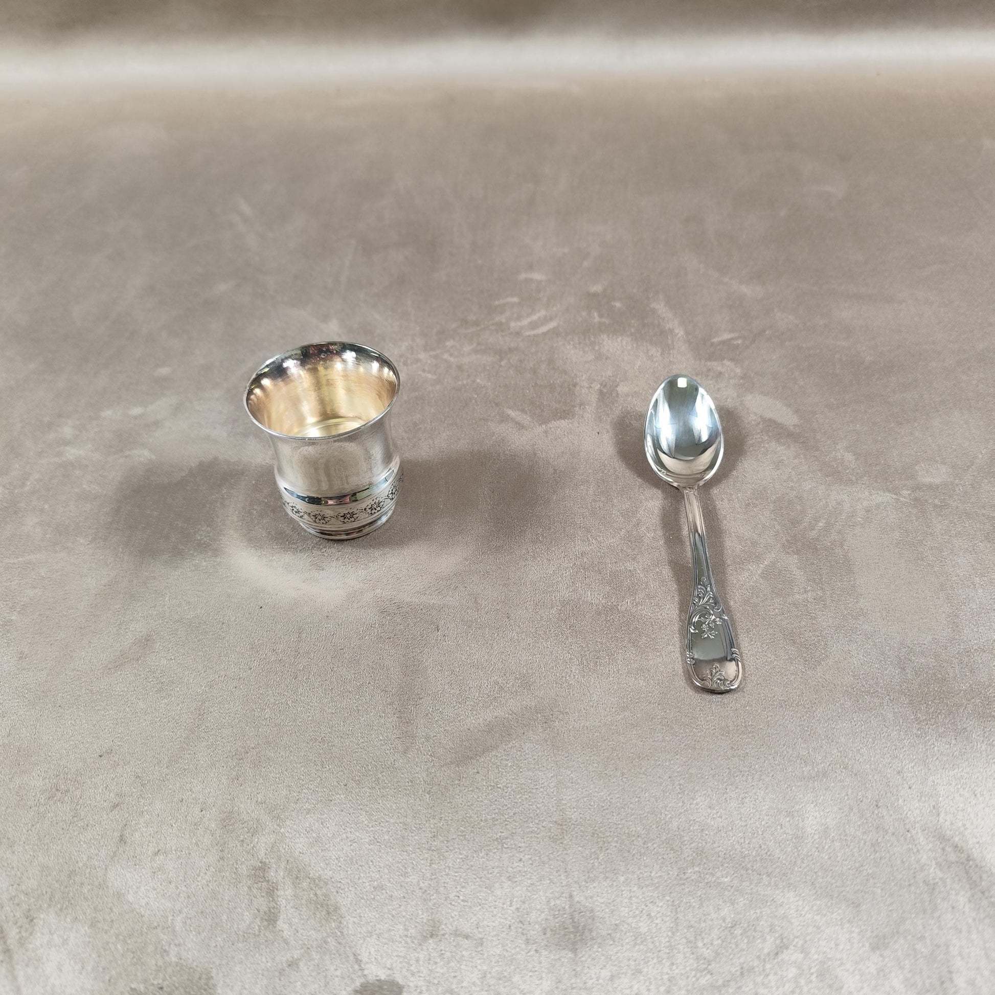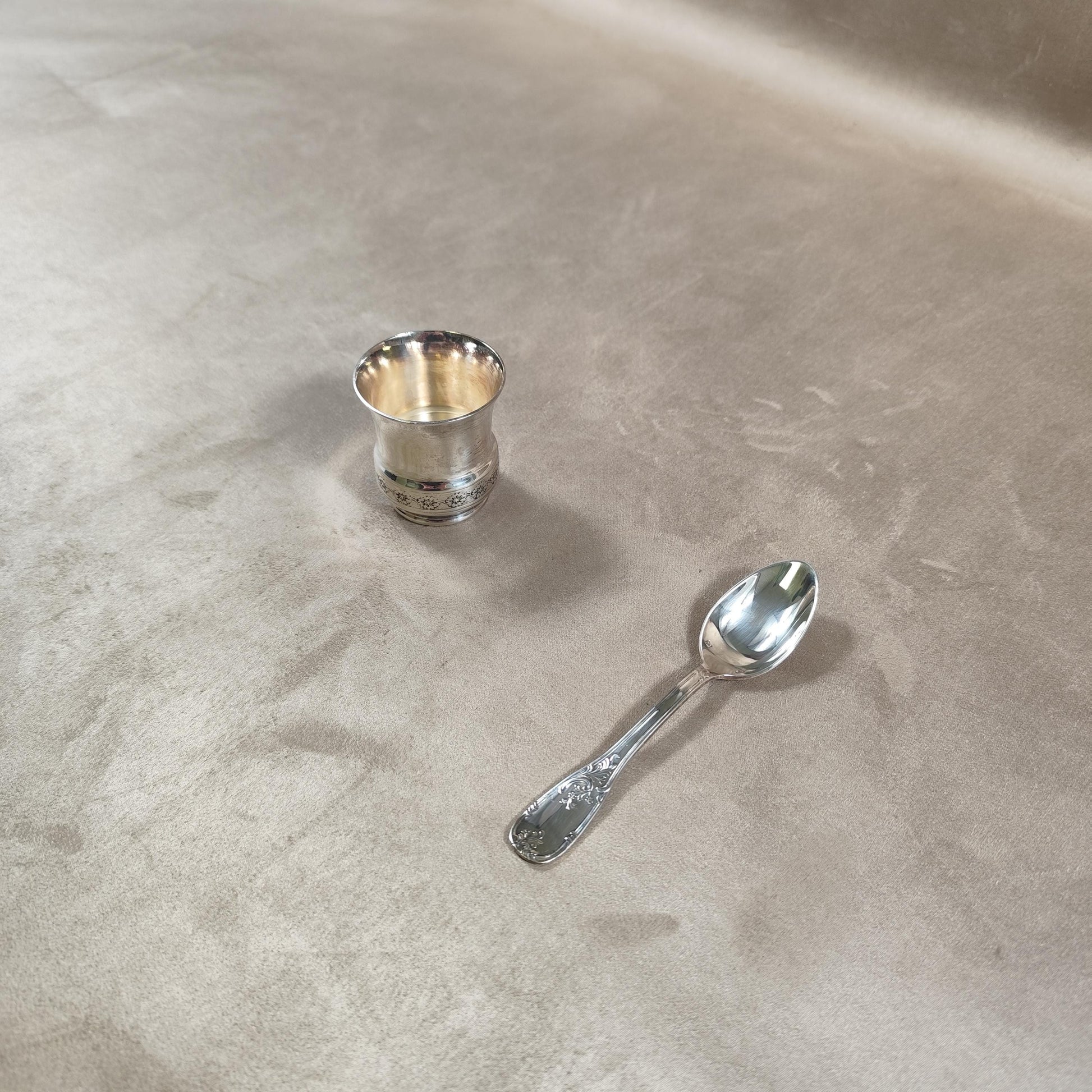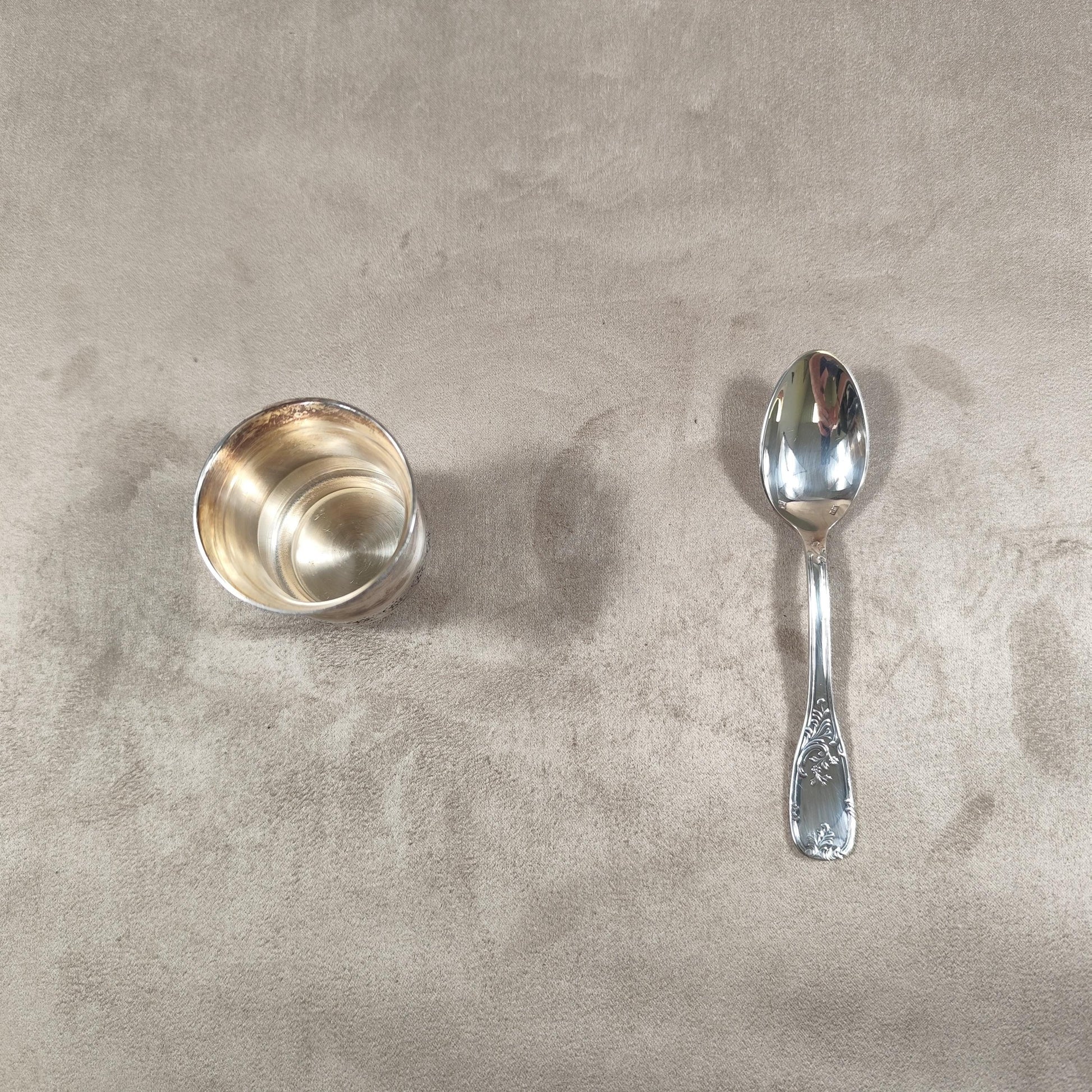 Ecrin coquetier et cuillère Daniel Crégut en métal argenté Poinçon d'orfèvre Made in France Vintage 1900
