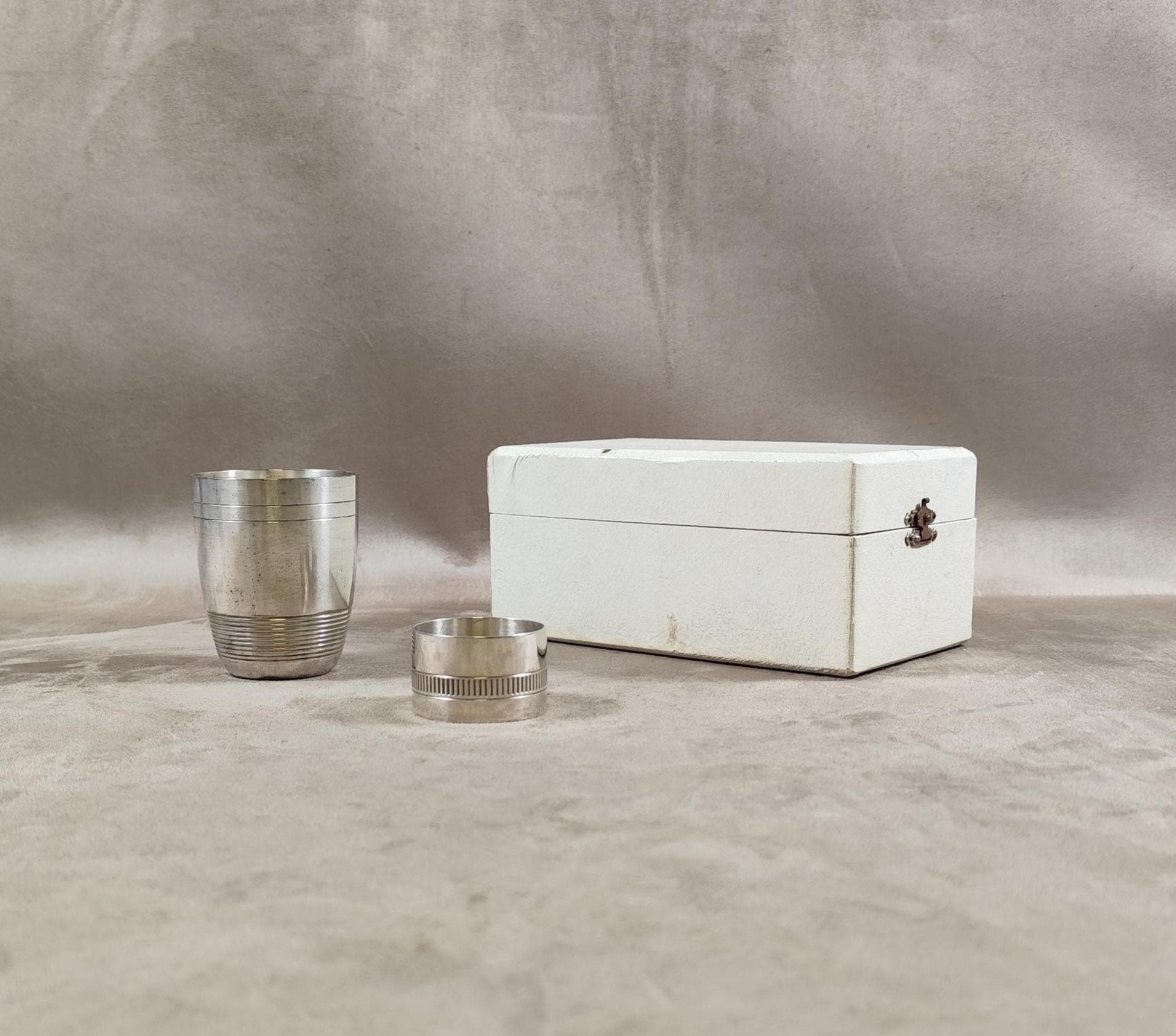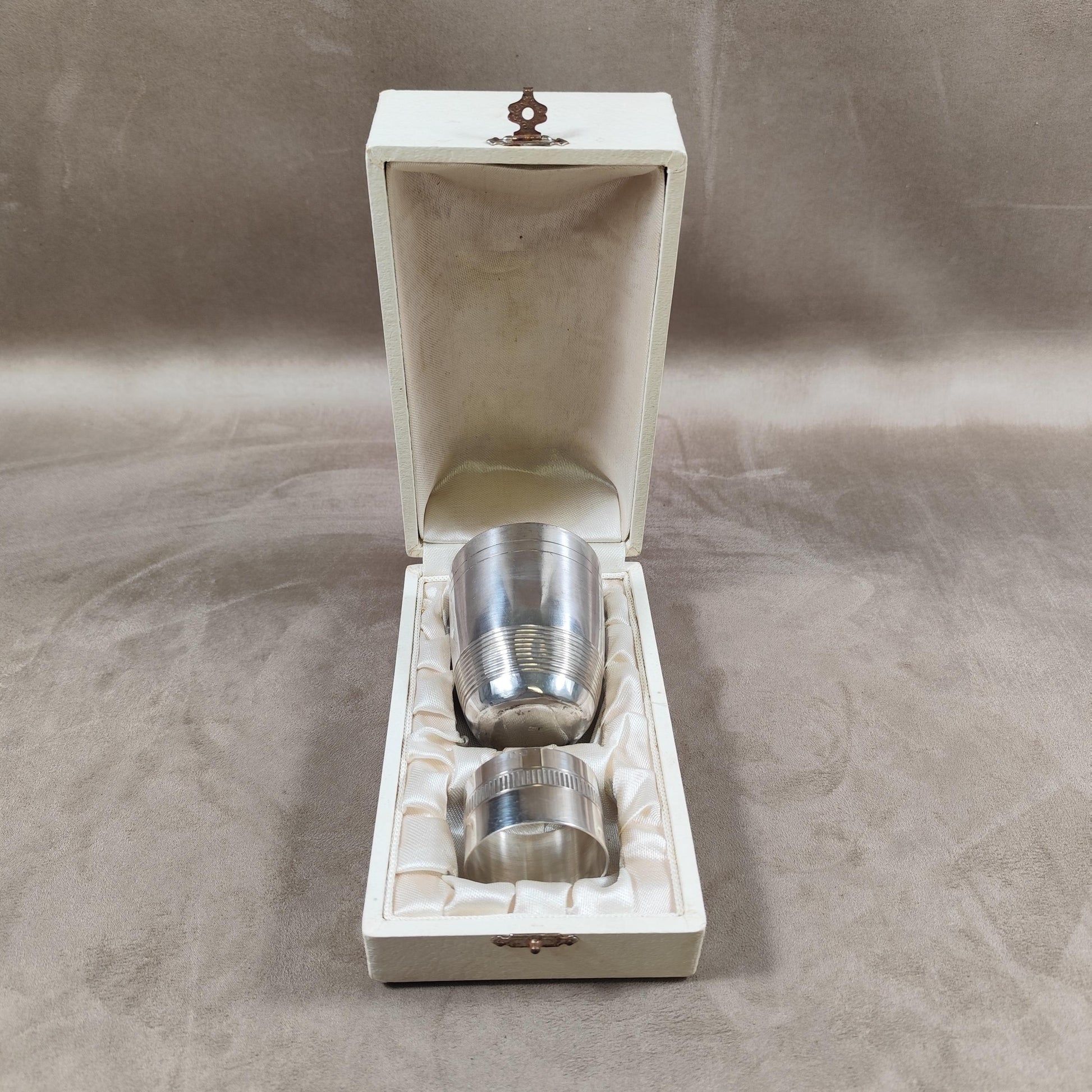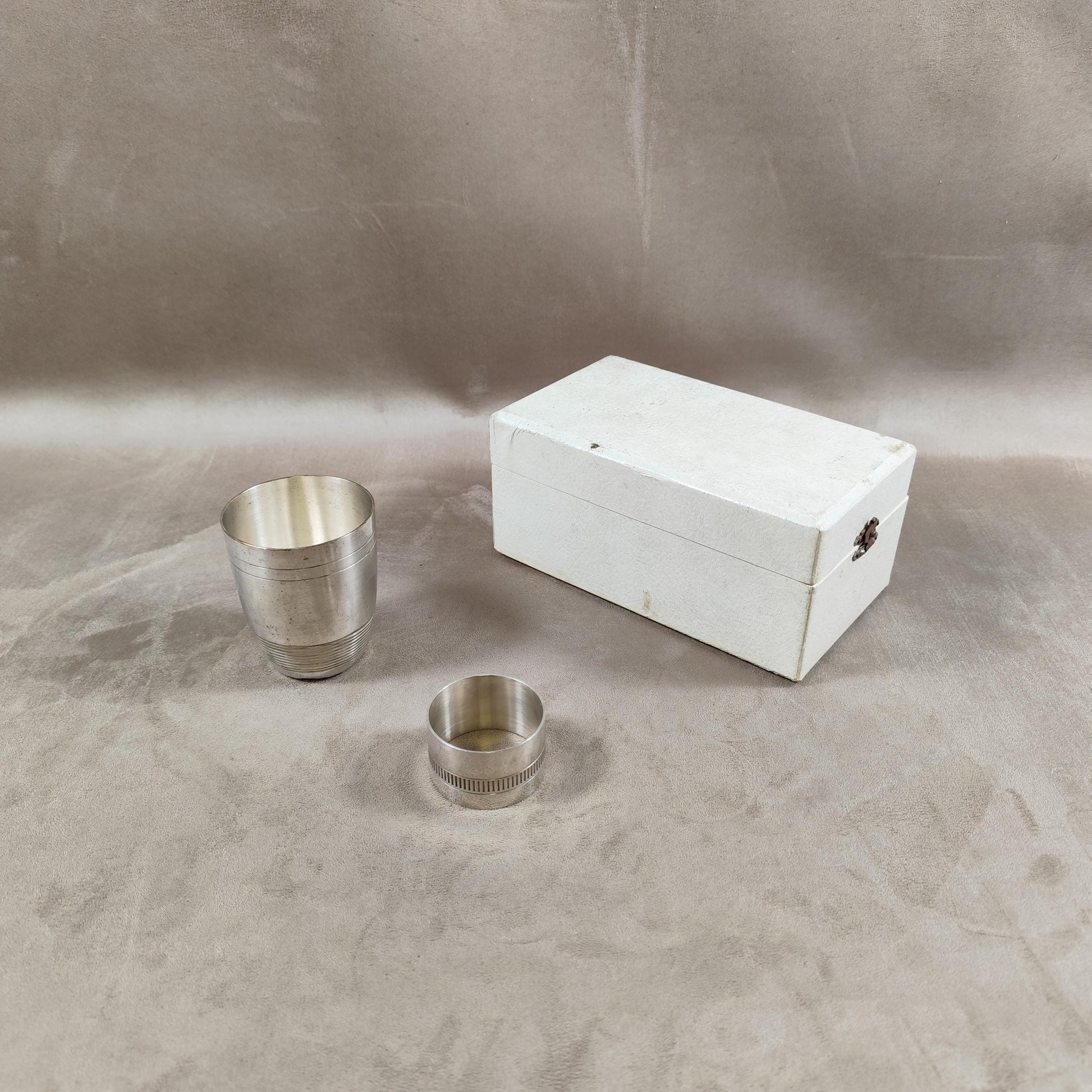 Ecrin Timbale de baptêmes et rond de serviette en métal argenté Made in France Vintage 1970