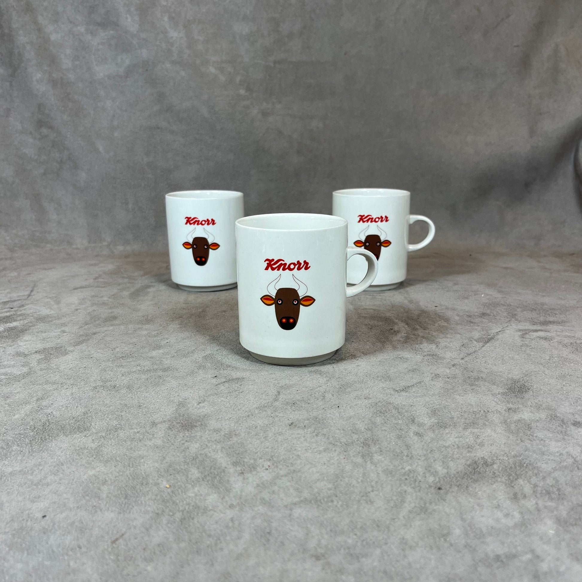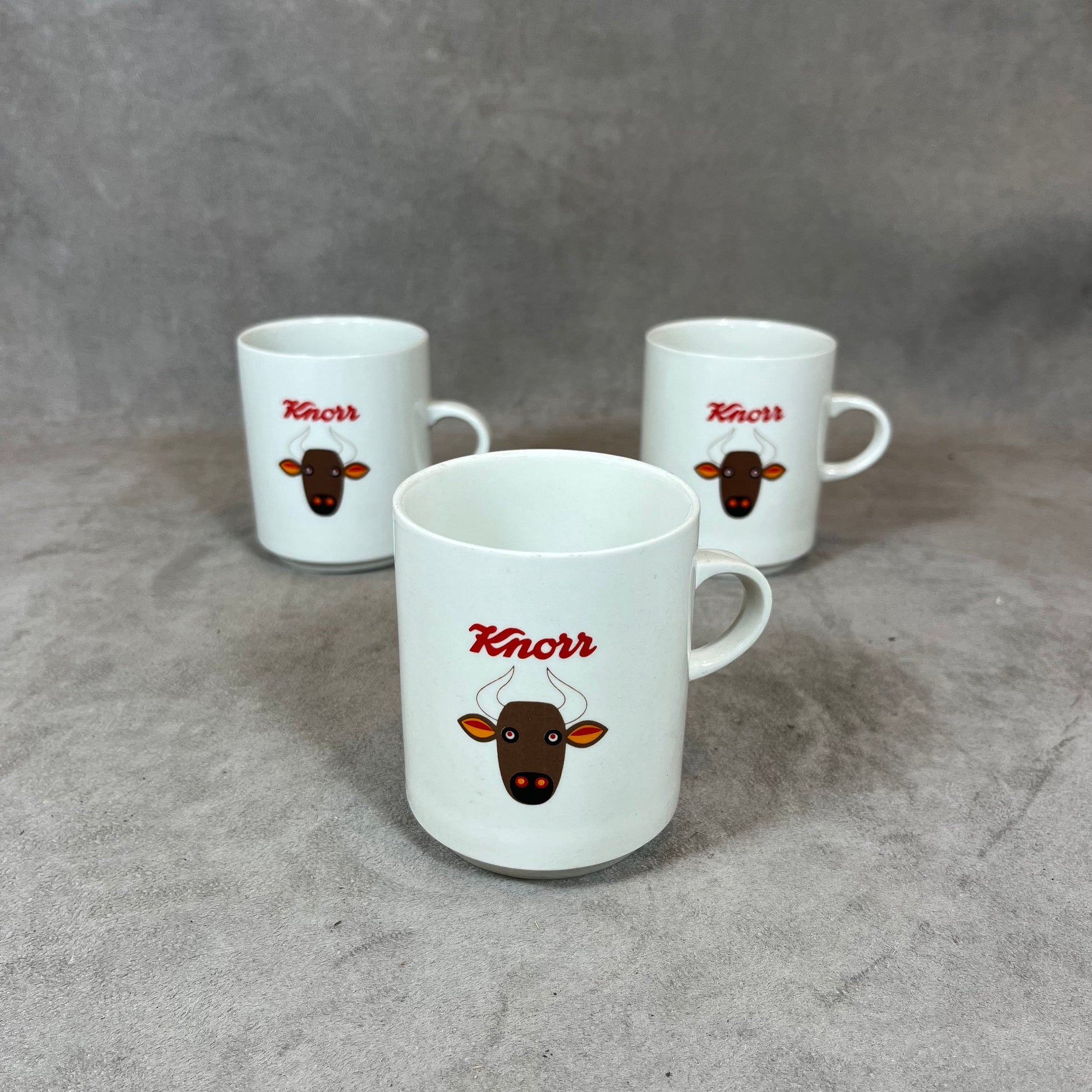 Set of 3 Advertising Mugs in Earthenware, Knorr, Made in France, Vintage 1980