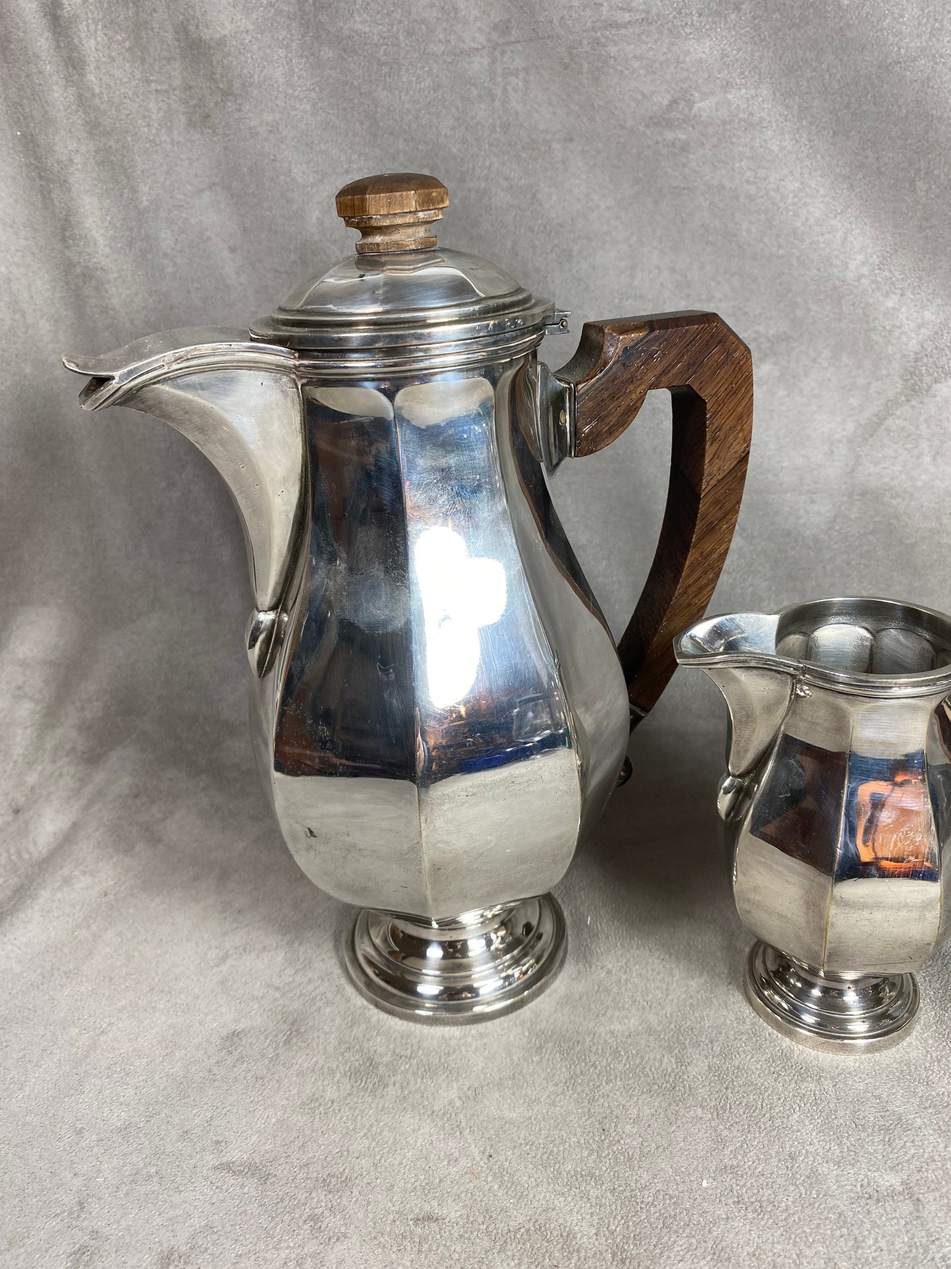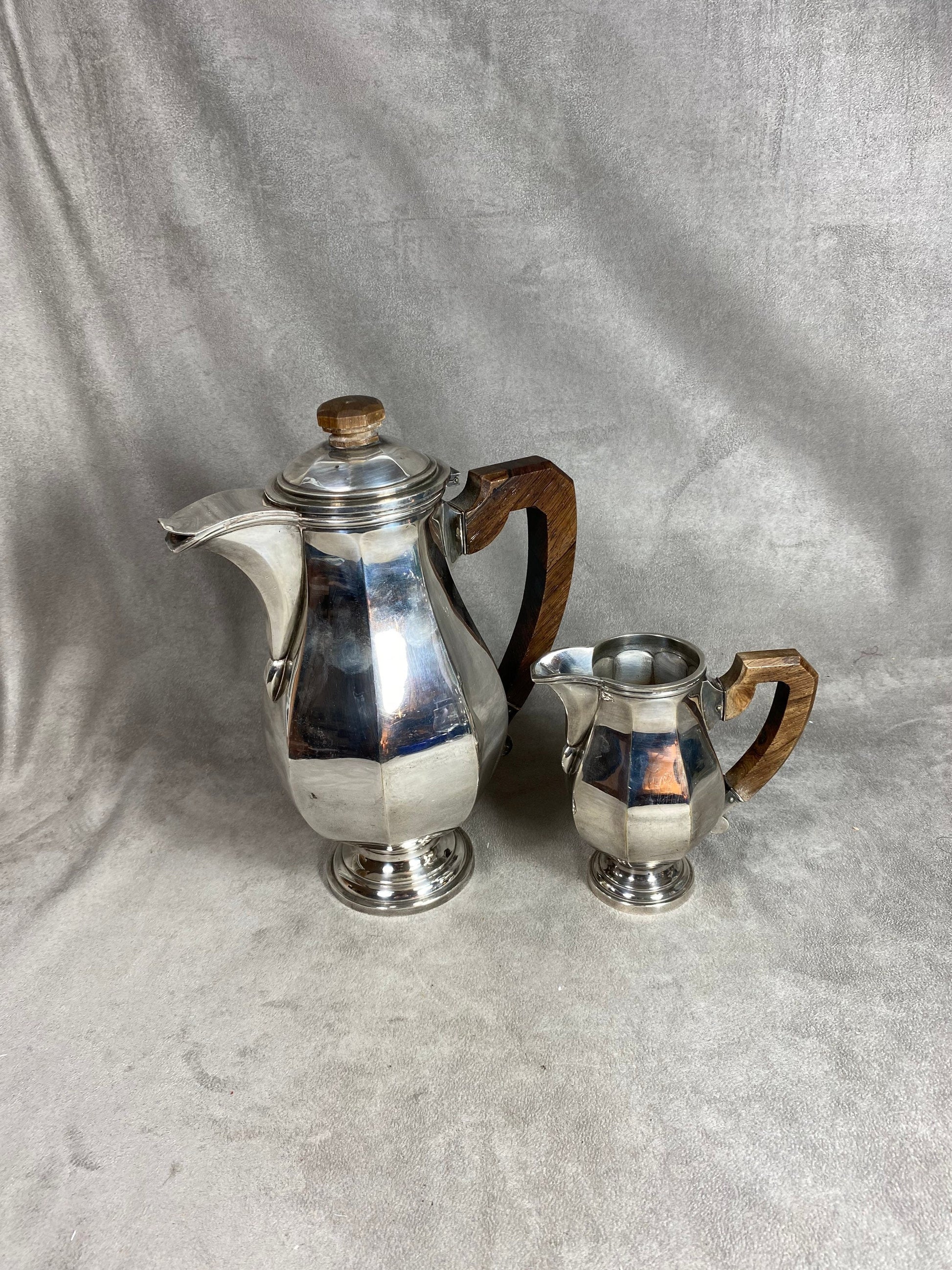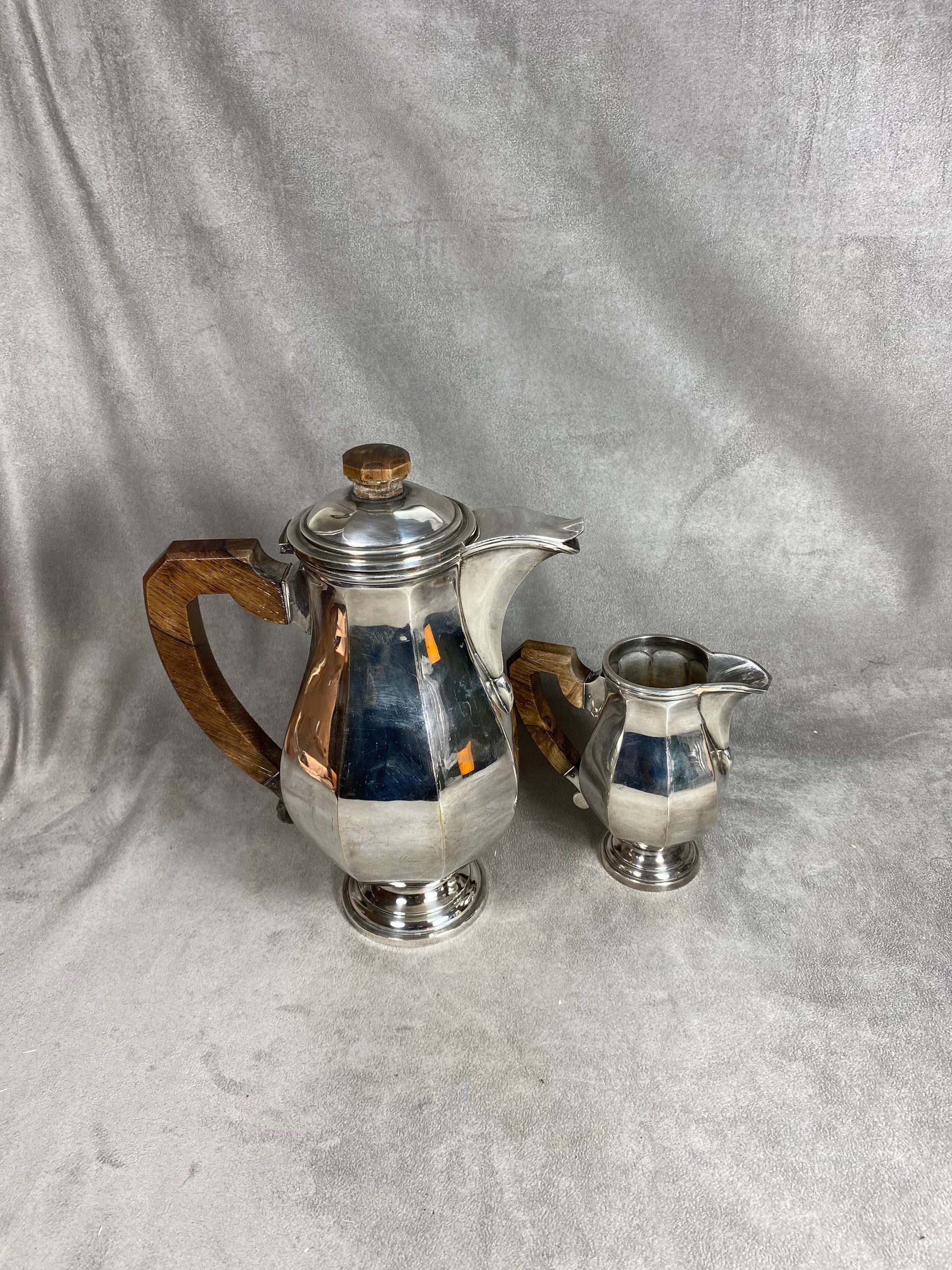 Set of a vintage silver-plated coffee pot and milk jug Made in France 1930