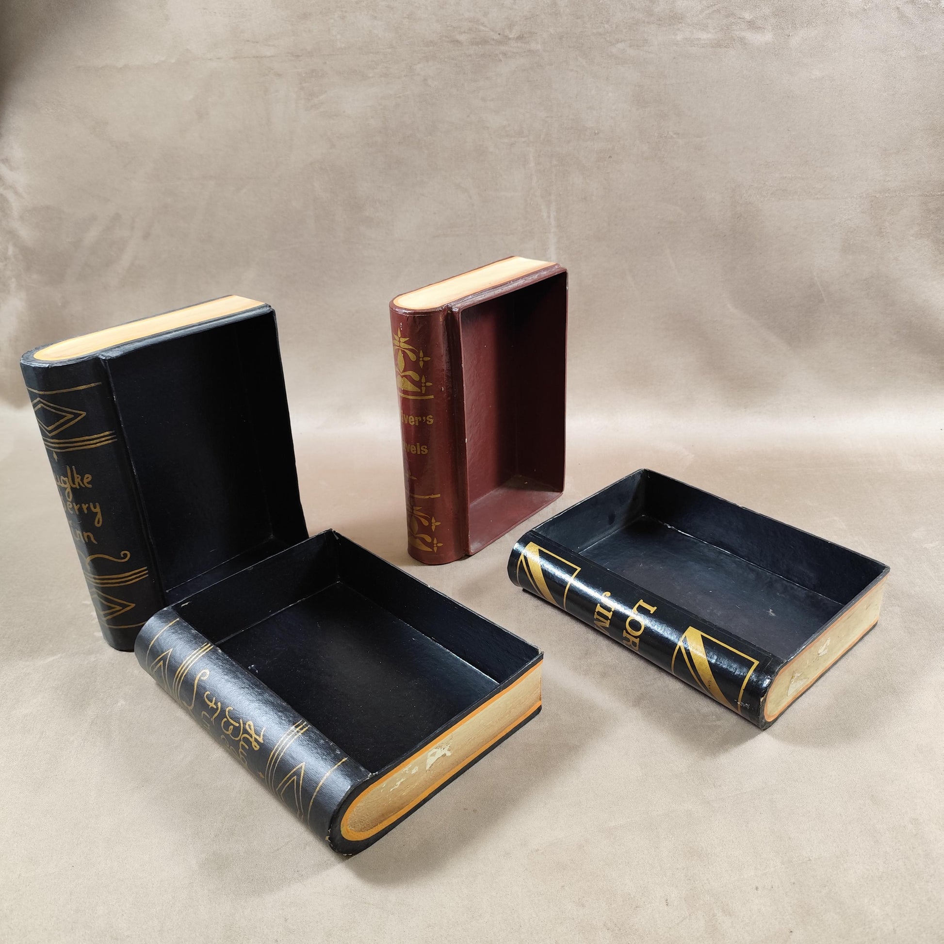 Lot de 2 boites en forme de livres anciens en carton Made in France Vintage 1960