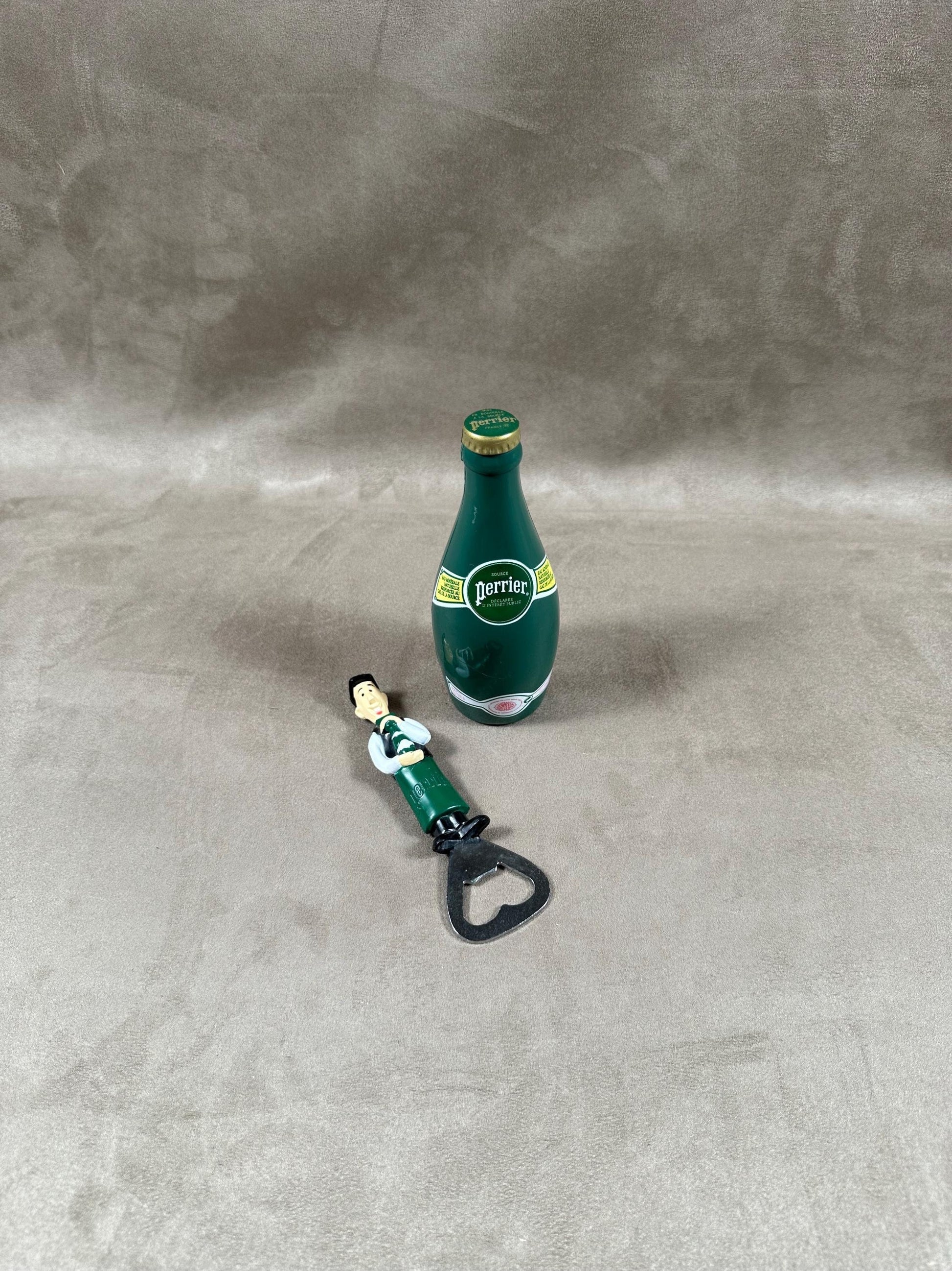 Set of 2 Perrier plastic bottle openers with bottle and waiter decoration Made in France 1980s