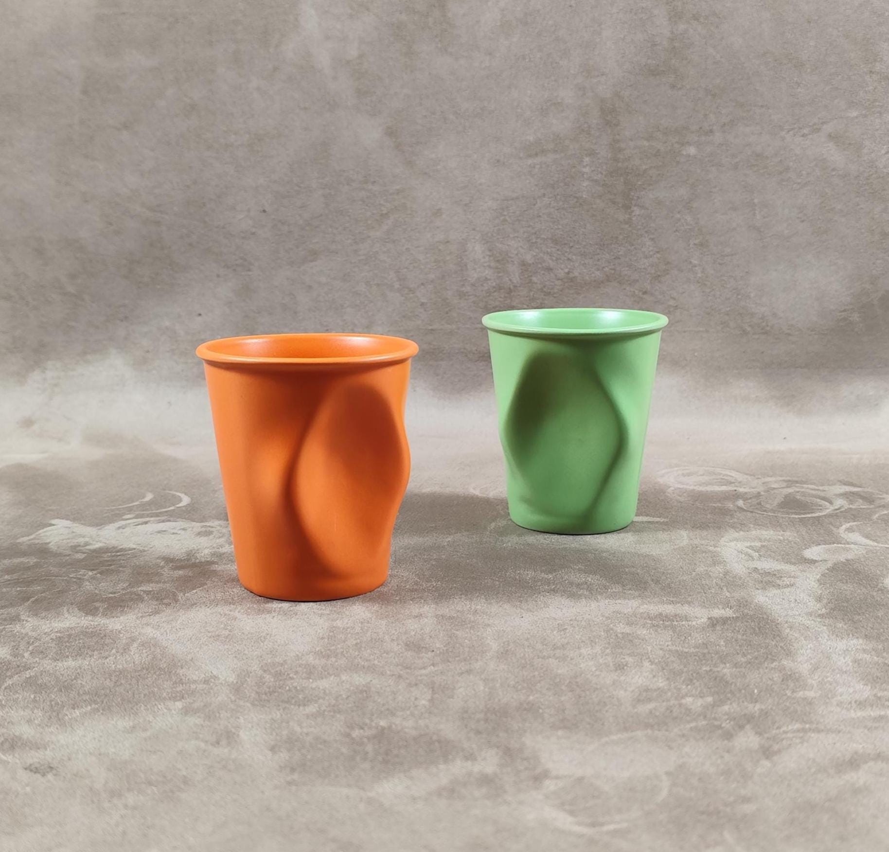 Lot de 2 grand gobelet Froissé REVOL en céramique, Made in France, Vintage 2000