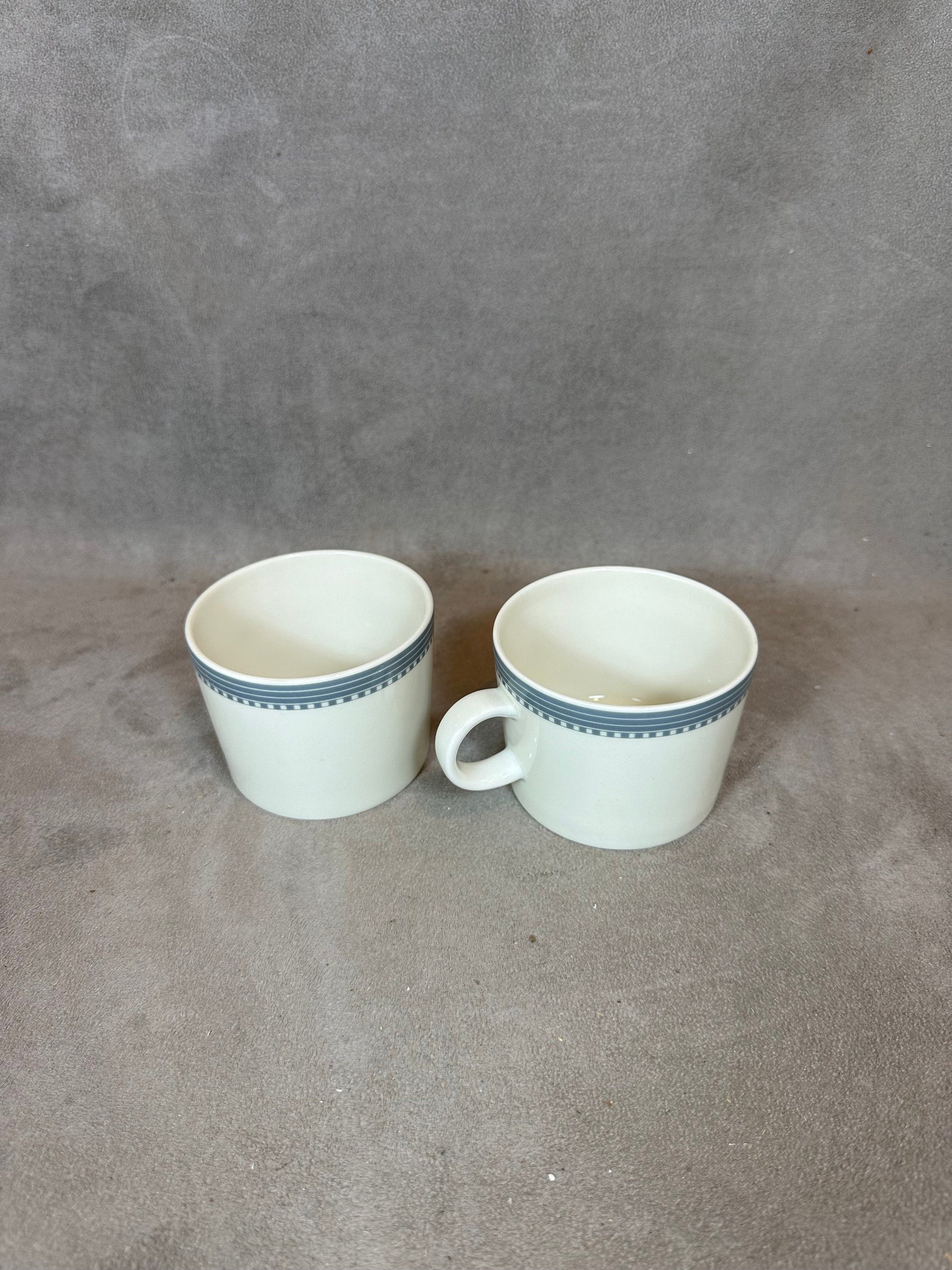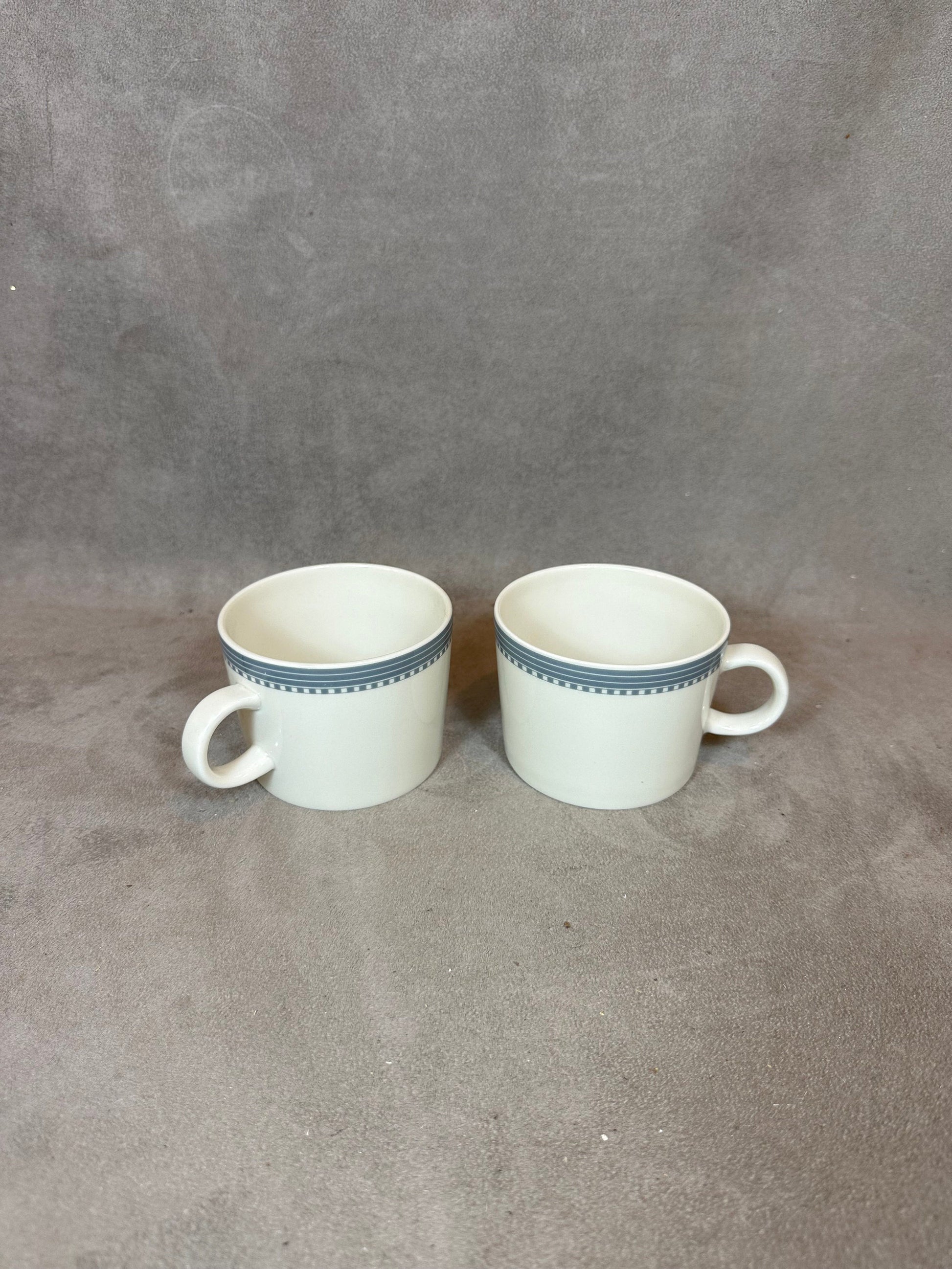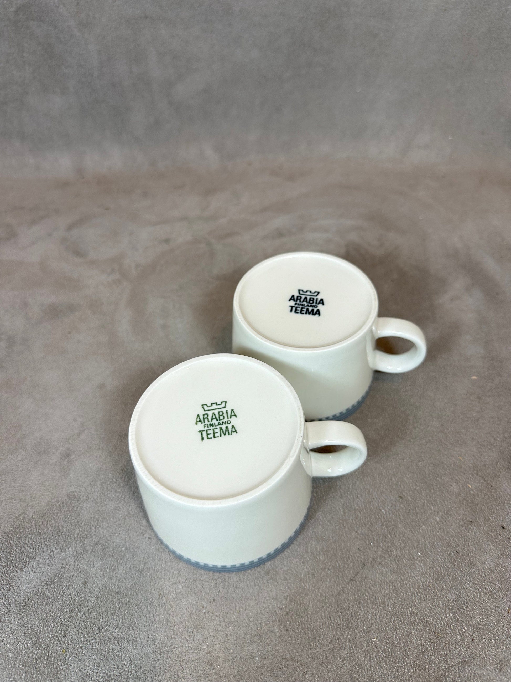 Set of 2 Arabia Finland TEEMA white and blue vintage ceramic mugs