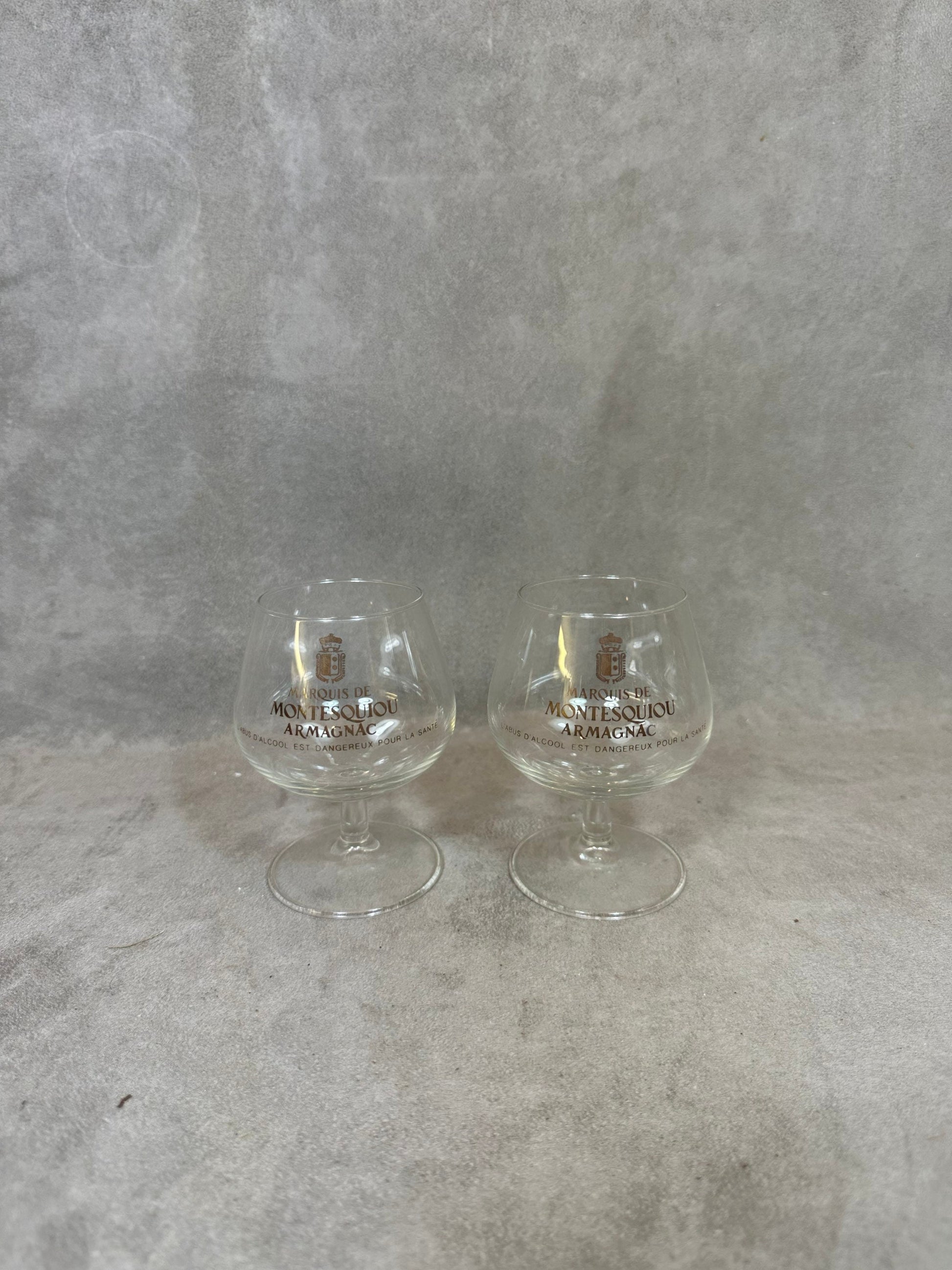 Set of 2 Cognac Glasses, Marquis de Montesquiou Armagnac, Made in France, Vintage 1980