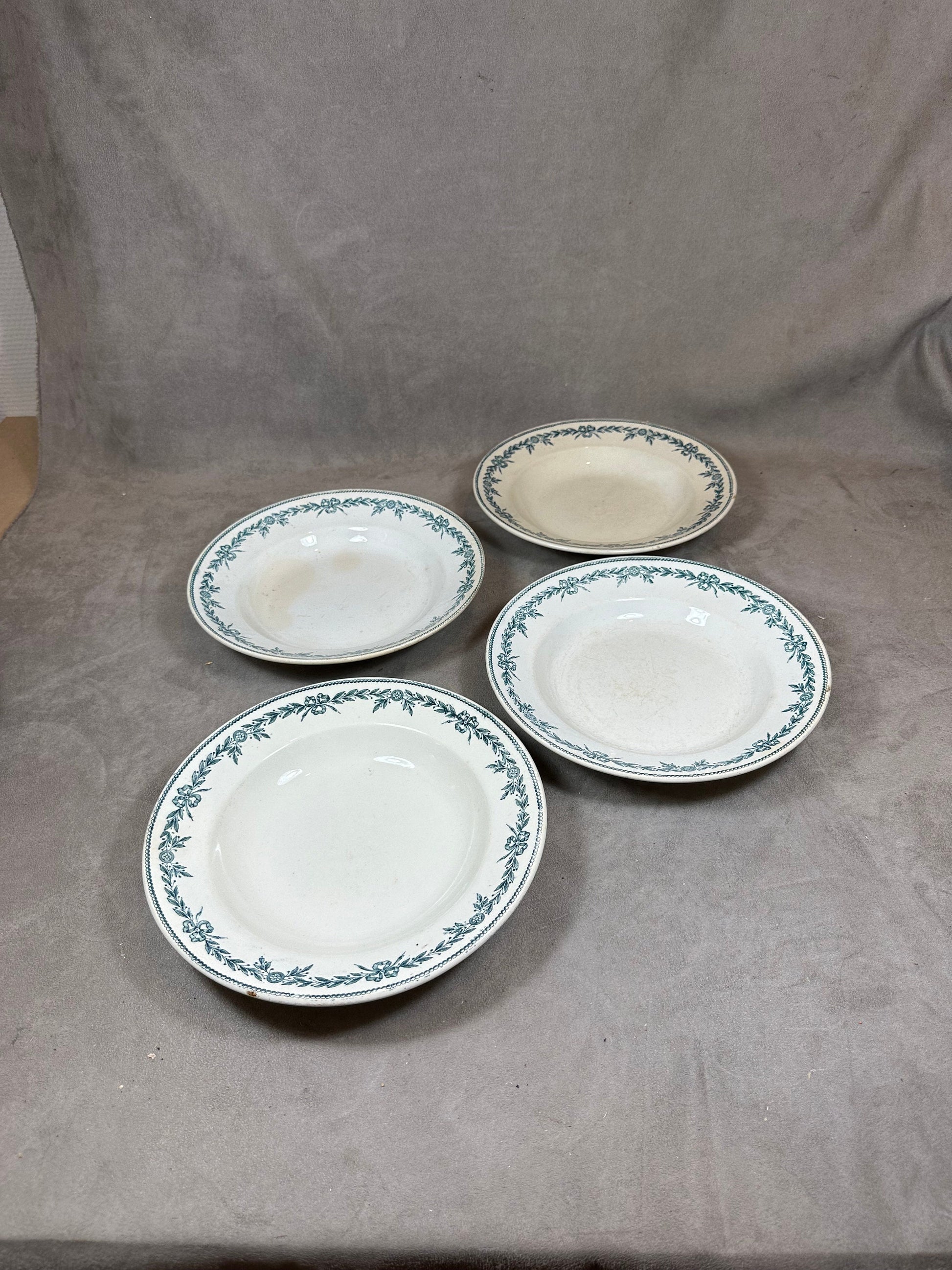 Lot de 4 assiettes anciennes creuses Moulins de Loups ligne Lauriers vintage Made in France 1930