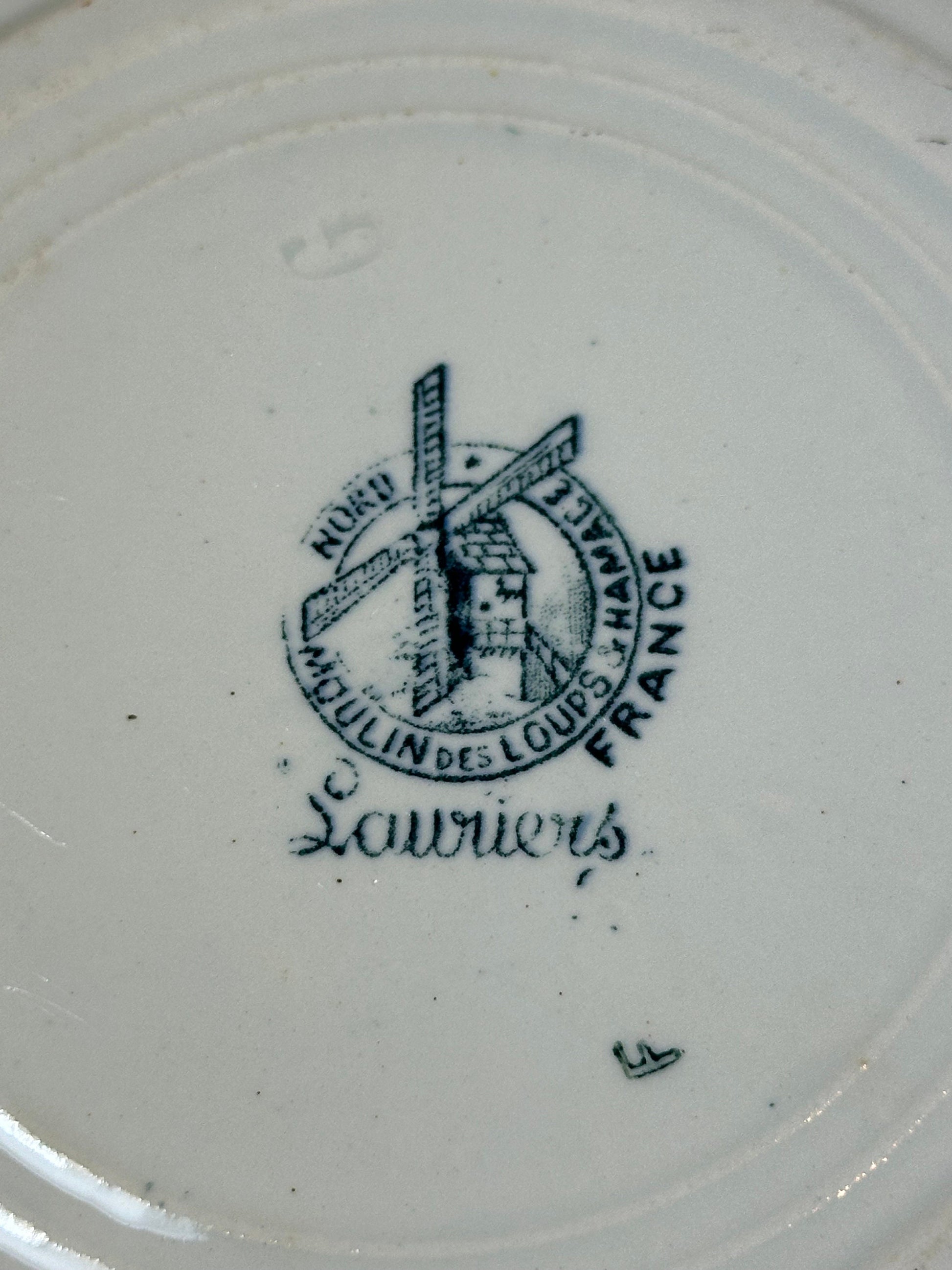 Lot de 4 assiettes anciennes creuses Moulins de loups ligne Lauriers vintage Made in France 1930