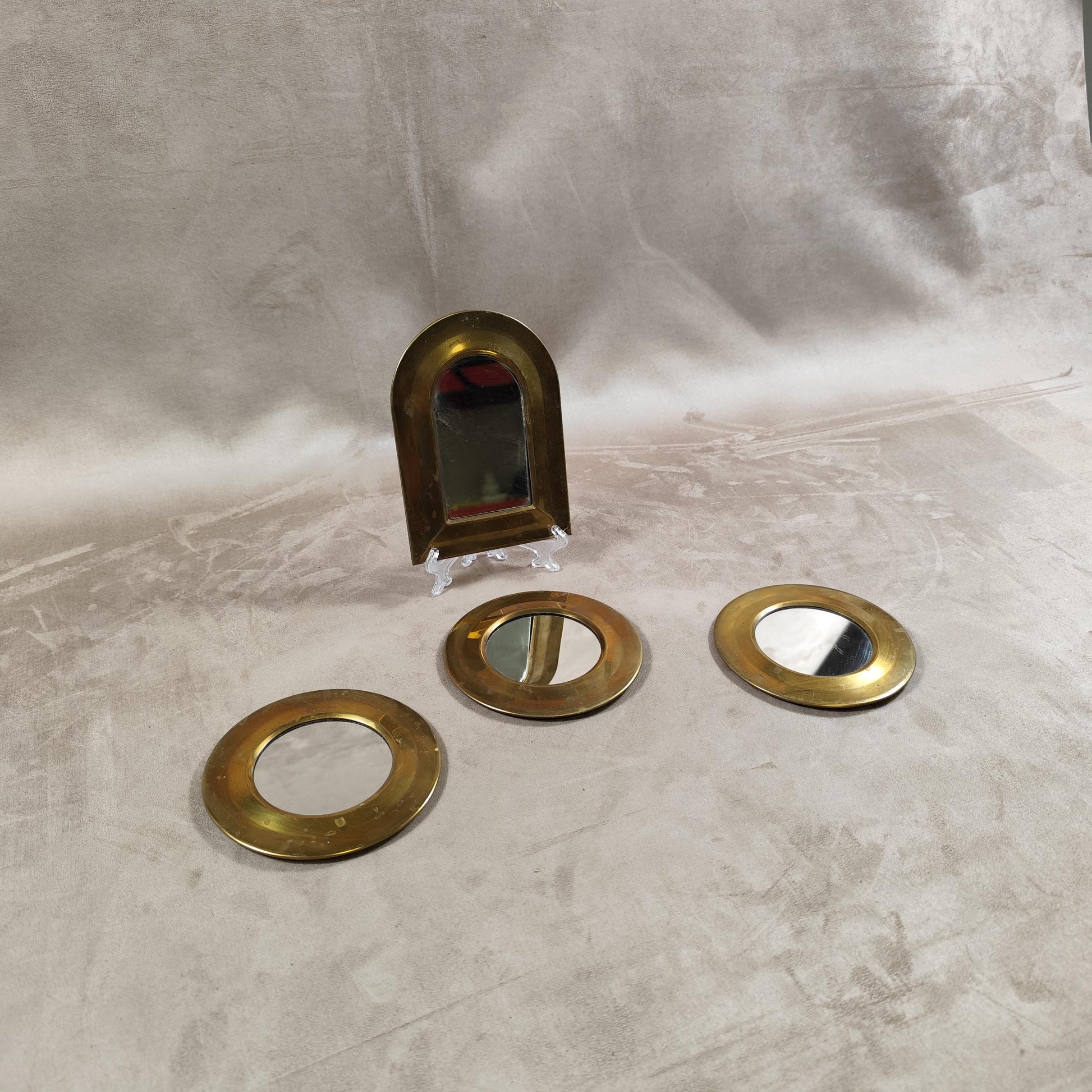 Lot de 4 miroirs en laiton Made in France Vintage 1970