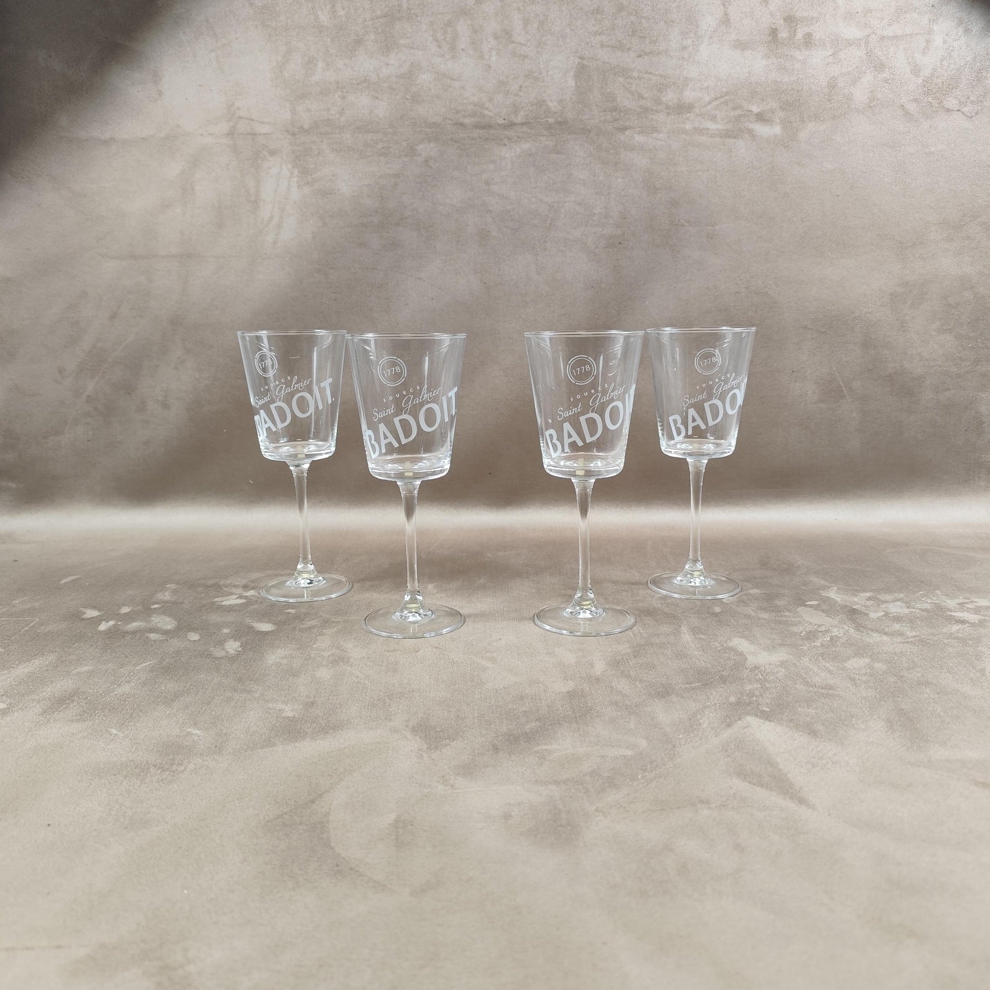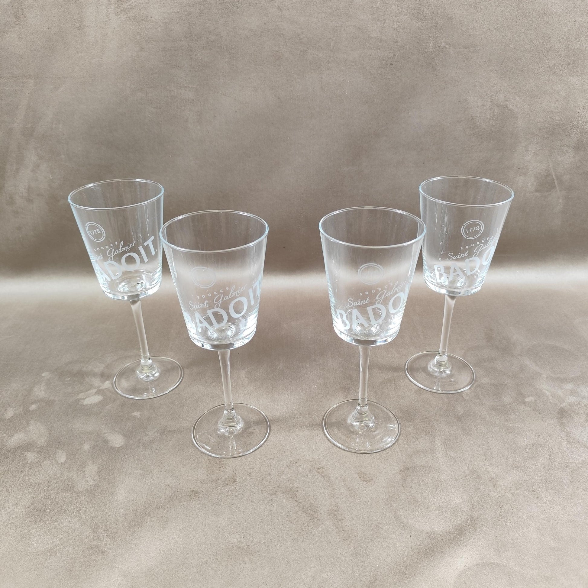 Lot de 4 verres Badoit eau gazeuse Made in France Vintage 1980