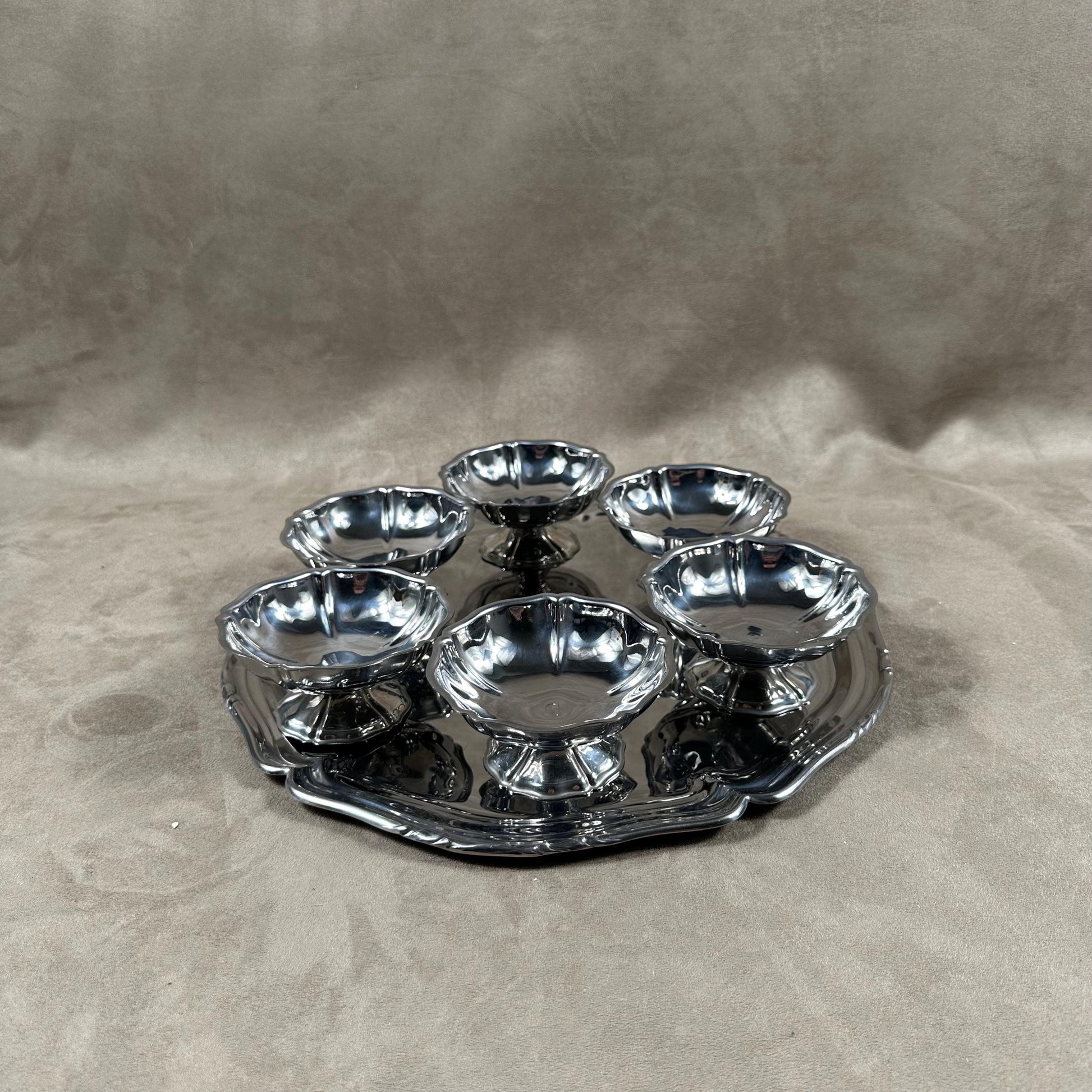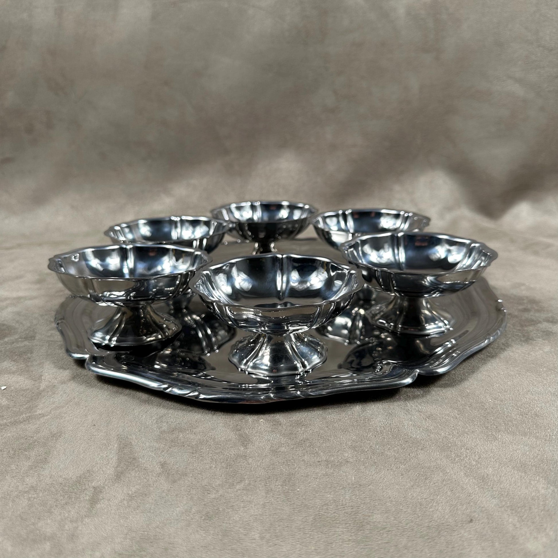 Set of 6 ice cream cups with 1 Guy Degrenne tray in 18/10 vintage stainless steel Made in France