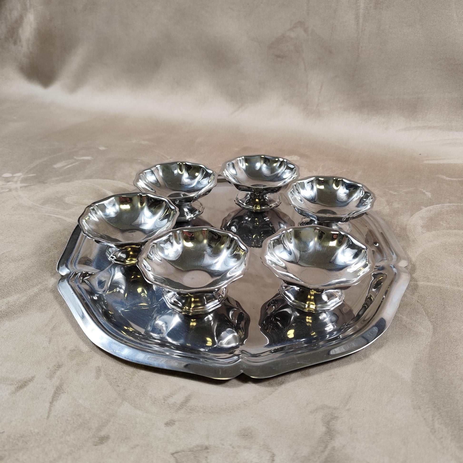 Lot de 6 coupes à glace et plateau en inox 18/10 Made in France Vintage 1980