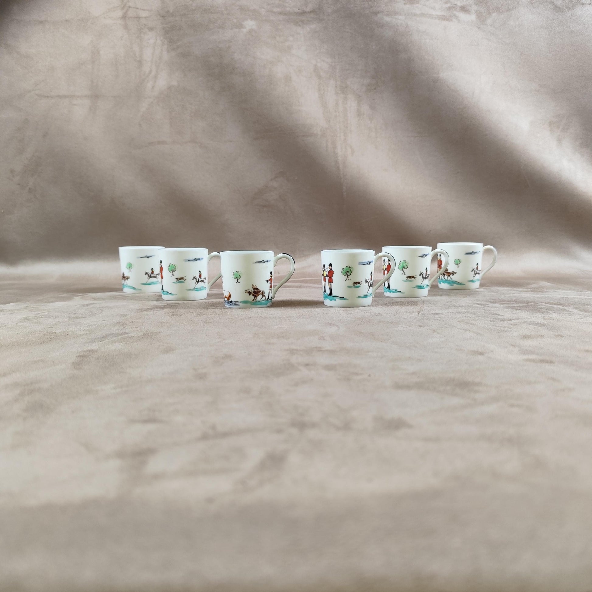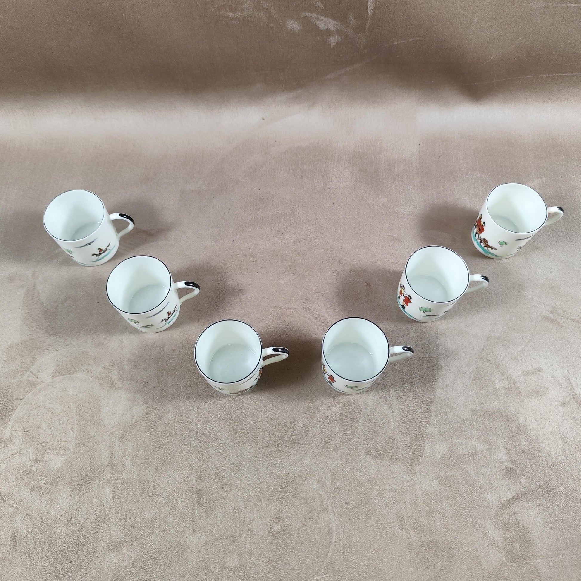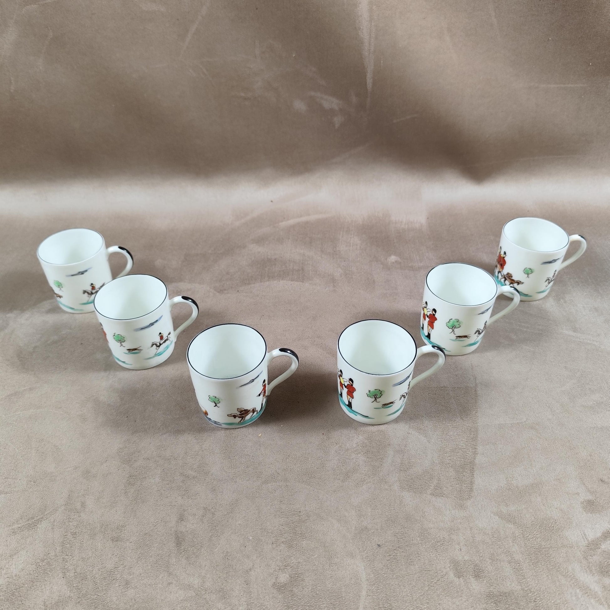 Lot de 6 tasses en porcelaine de Limoges à décor de scene de chasse peintes à la main à Chantilly
