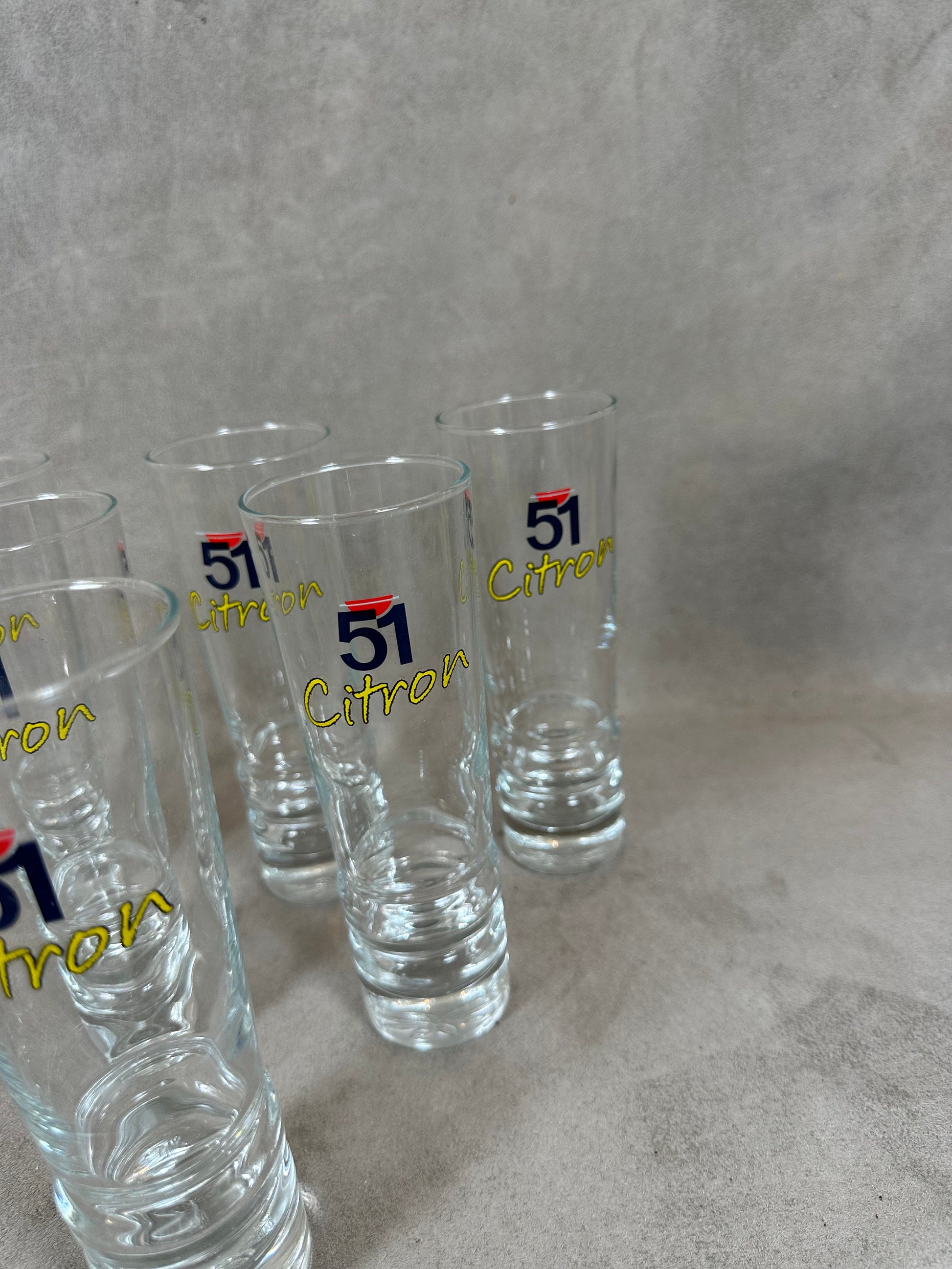 Set of 6 Pastis glasses Pastis 51 Citron in vintage retro glass Made in France 1980s