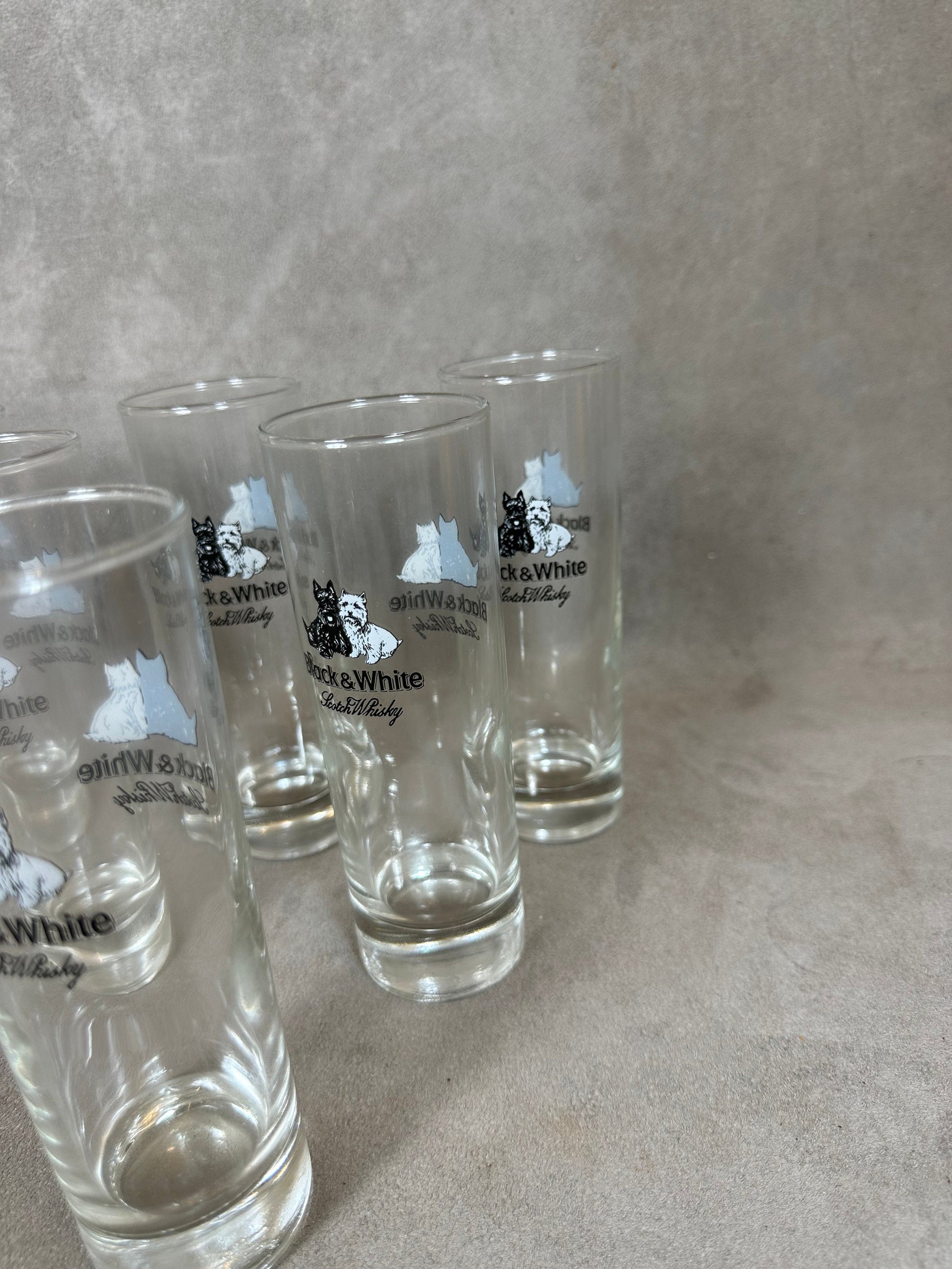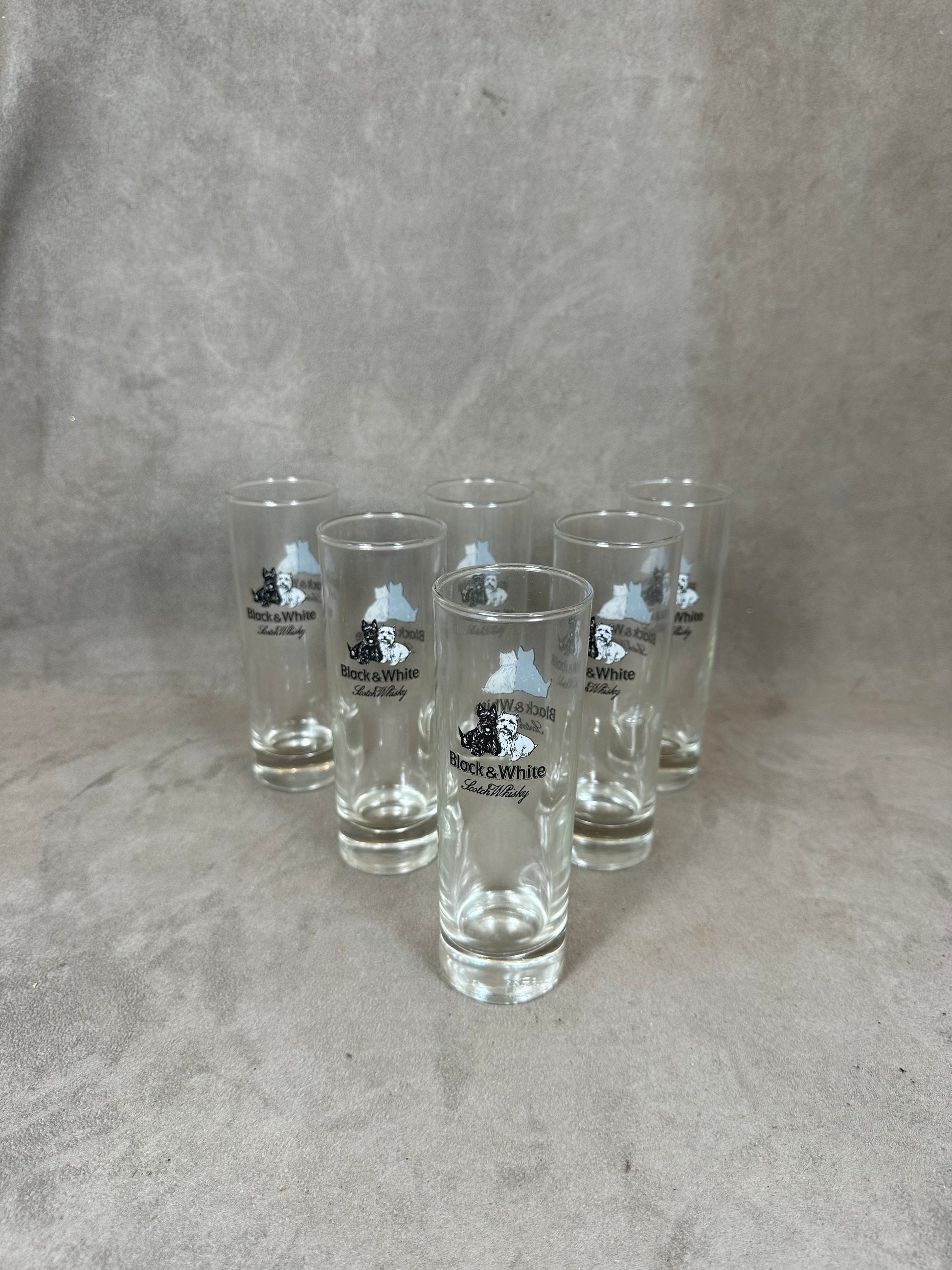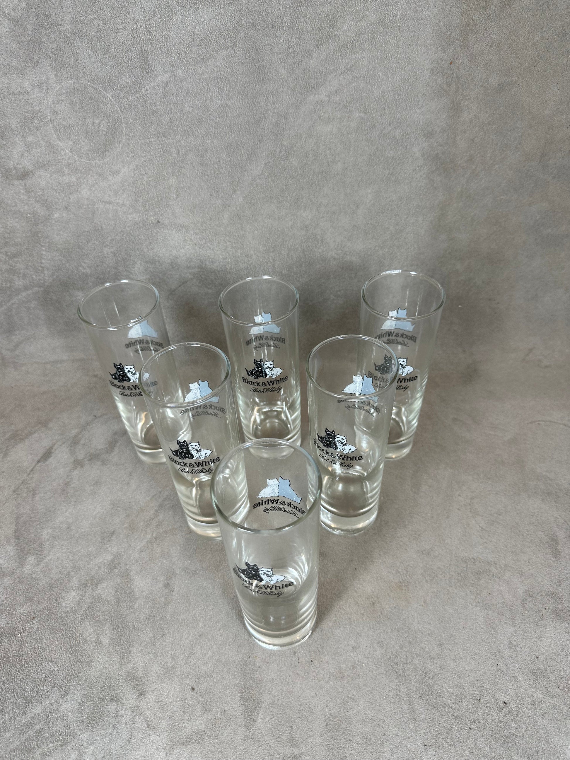 Set of 6 Black&White Whisky vintage glass glasses Made in France 1990s
