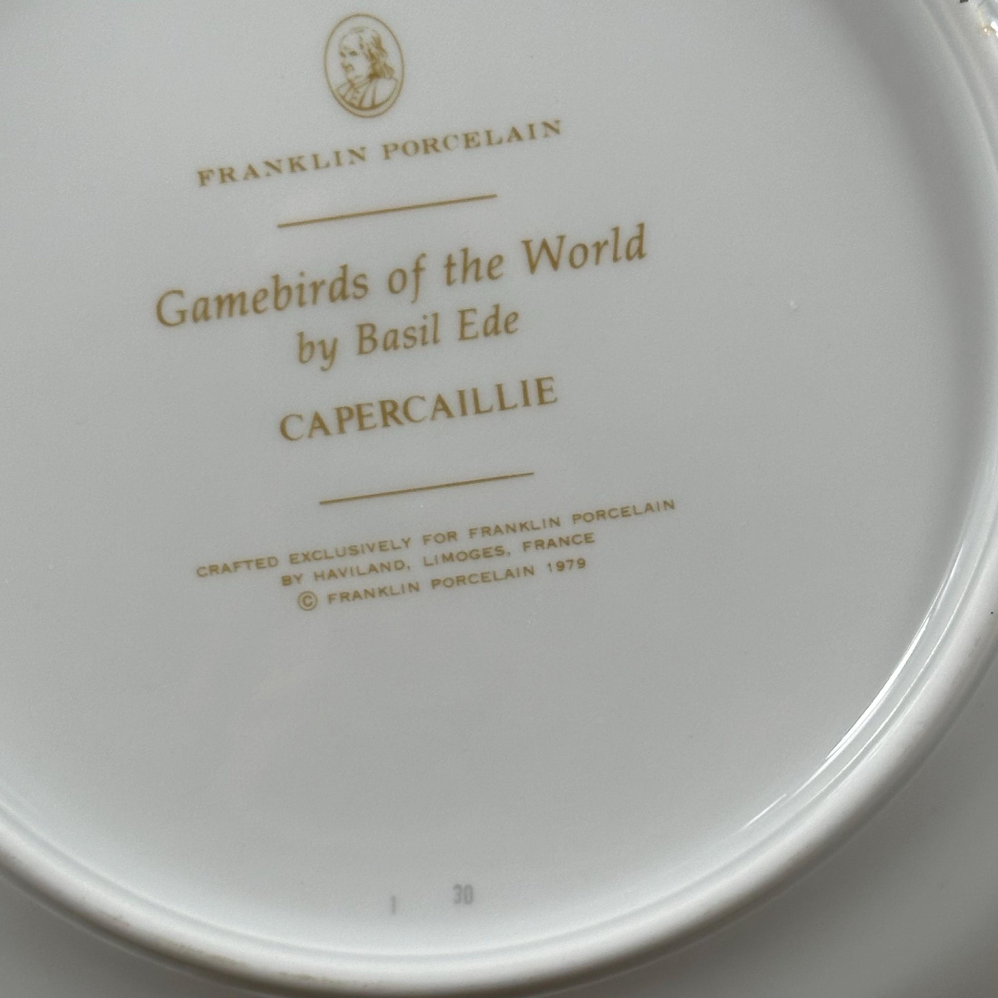 Beautiful decorative plate "Gamebird of the World" by Basil Ede made by Haviland in Limoges porcelain for Franklin Porcelain 1979