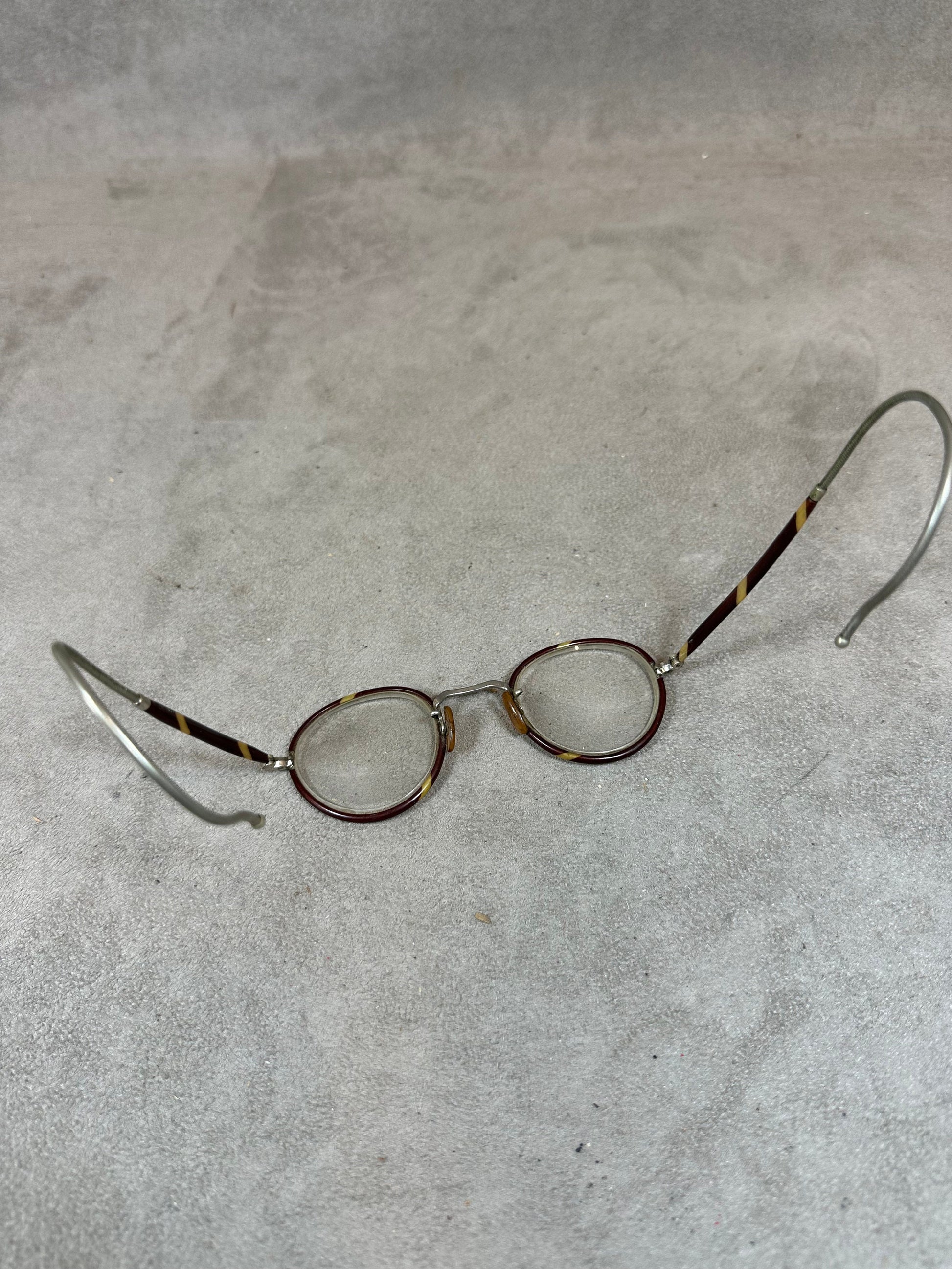Paire de petites lunettes de lecture vintage en écaille 1900