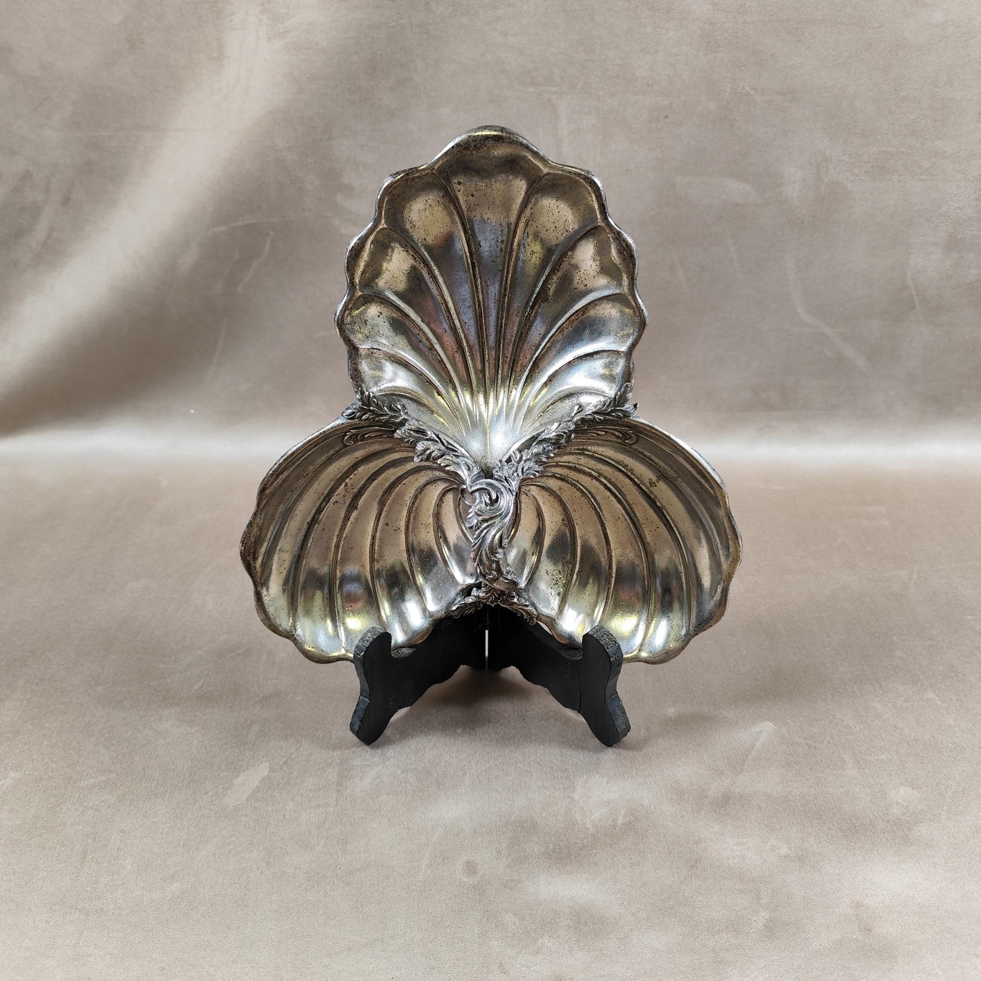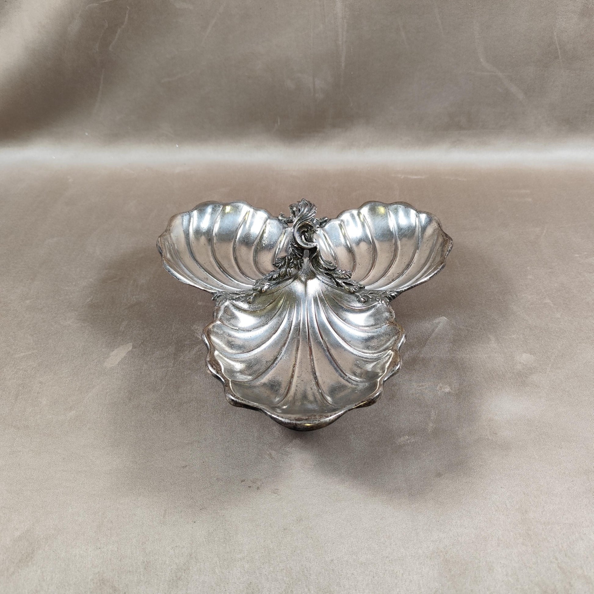 Plat apéritif en forme de coquillage en métal Made in France Vintage 1970