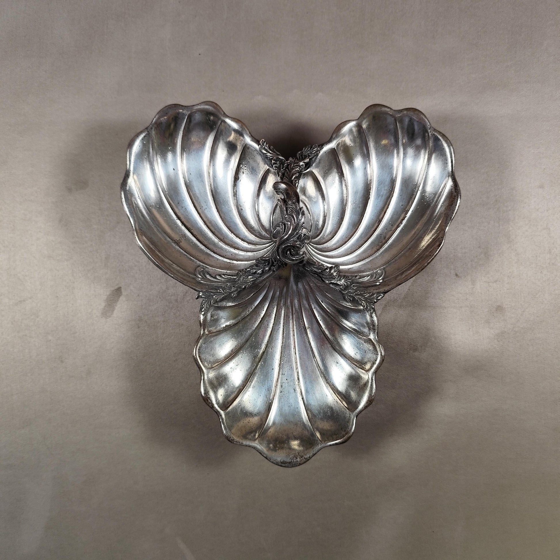 Plat en forme de coquillage en métal Made in France Vintage 1970