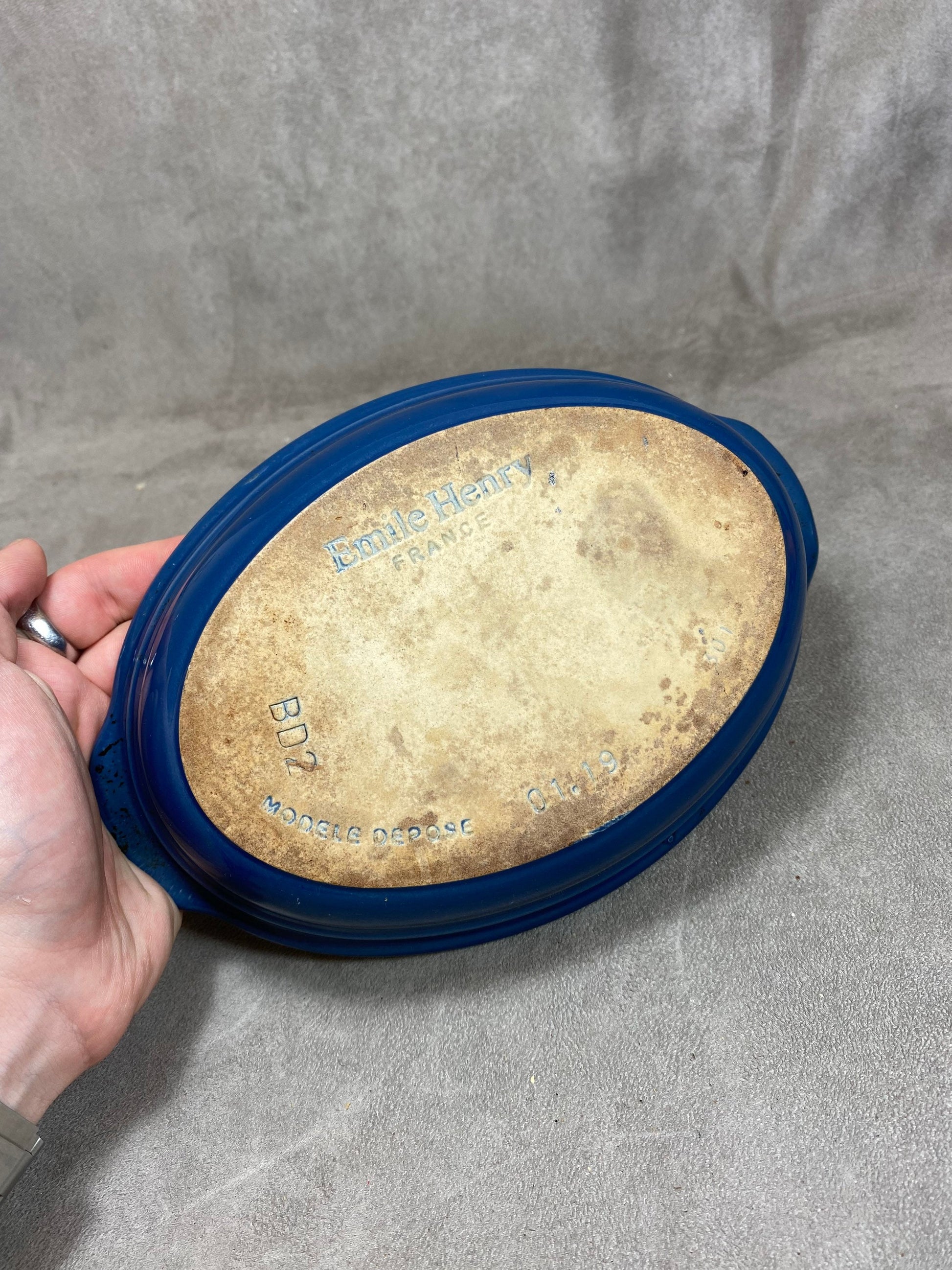 Vintage Emile Henry Blue Ceramic Dish Made in France 1980s