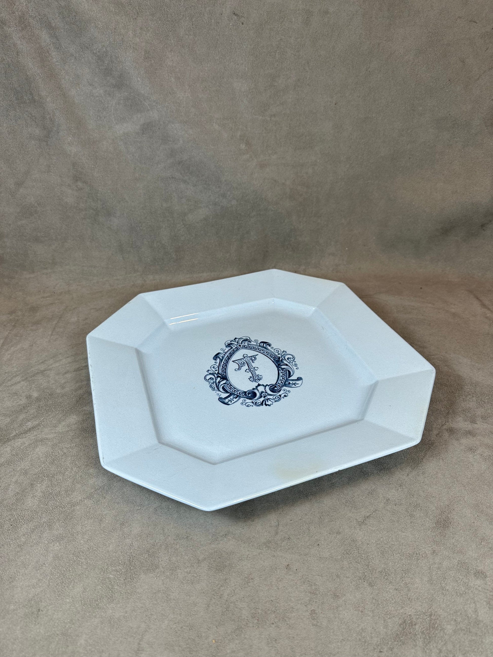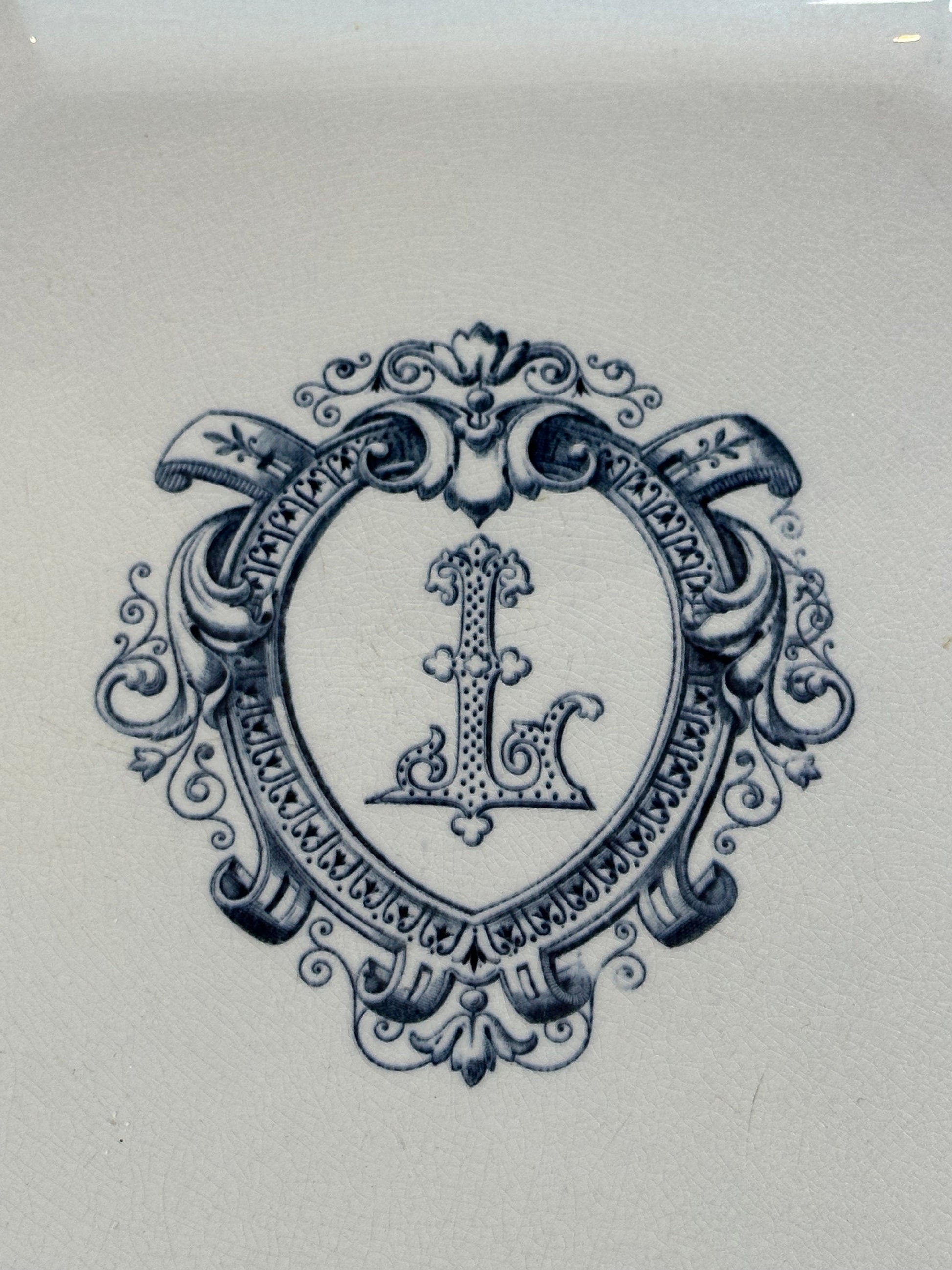 Earthenware Dish, Monogram L, by Terre de Fer, Made in France, Vintage 1970