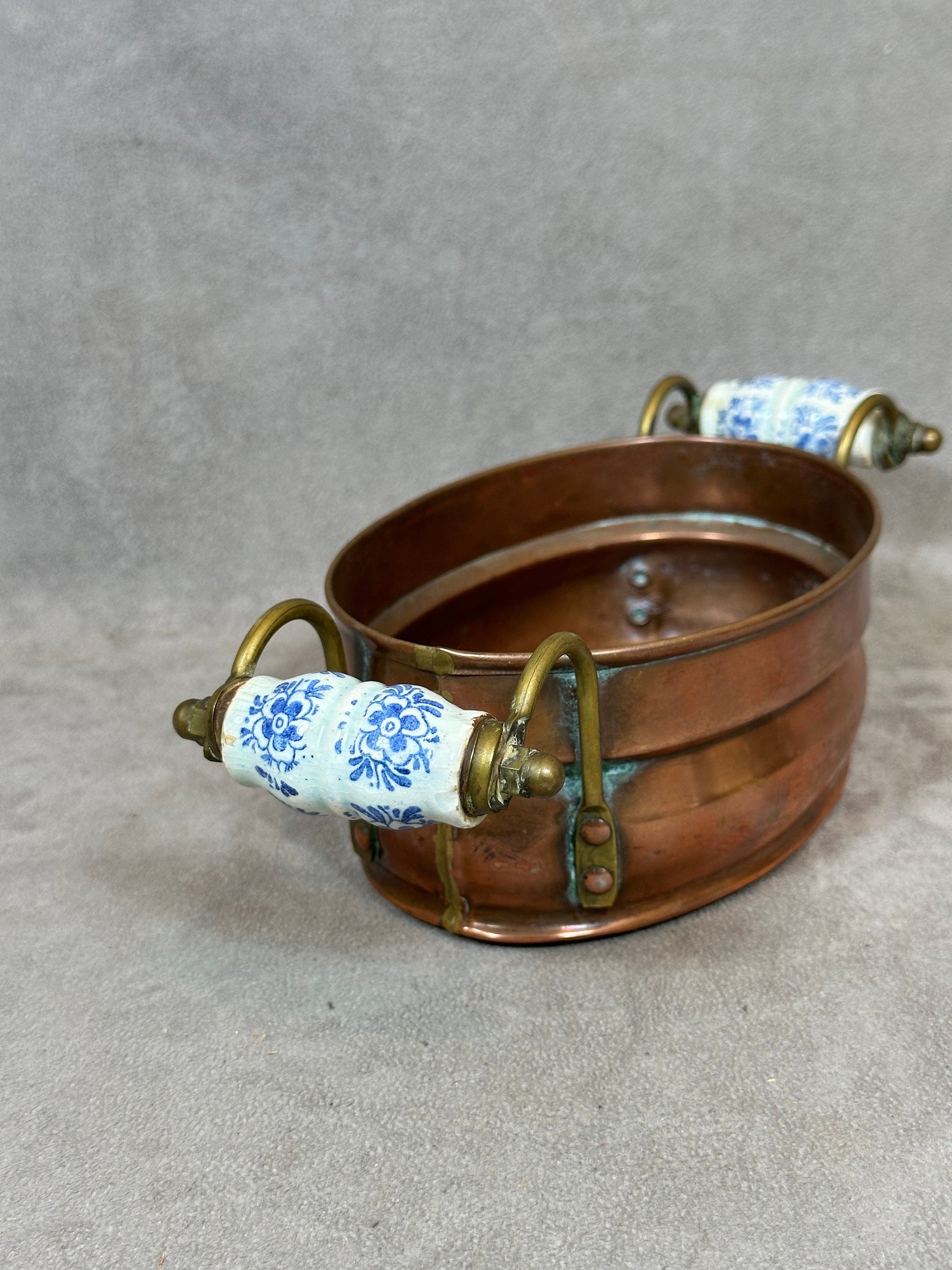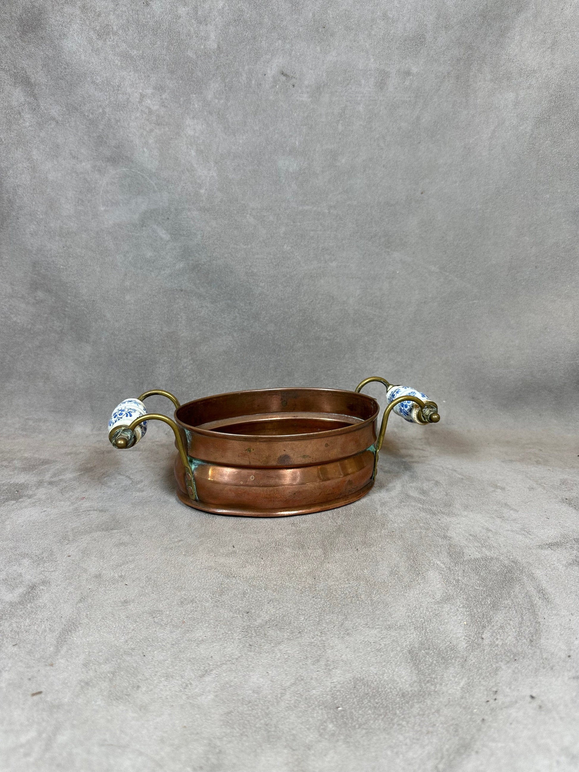Plat en Laiton poignée Céramique, Made in France, Vintage 1960