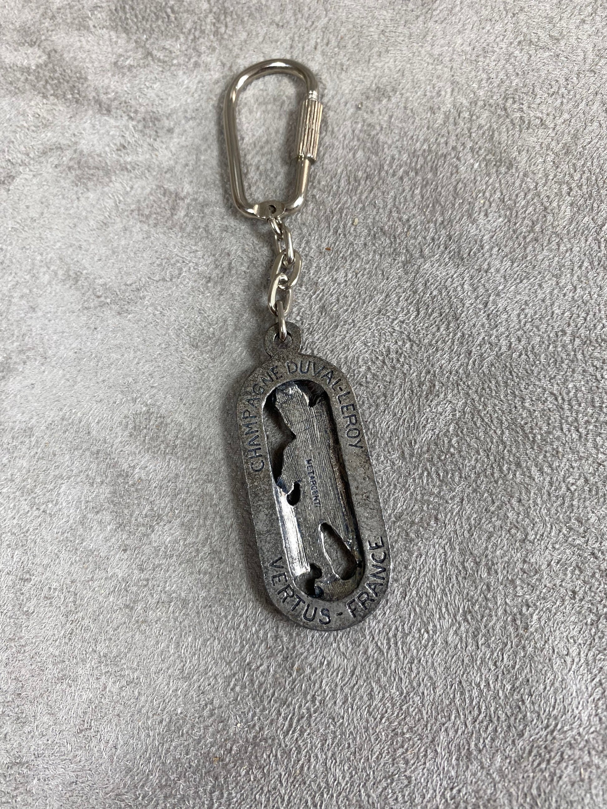 Duval-Leroy vintage metal key ring Made in France 1960s