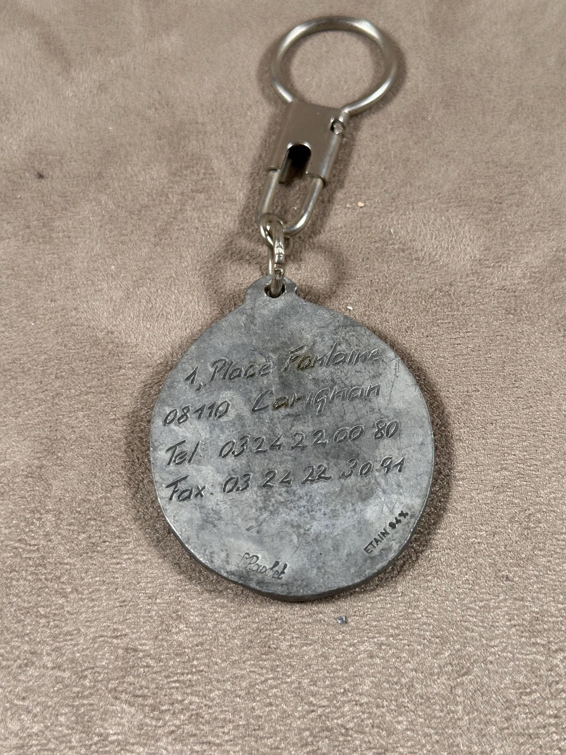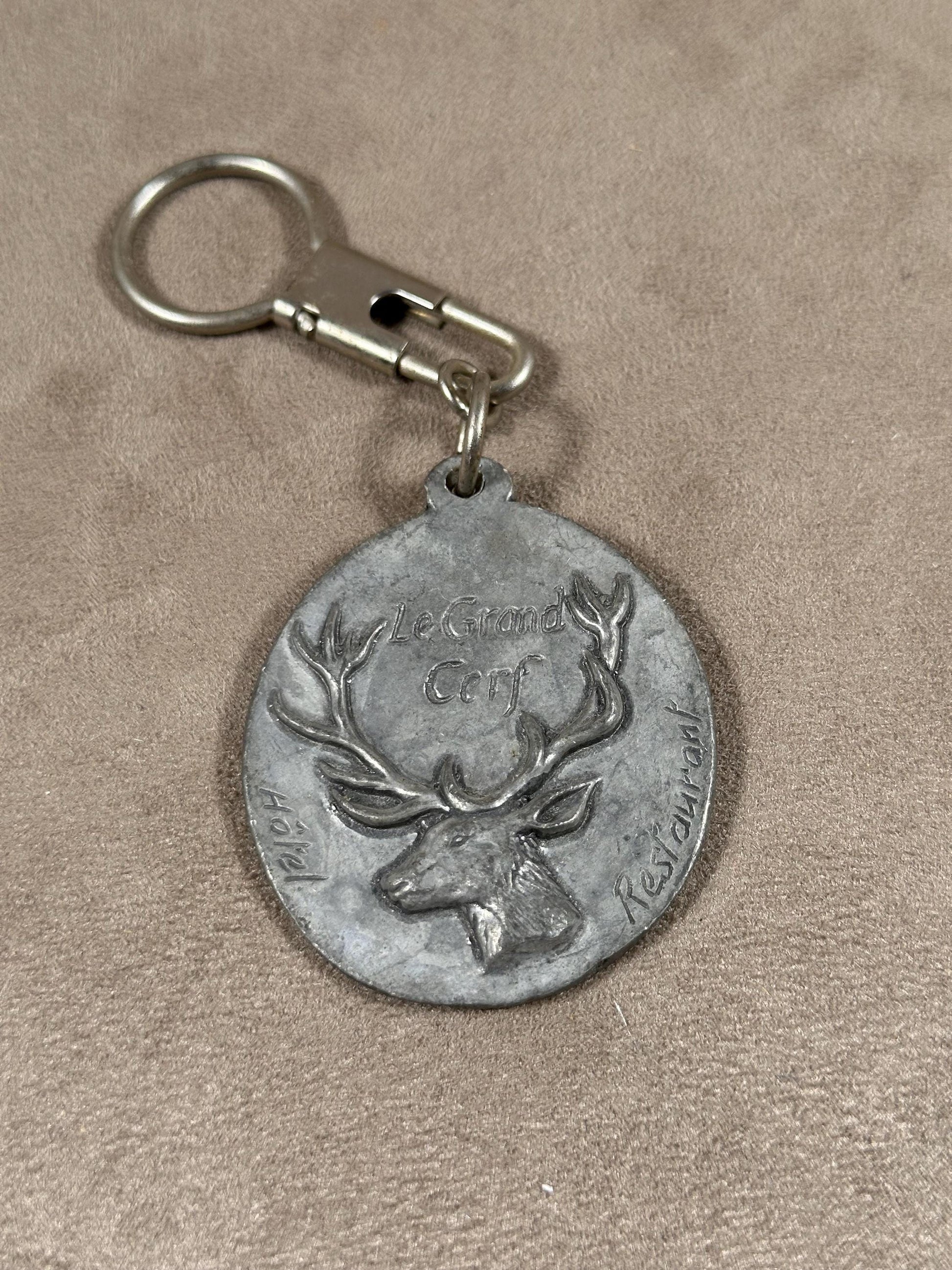 Advertising Pewter Keyring by Rouxhet, Hotel Restaurant Le Grand Cerf, Made in France, Vintage 1970