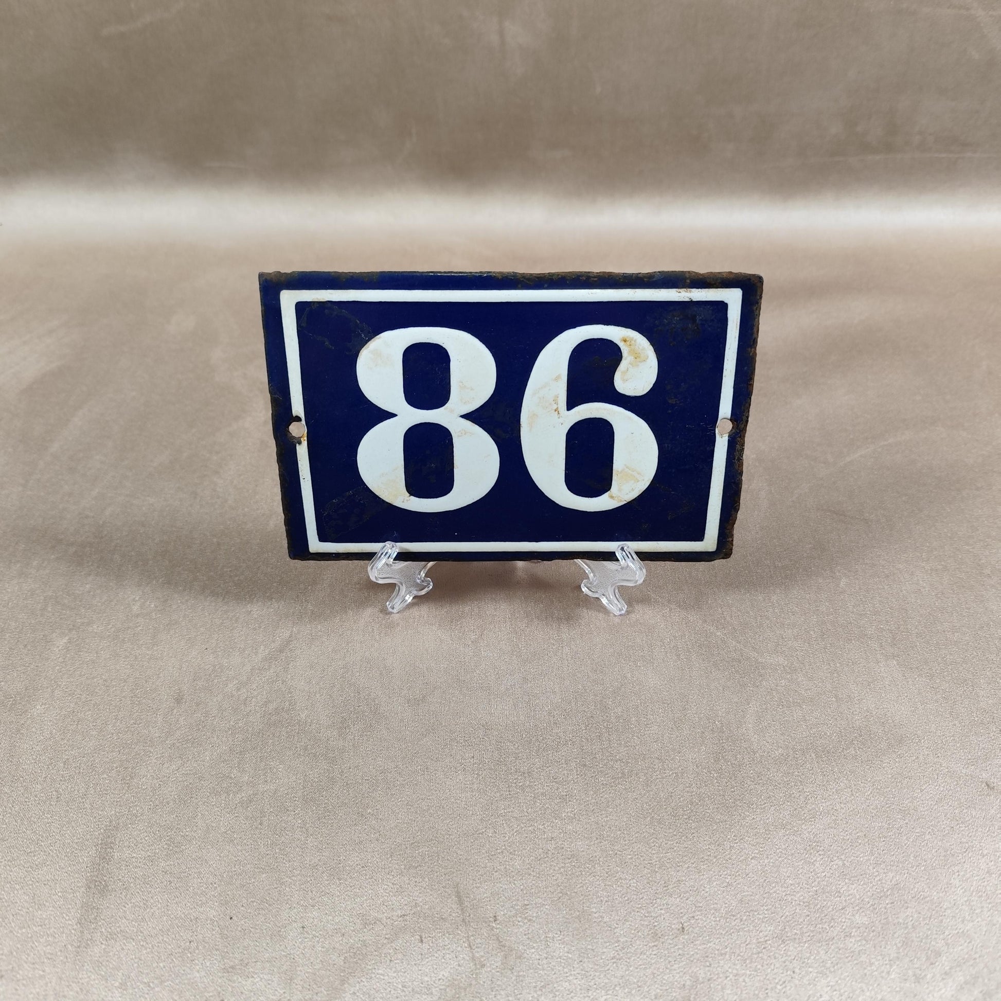 RARE Plaque de rue de ville Française Numéro 86 en tôle émaillée bleue Made in France Vintage 1900