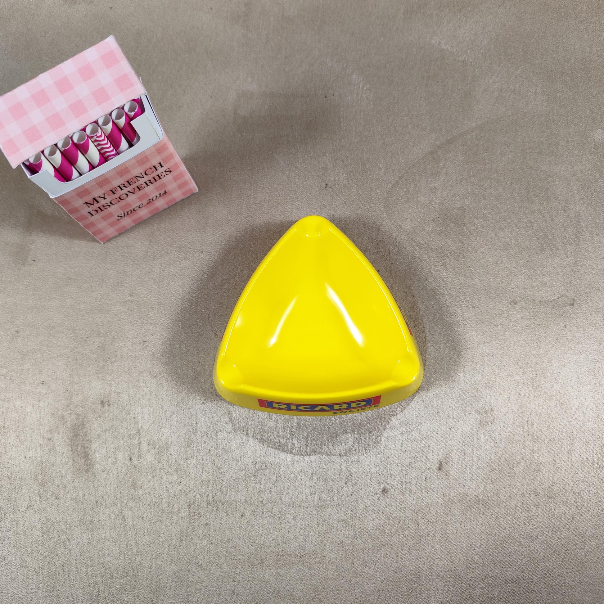 Cendrier Ricard Société jaune en plastique Objet publicitaire vintage Bar bistrot