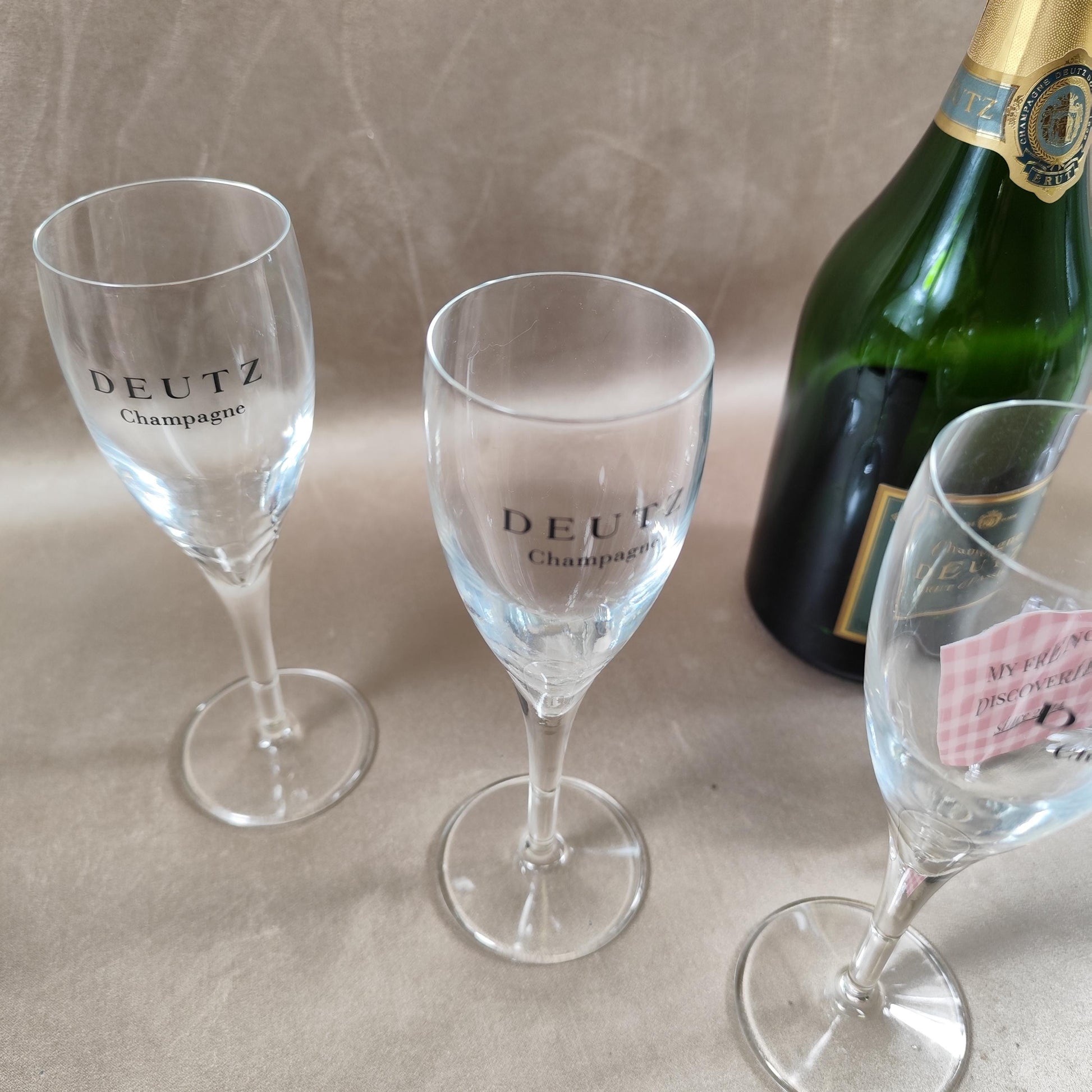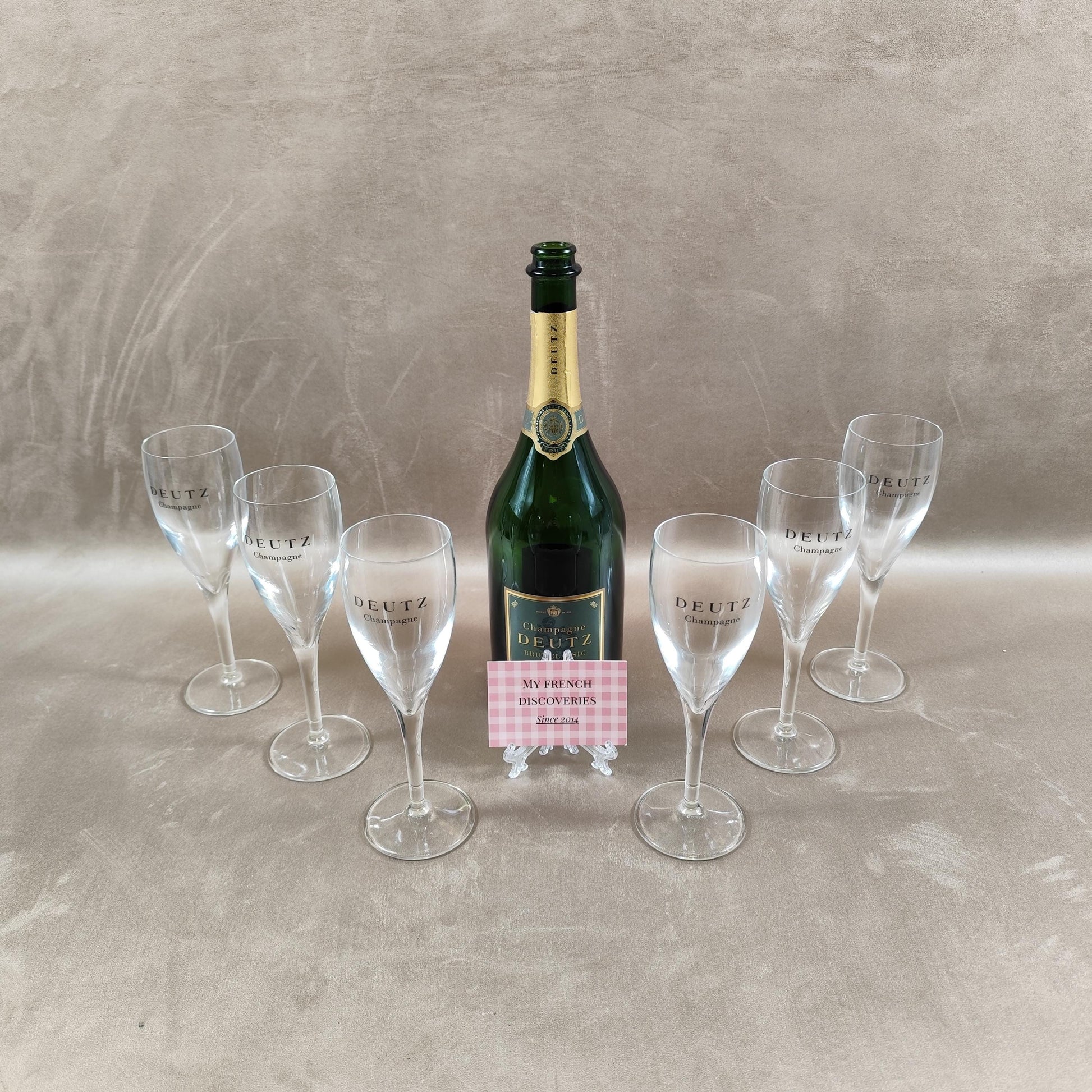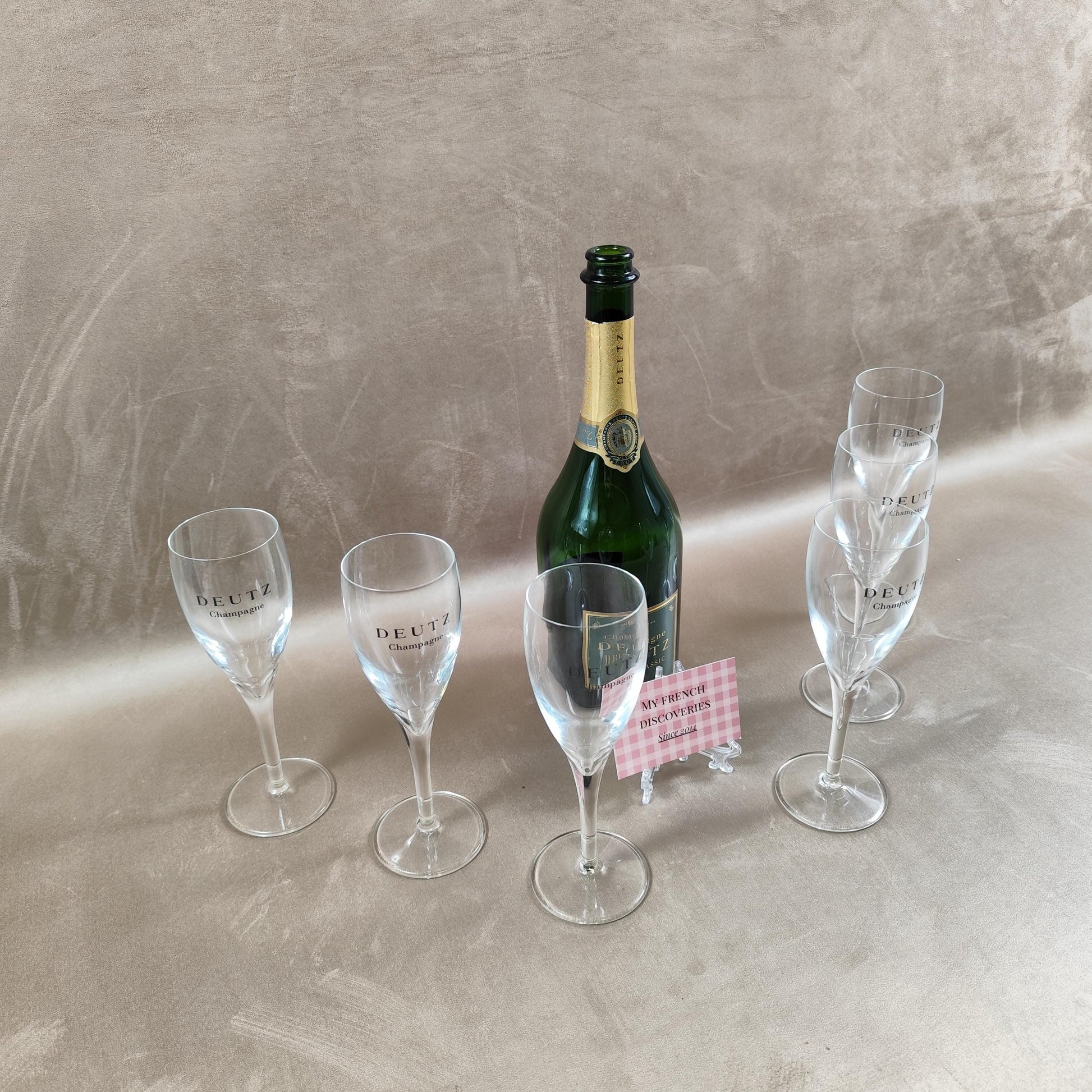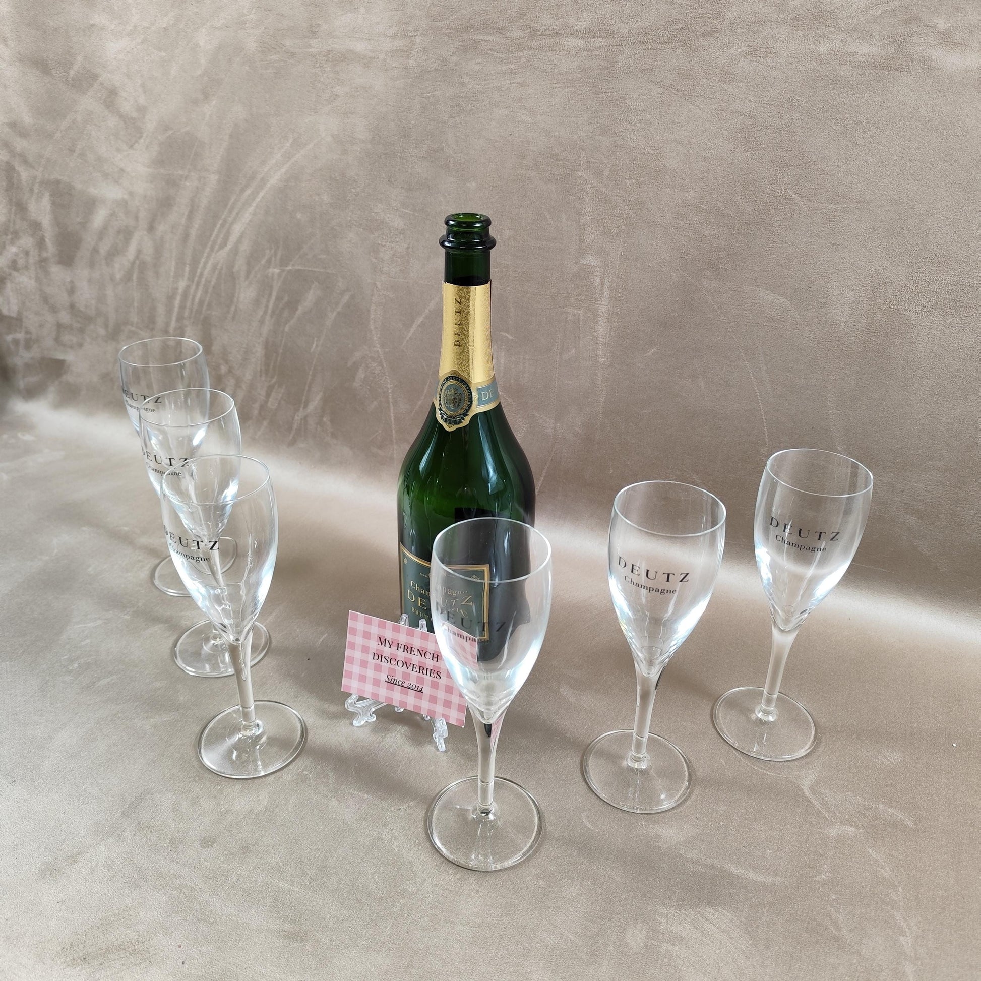 Ensemble de 6 flûtes à champagne DEUTZ Verres publicitaires maison de Champagne Barware vintage
