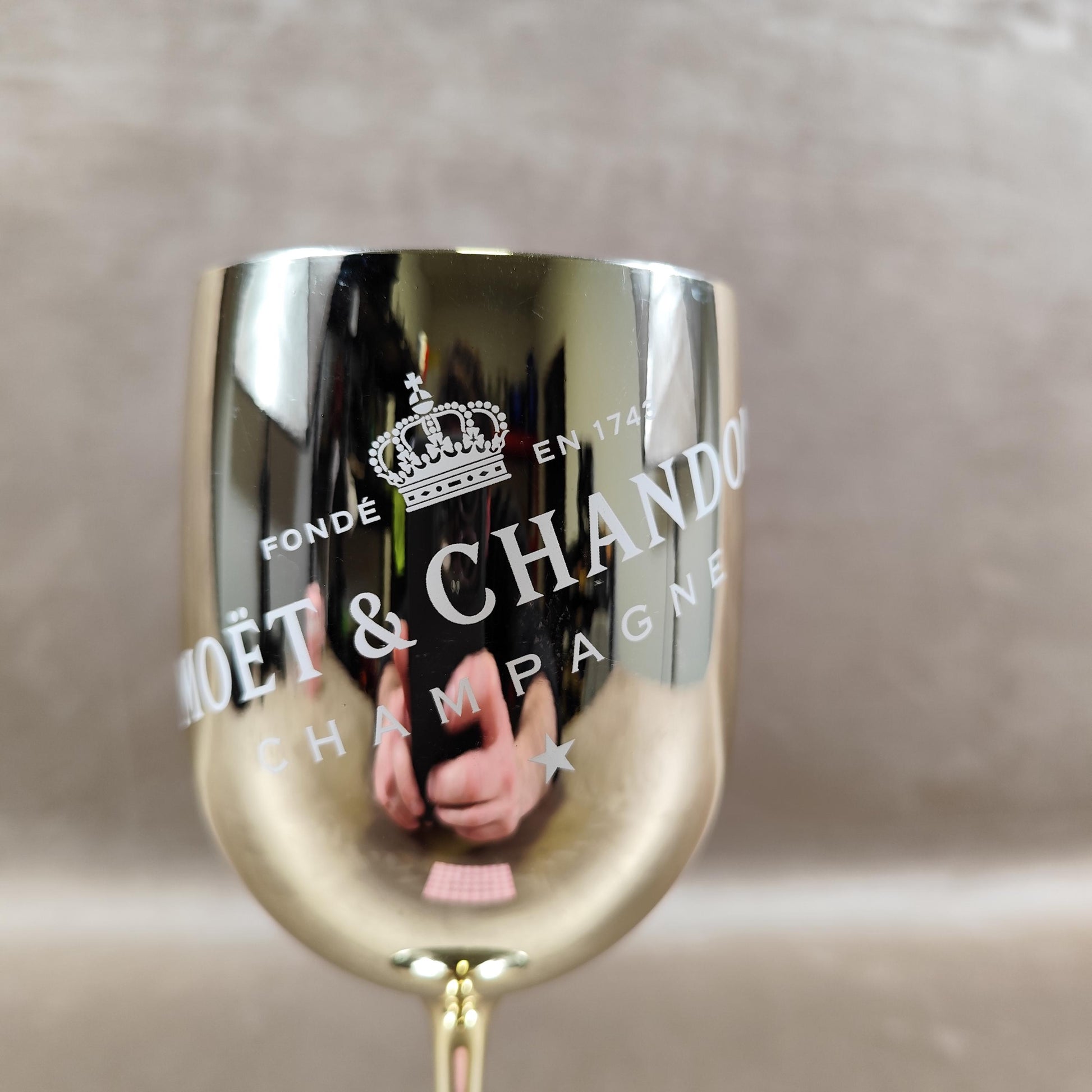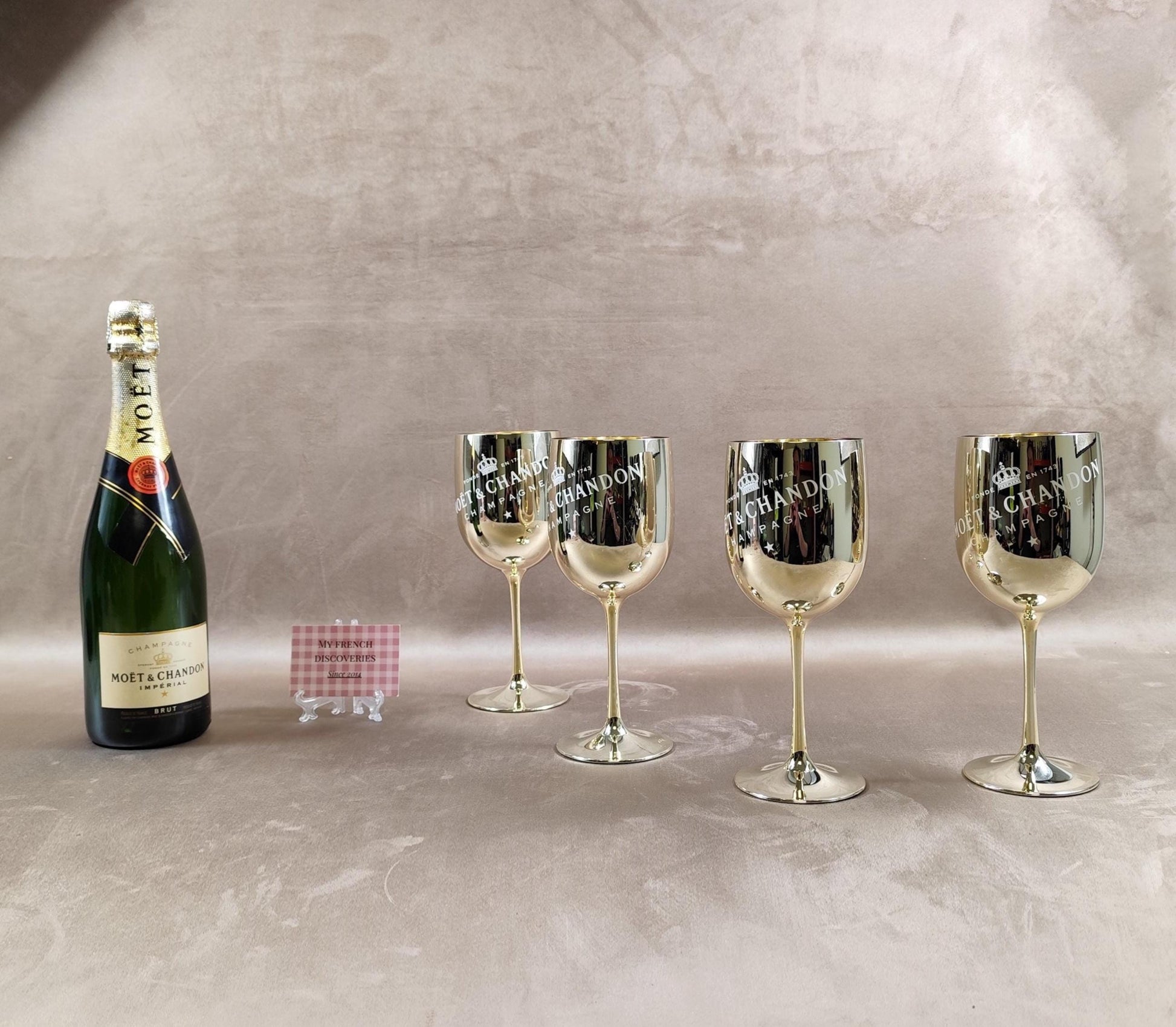 4 flûtes Moët & Chandon en plastique doré – Verres champagne promotionnels