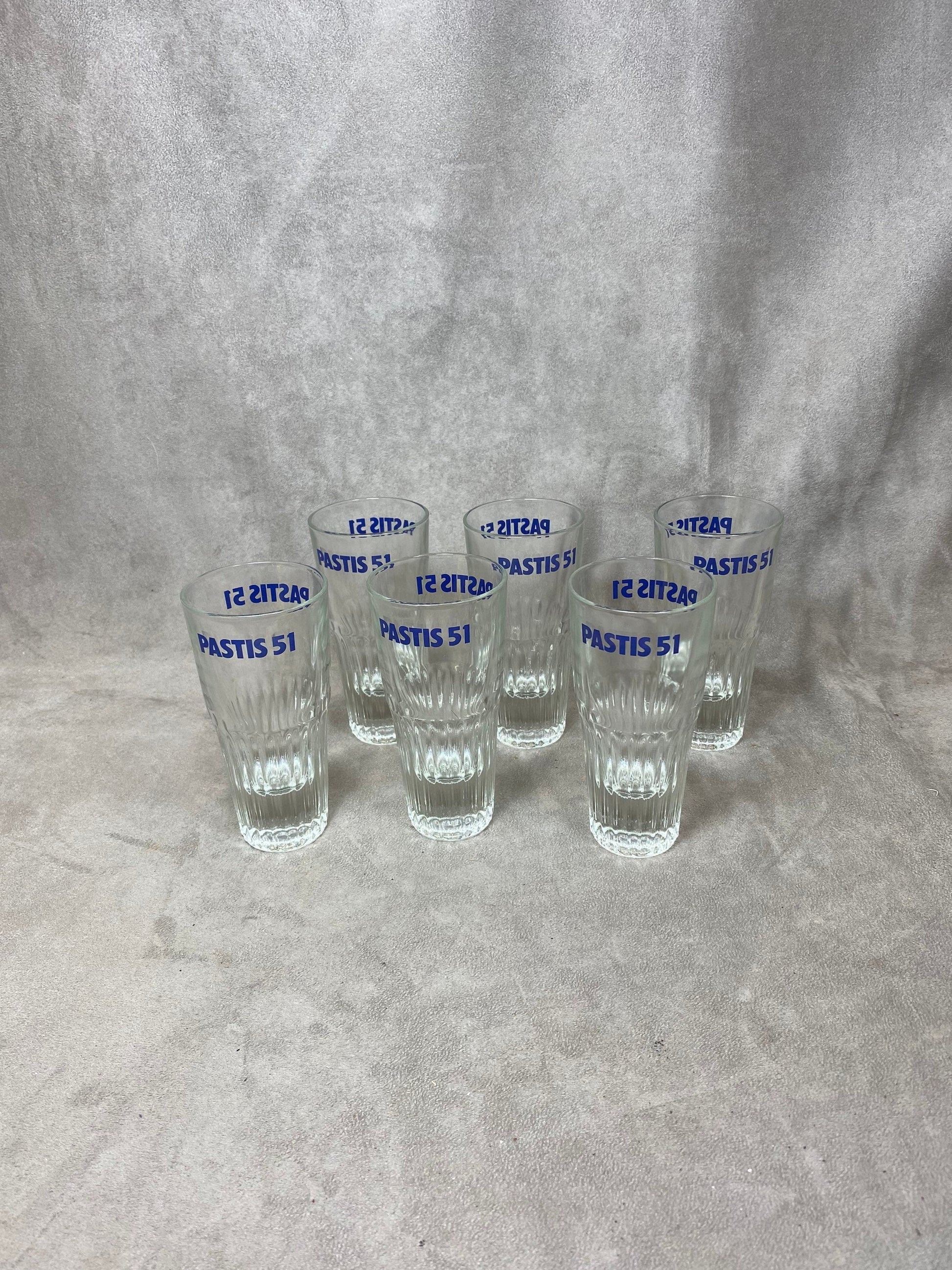Lot de 6 verres à Pastis Pastis 51 en verre vintage retro Made in France Années 1970