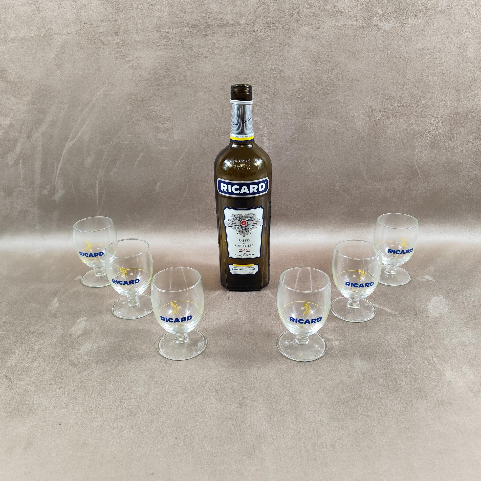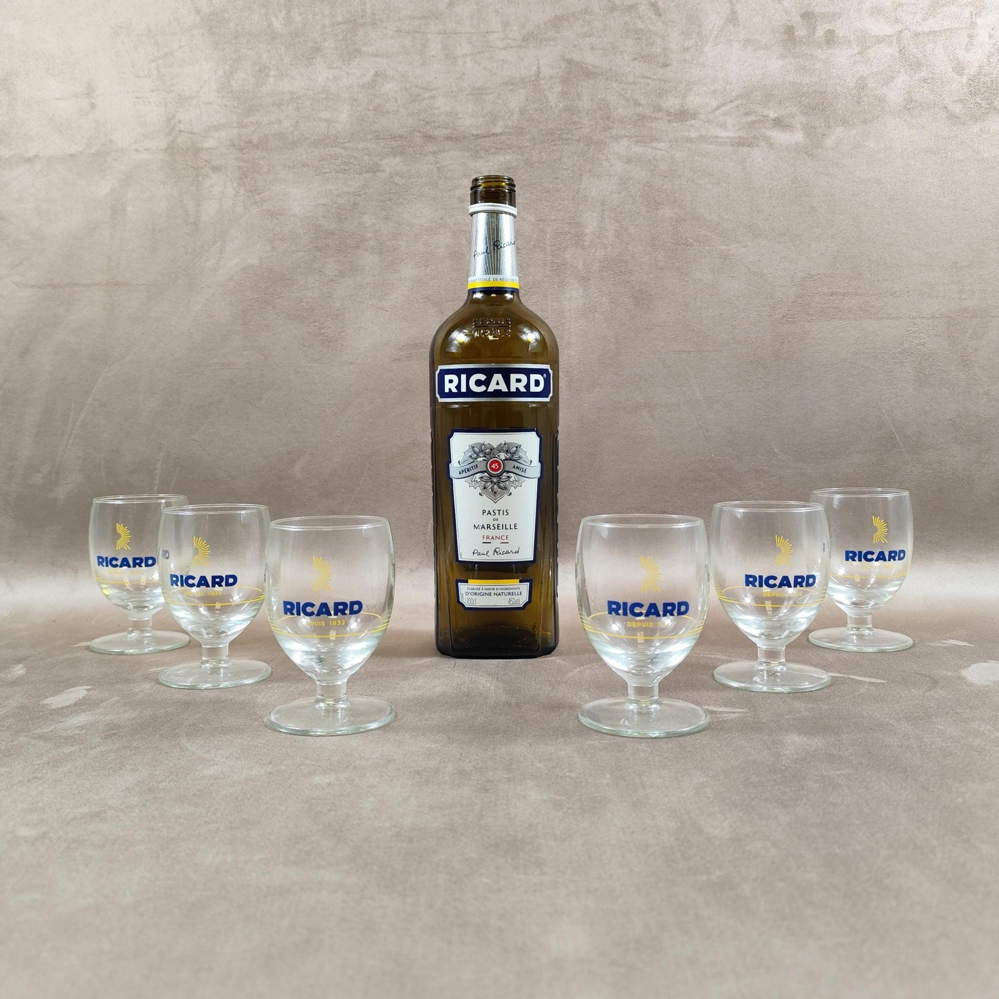 Lot de 6 verres ballon Ricard vintage | Verres à pastis bistrot du Sud | Collection apéritif rétro | Made in France années 90